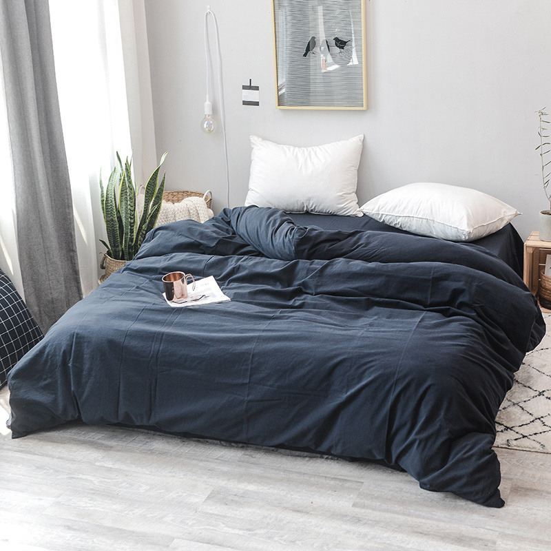 • 91家纺网 家纺一手货源 找家纺 柠萌家居 2025新款全棉色织水洗棉床品单被套 藏青色