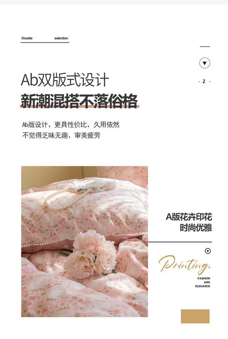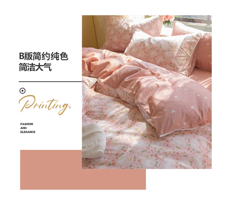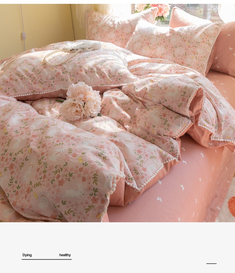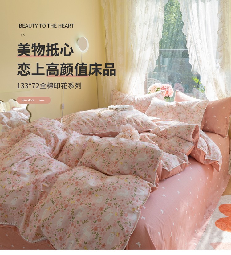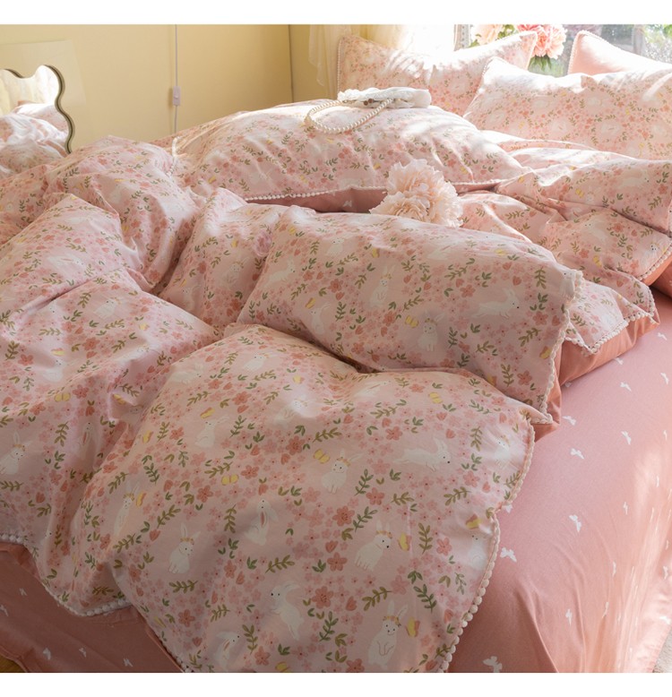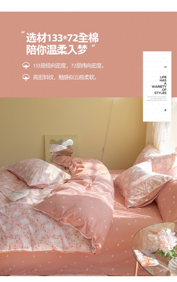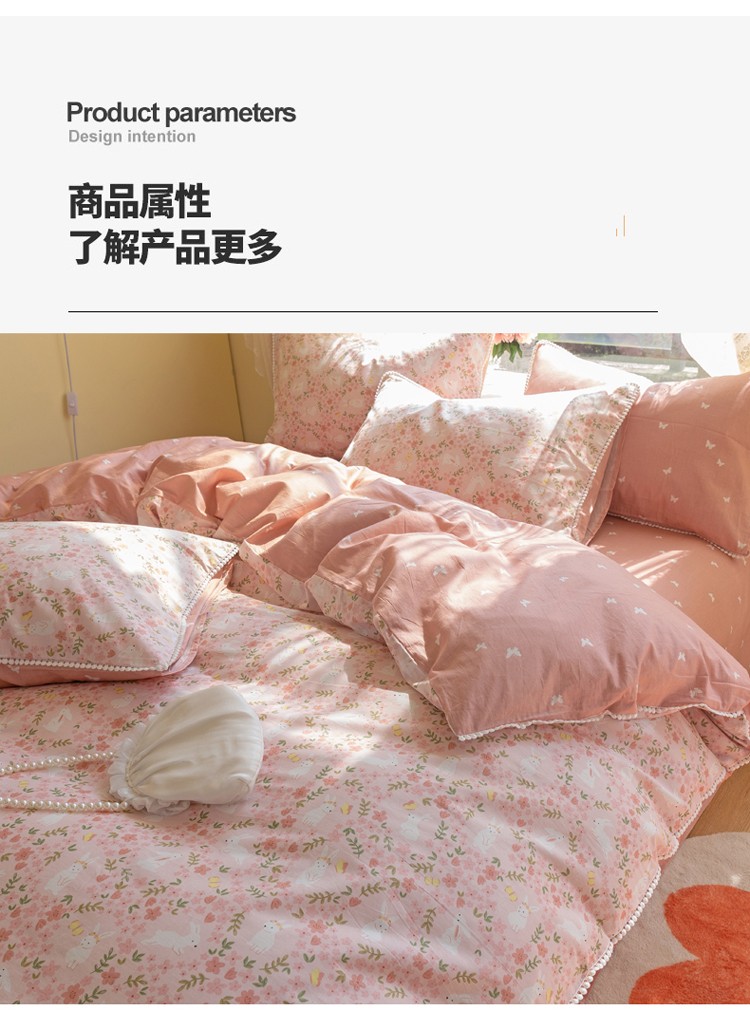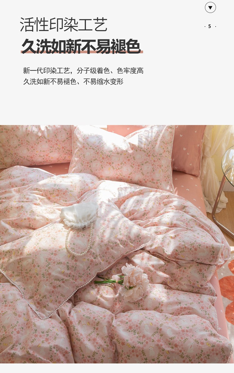 商品名称:千朵 2021新款13372全棉印花四件套 花环兔
