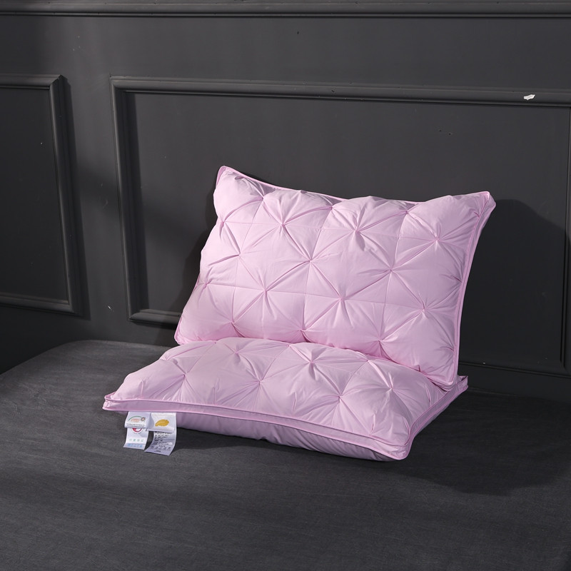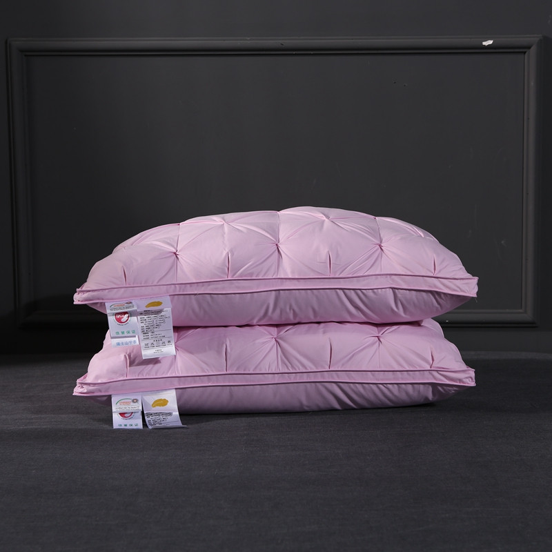 羽仙子爆款全棉纽花羽绒枕 鹅绒枕芯 枕头枕套 粉色