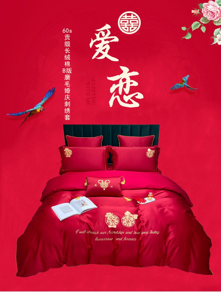 (总)甜咪咪婚庆 2025新款50支长绒棉全棉婚庆床单床盖四件套多件套刺绣工艺,洛可可,爱恋小熊,爱意久久,多子多福,花田喜事,节节高升,克拉恋人,浪漫情怀,怦然心动红,怦然心动玉,甜心玫瑰,温莎公主,伊甸园,醉红妆