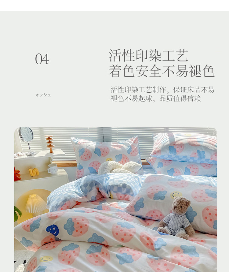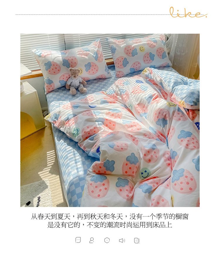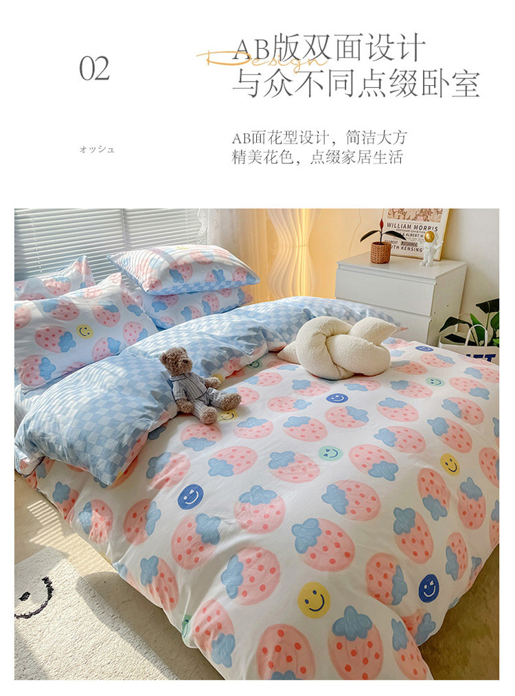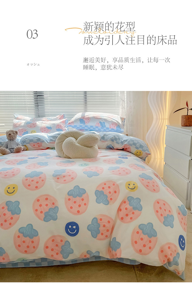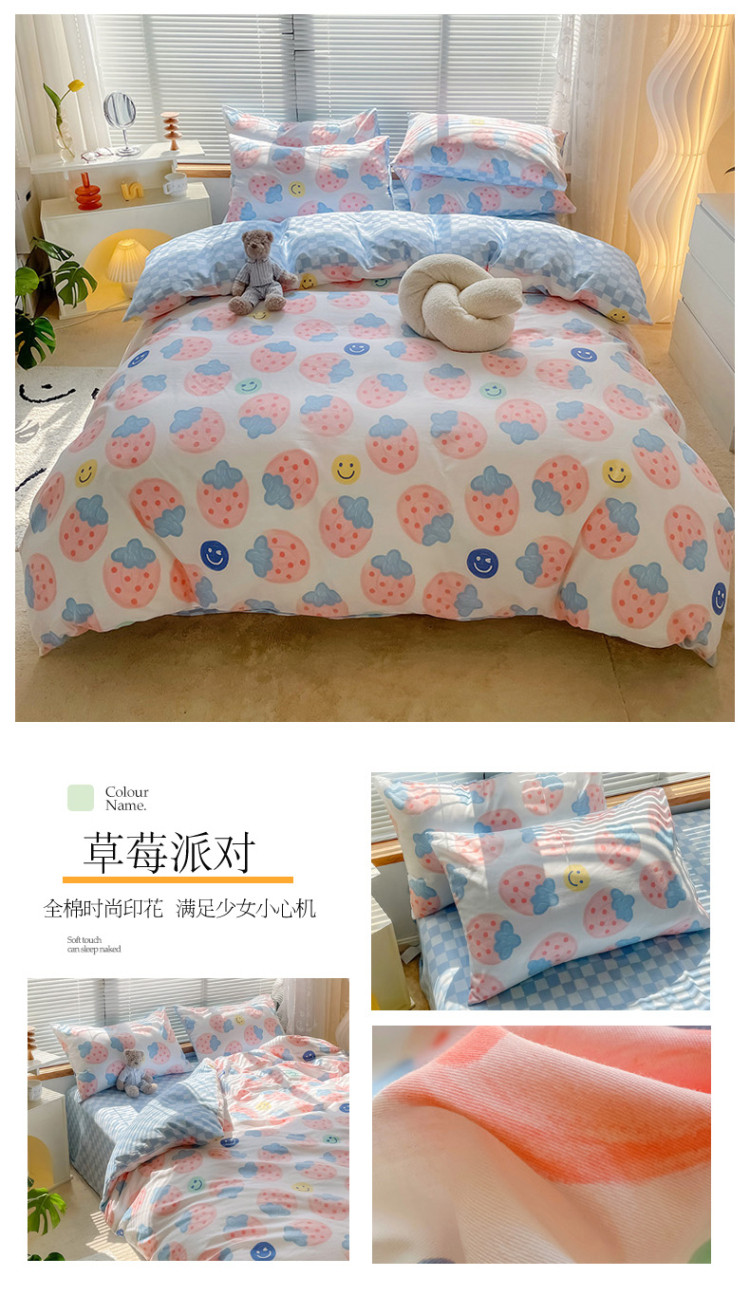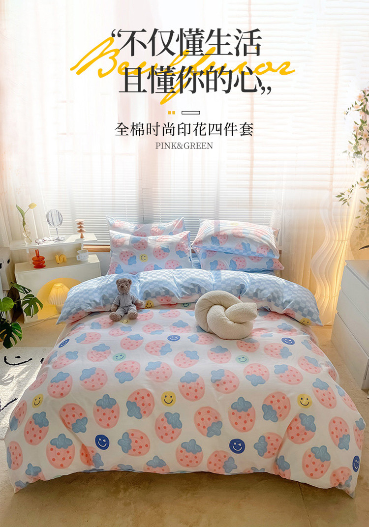 当前位置: 91家纺网 > 商品网购 > 床品套件 > 四件套 > 全棉普通四件套 > 寐居2022春季新款全棉四件套 草莓派对