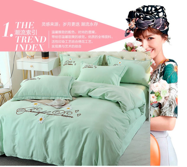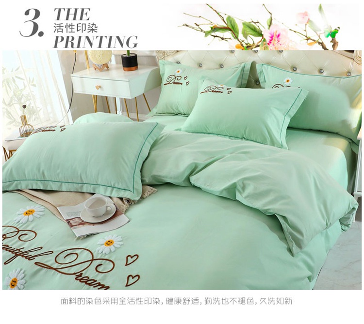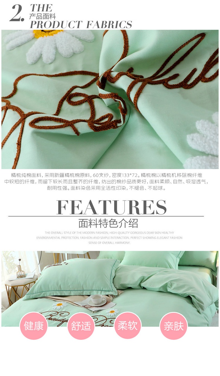 商品名称:2022晶缦雏菊全棉13372毛巾绣四件套 美梦雏菊-浅绿