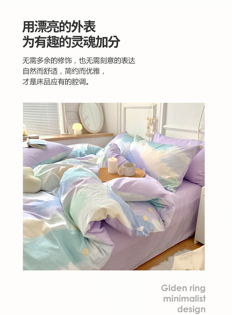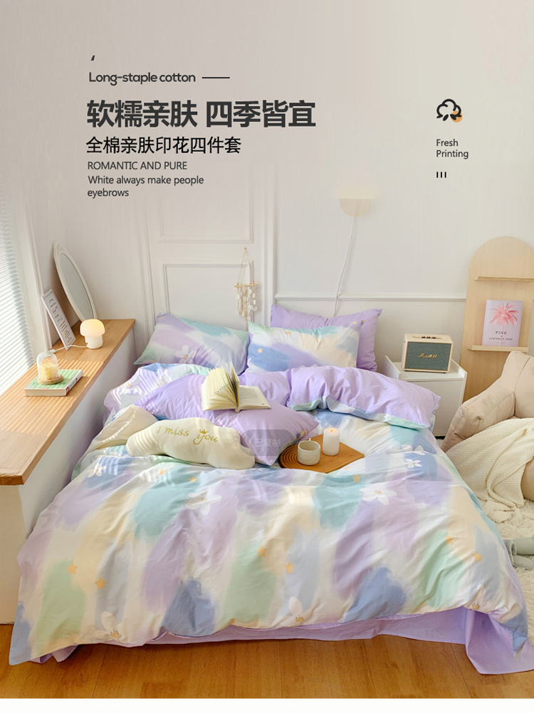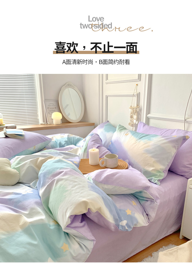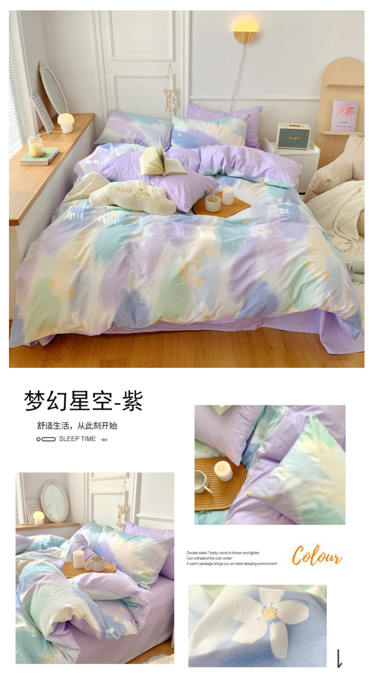 麦朵全棉13372四件套长绒棉四件套小清新四件套梦幻星空-紫