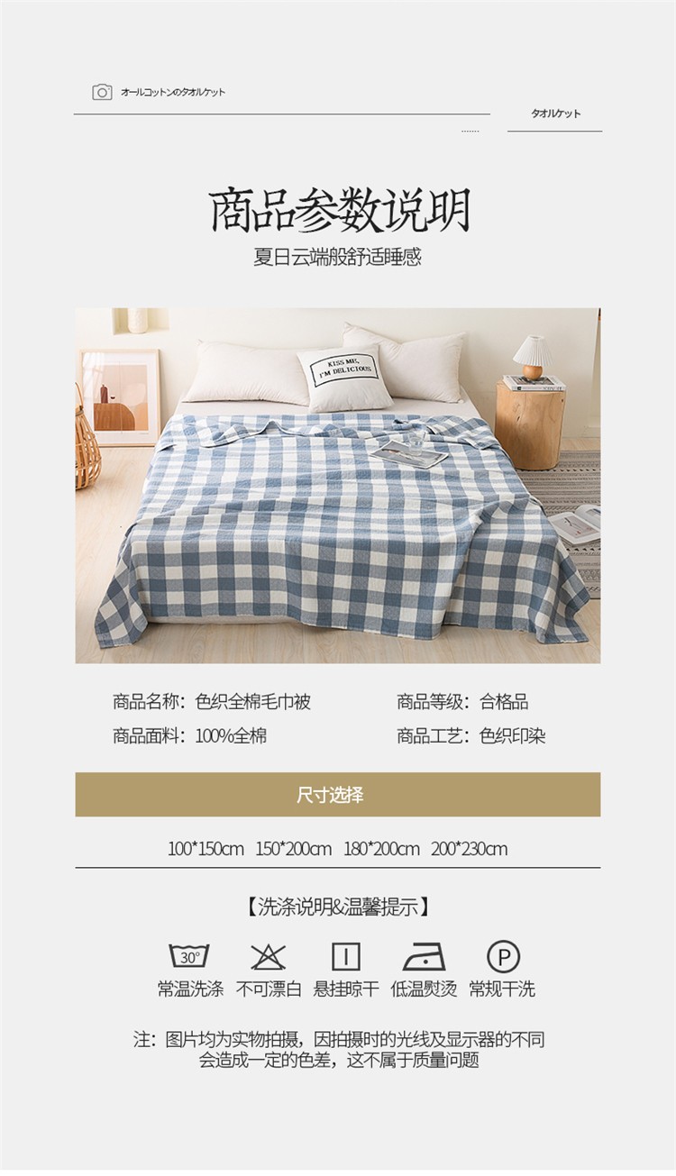 商品名称:雯雨 2022新款无印风纱布毛巾被夏被直播 素雅兰