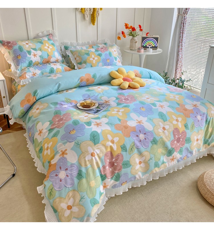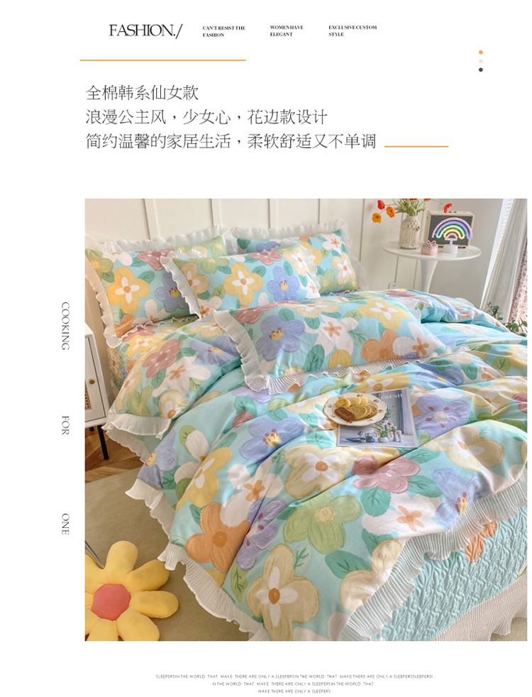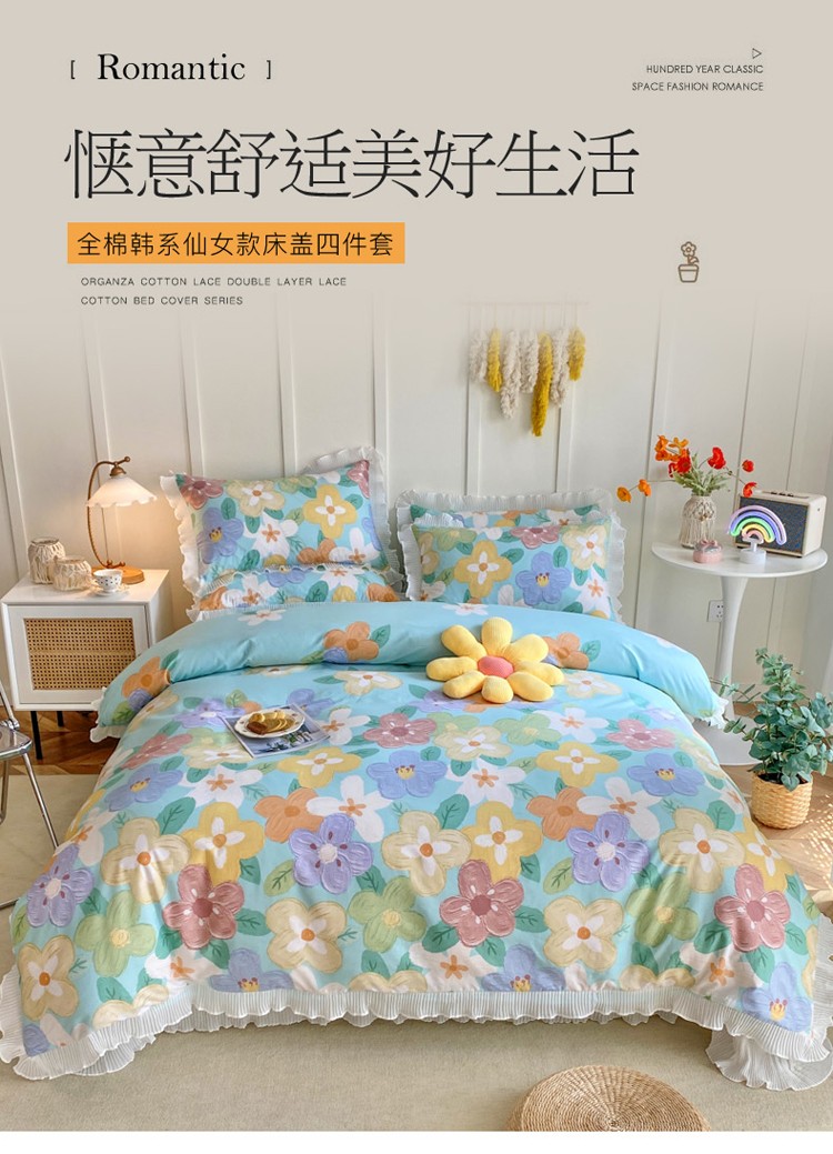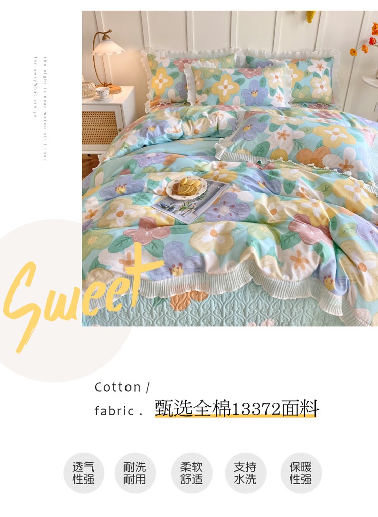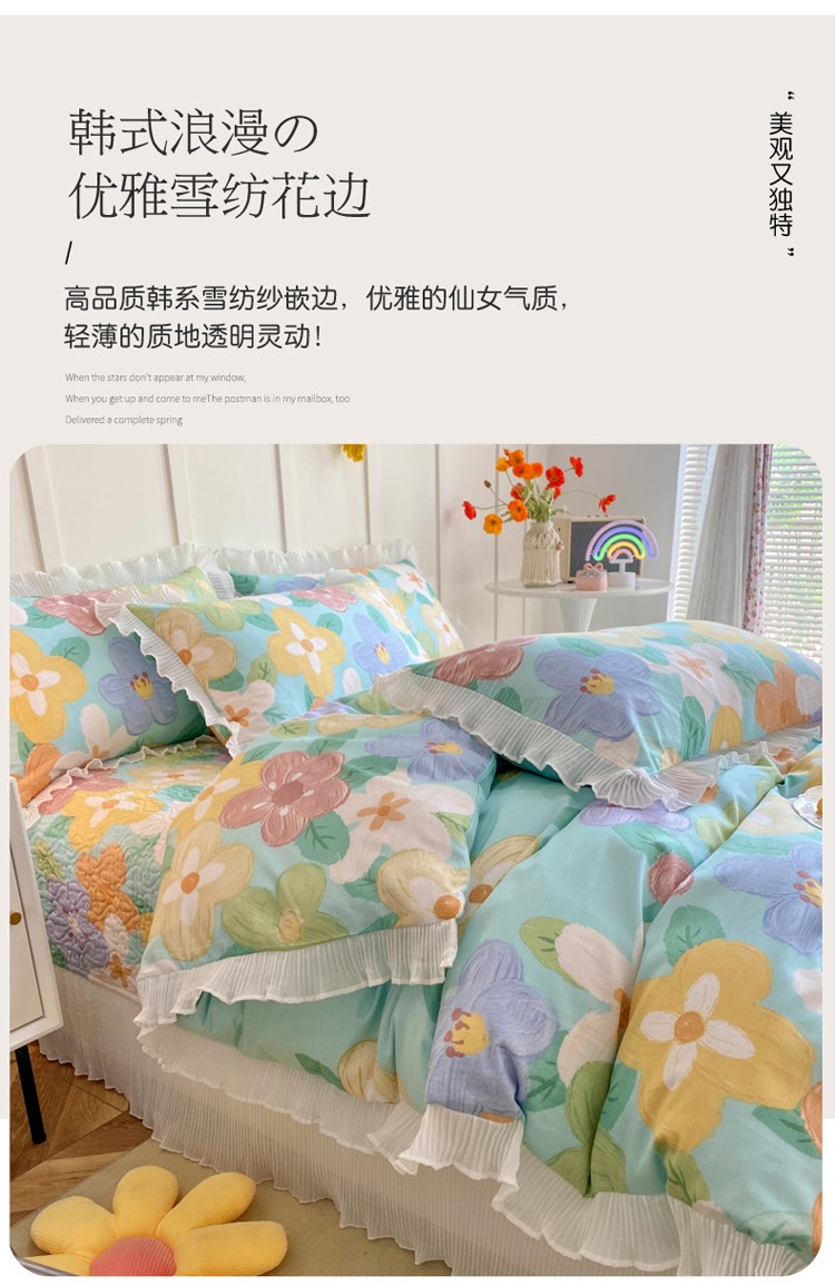 商品名称:星尚 2022新款全棉夹棉床盖仙女系四件套 莫奈花园
