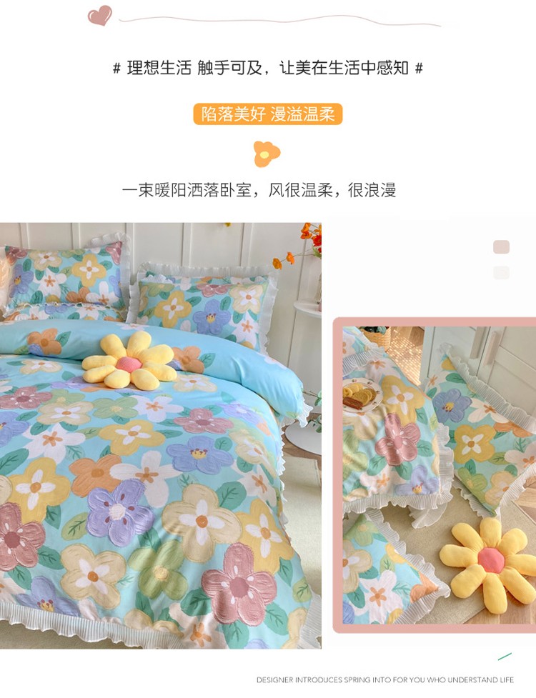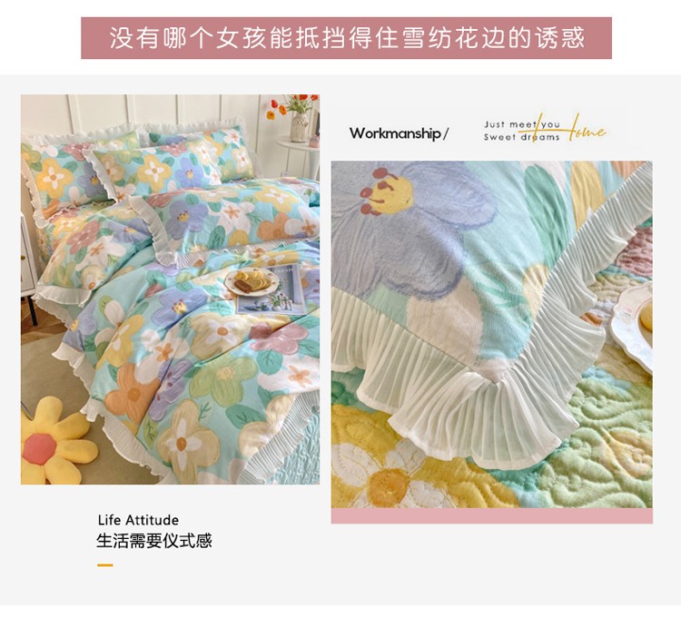 (总)星尚家纺 2024新款加厚保暖全消光牛奶绒夹棉床裙四件套-玫瑰之恋,粉玉,寐紫,浅蓝,水绿