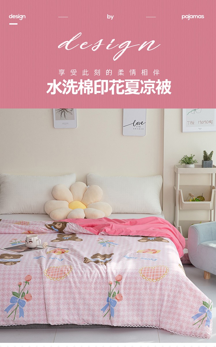 畅销被业 2022水洗棉印花被夏被 抱抱熊