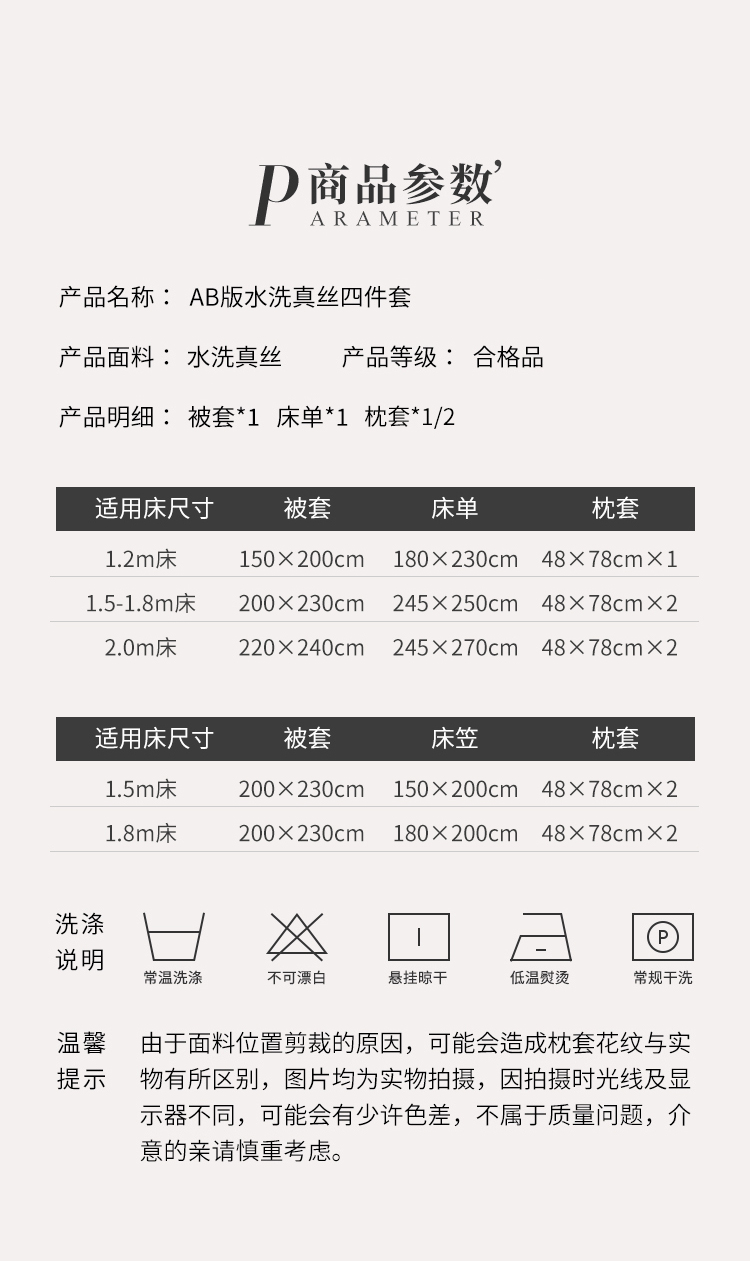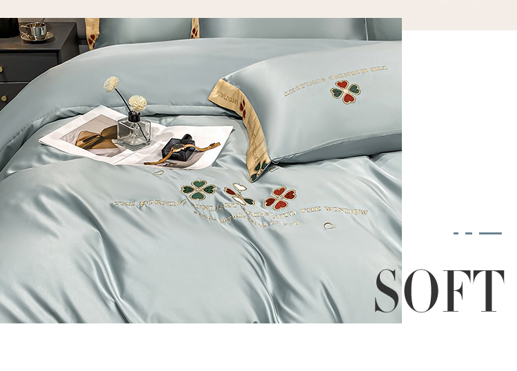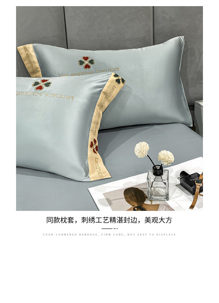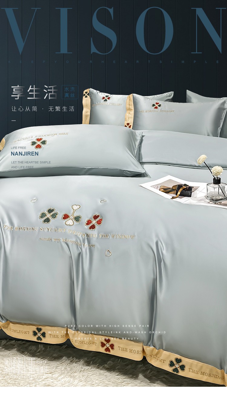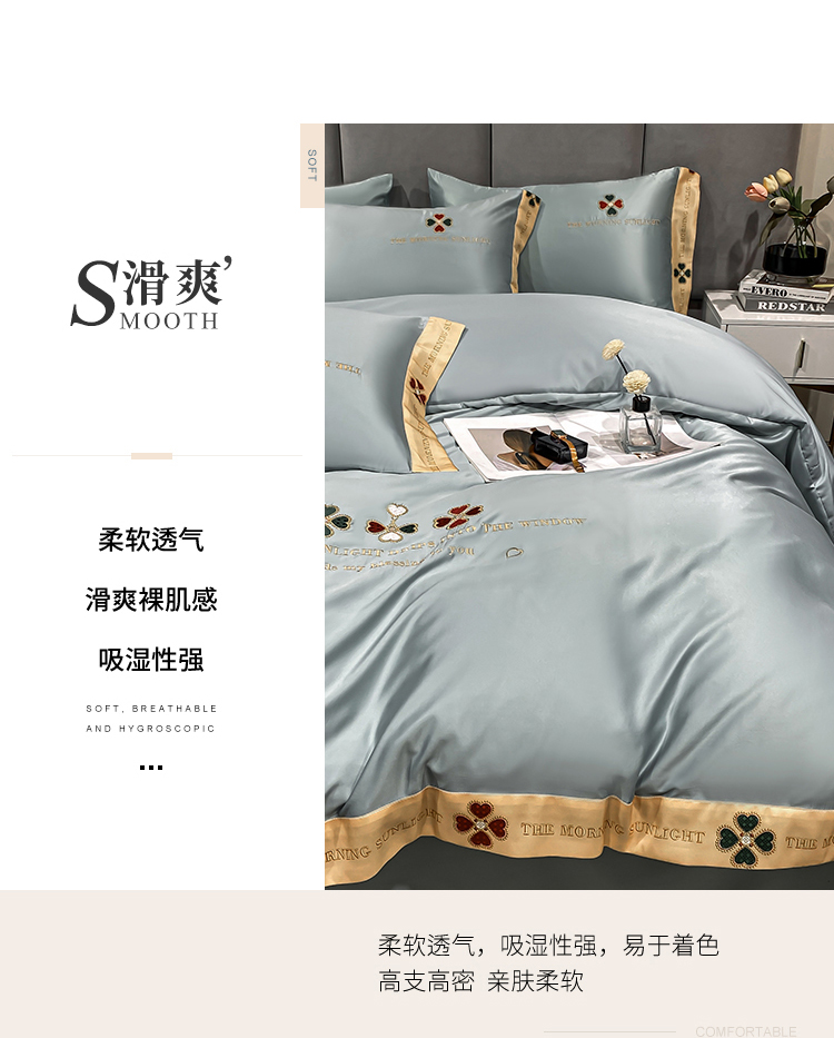 商品名称:2023爆款春夏新款水洗真丝四叶草系列四件套 雾灰峰