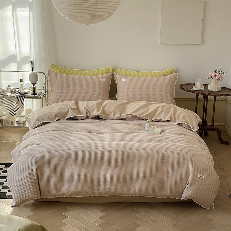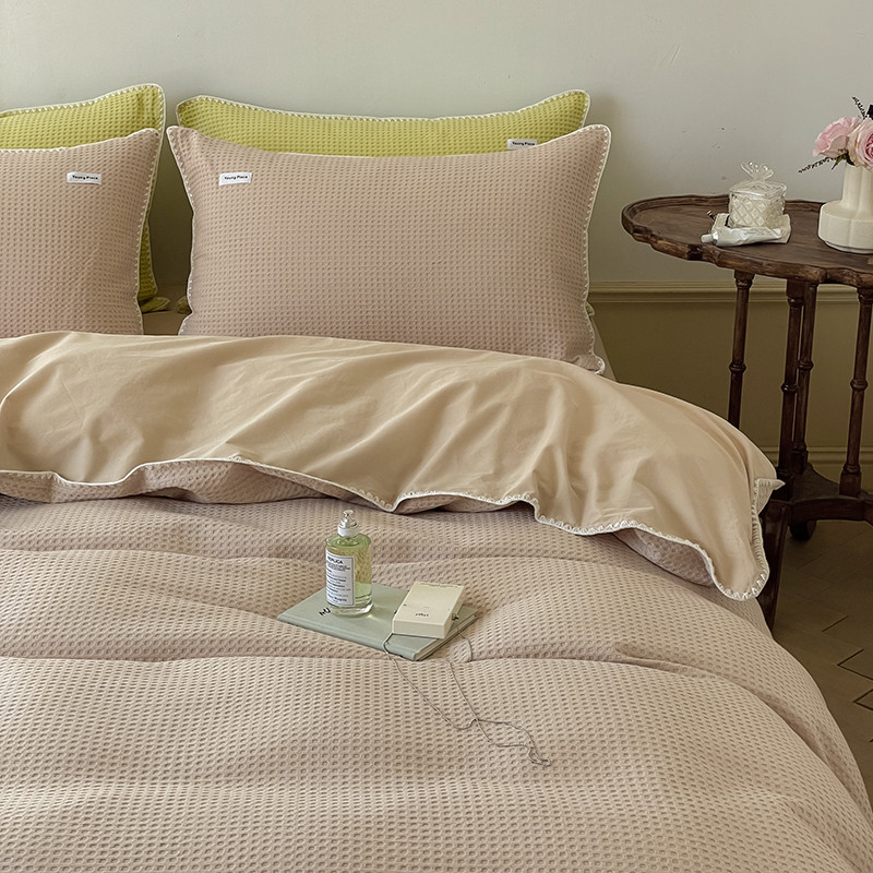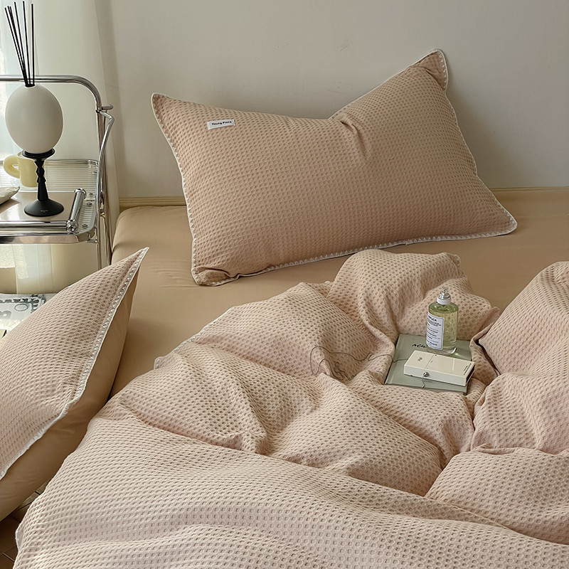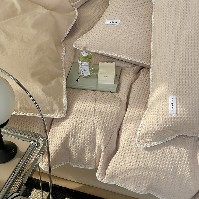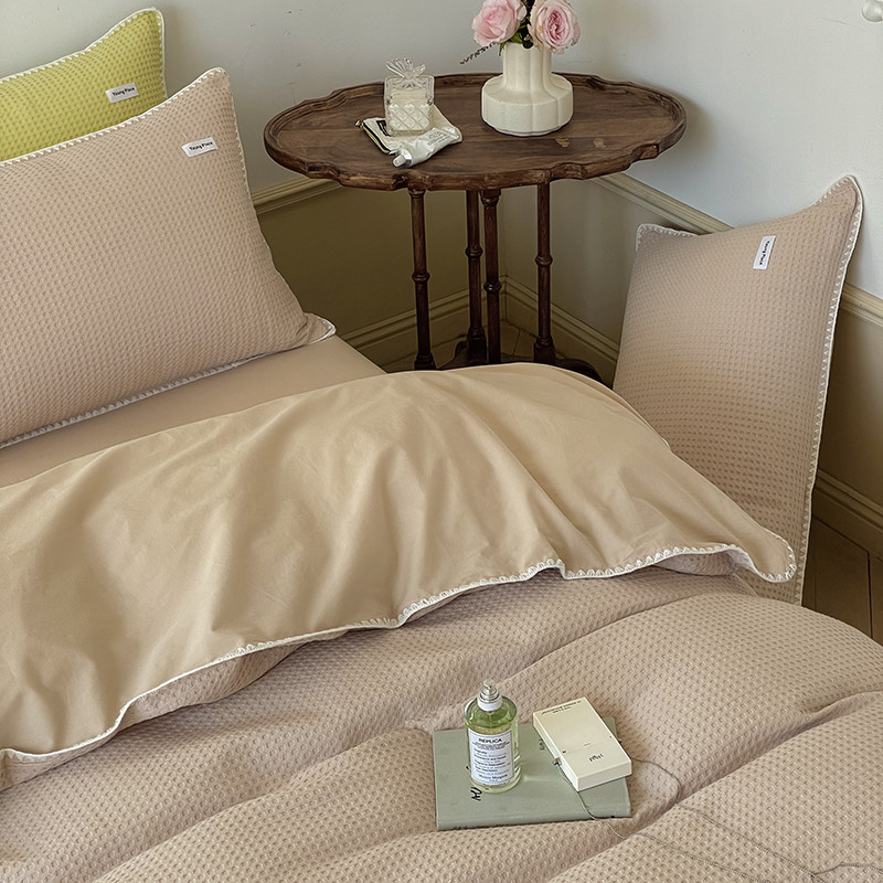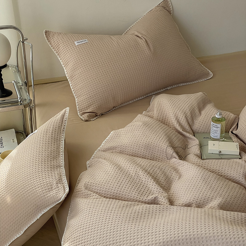 洋铭区 2022新款全棉华夫格四件套 米杏色