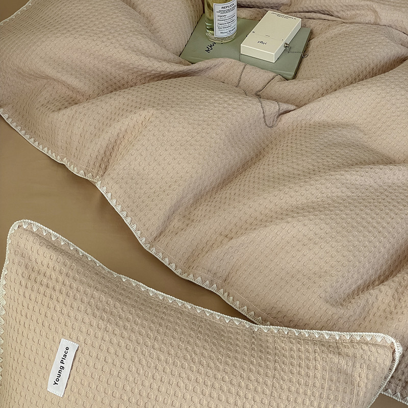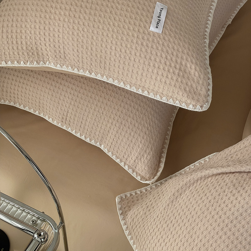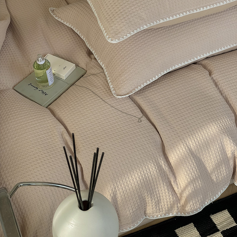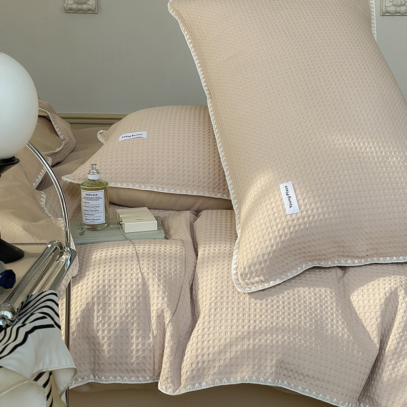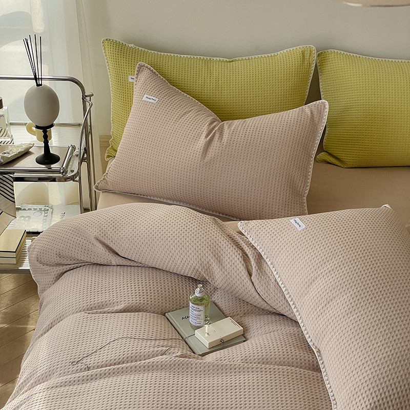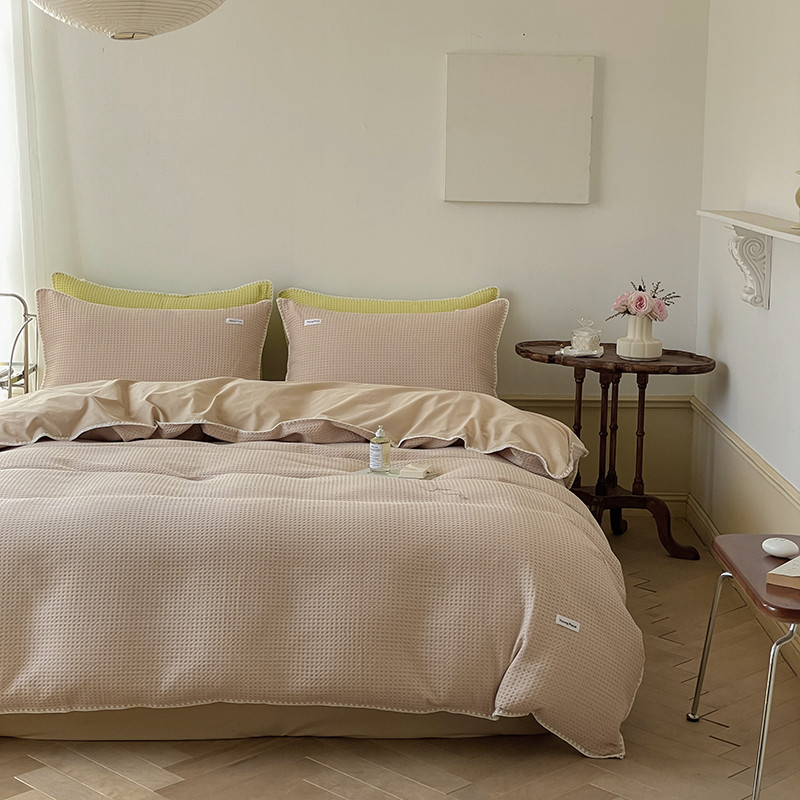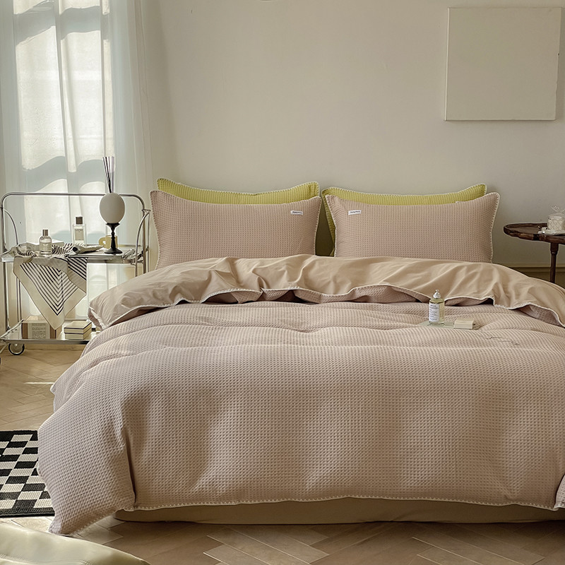 洋铭区 2022新款全棉华夫格四件套 米杏色