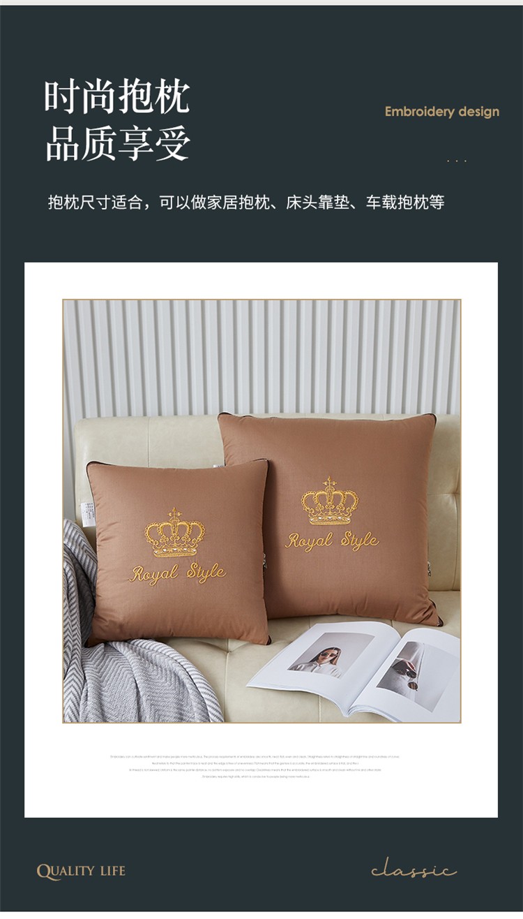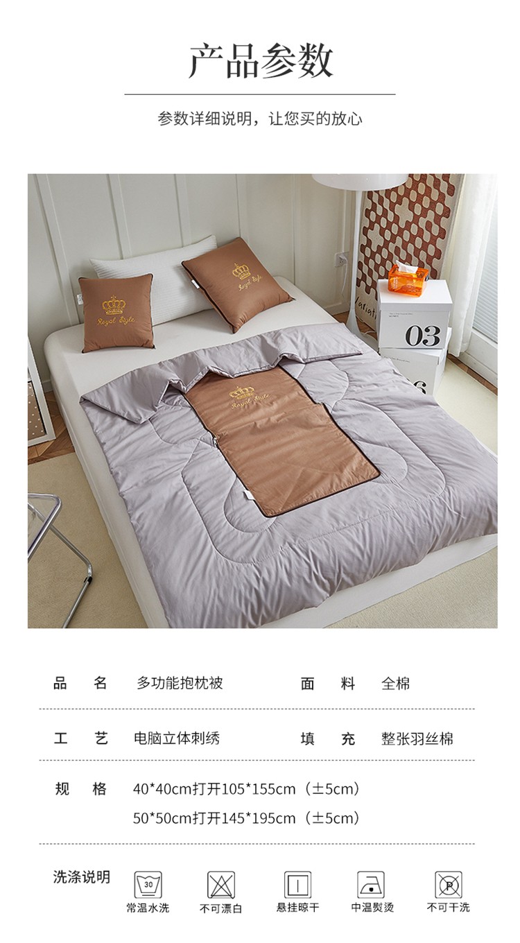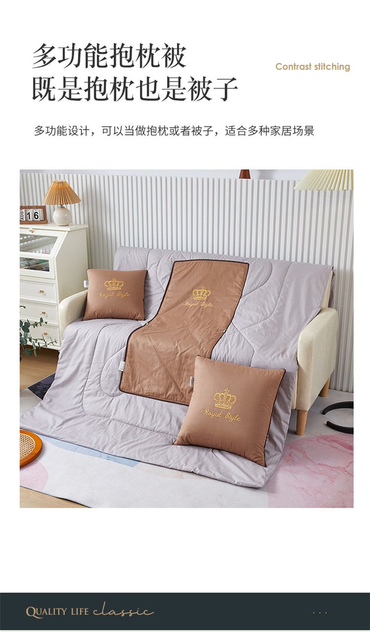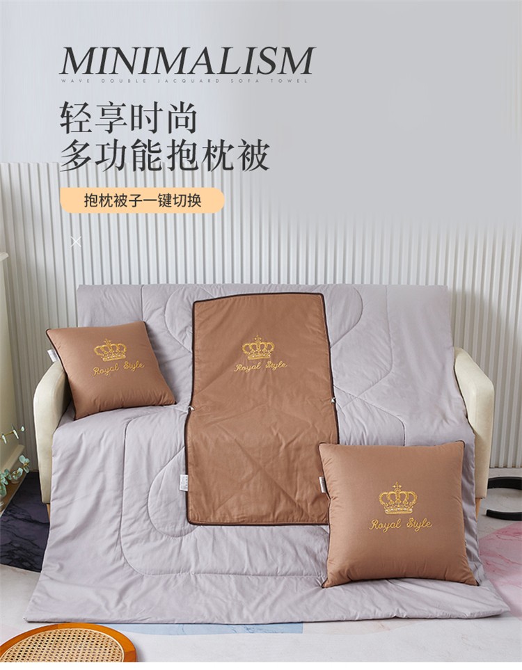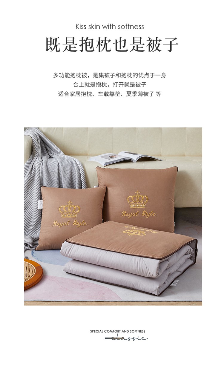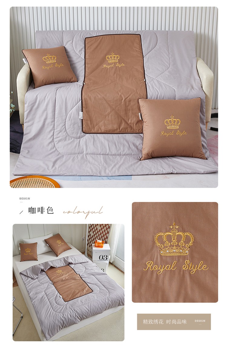 商品名称:翰轩 2022新款全棉绣花抱枕被-皇冠 咖啡色