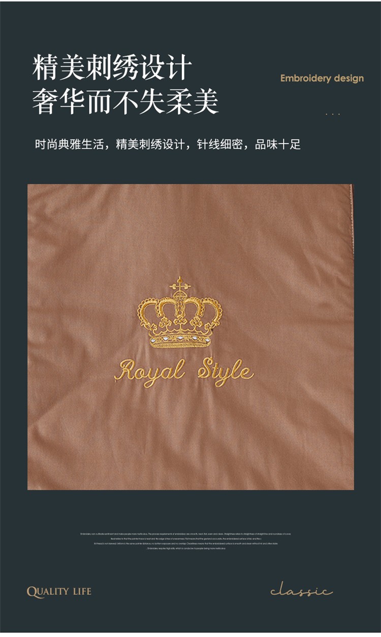 翰轩 2022新款全棉绣花抱枕被-皇冠 咖啡色