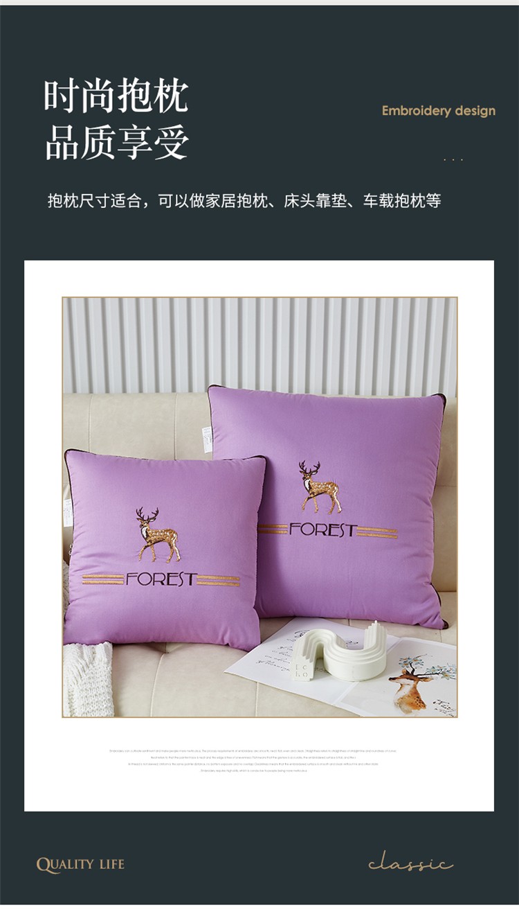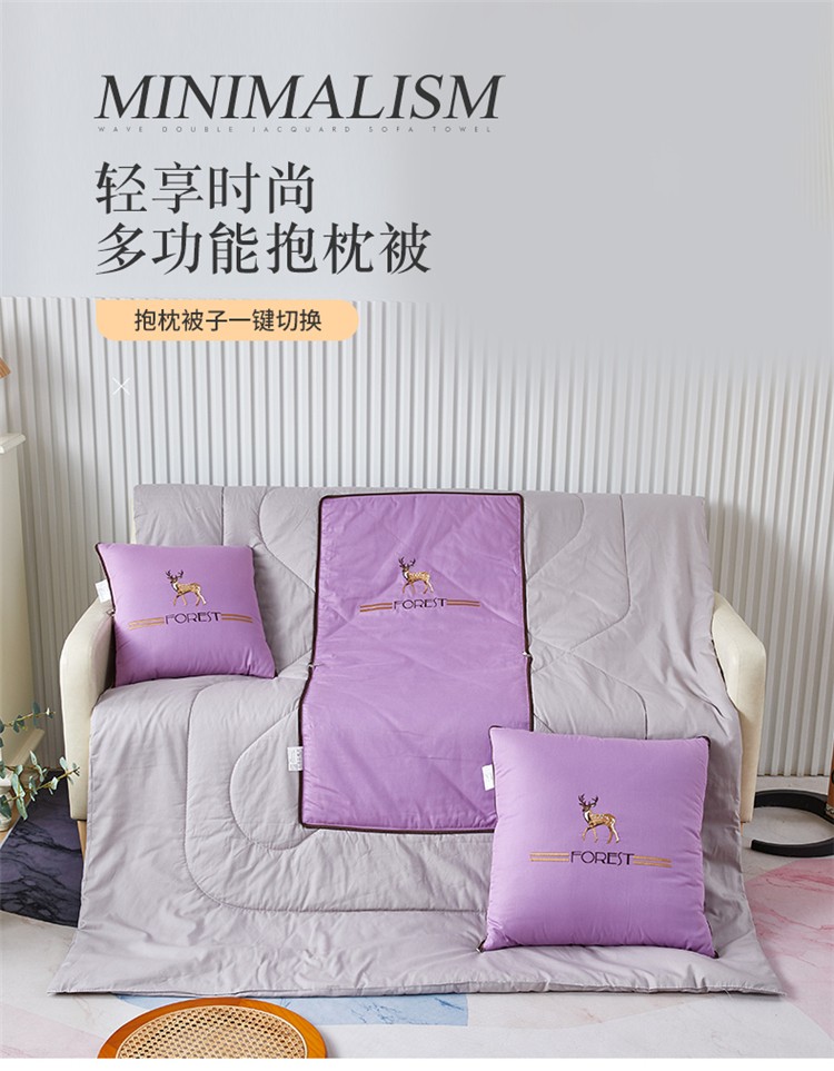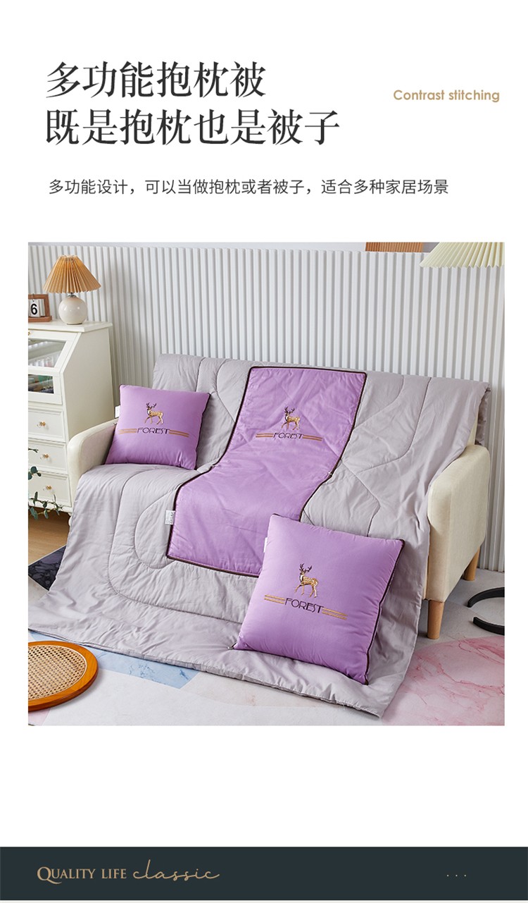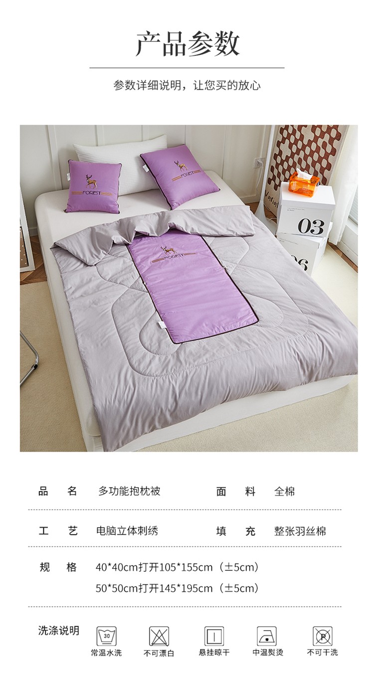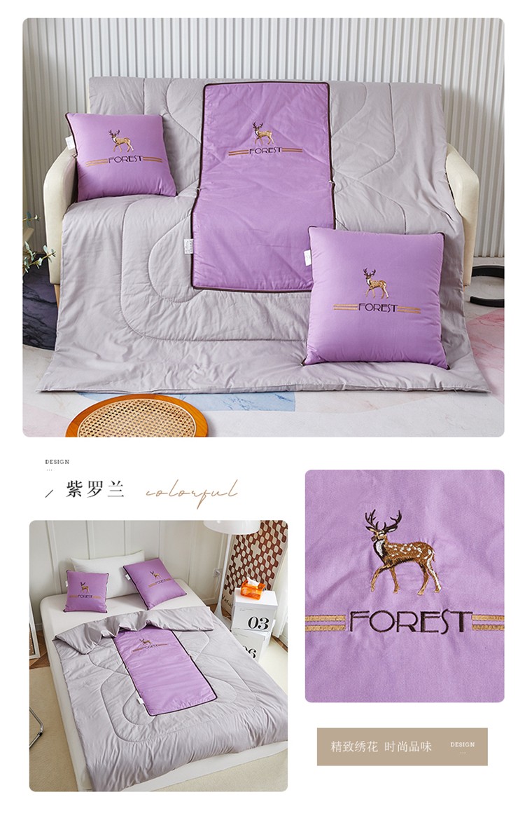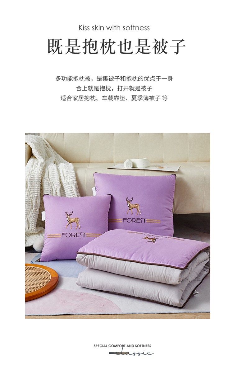 商品名称:翰轩 2022新款全棉绣花抱枕被-一鹿有你 紫罗兰