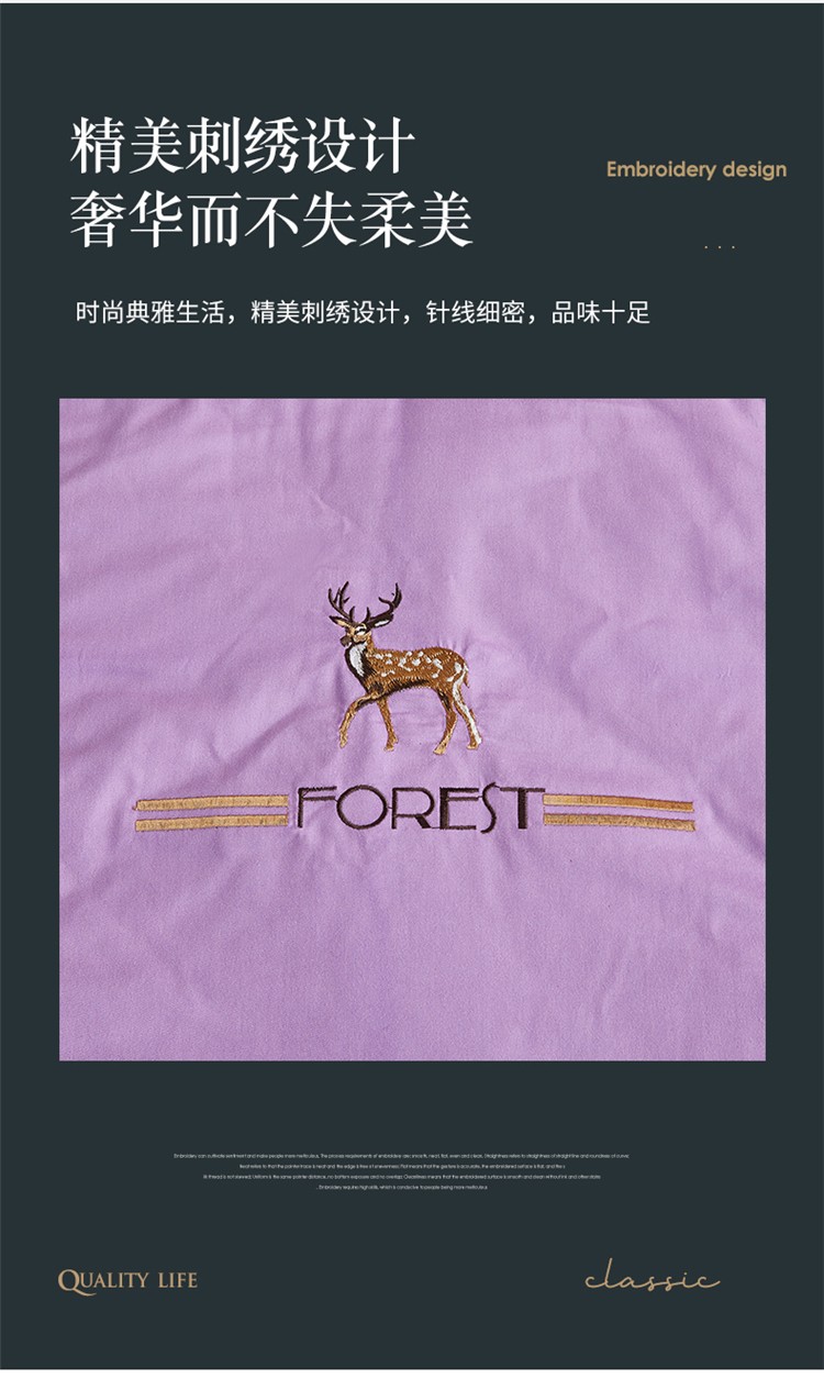 翰轩 2022新款全棉绣花抱枕被-一鹿有你 紫罗兰