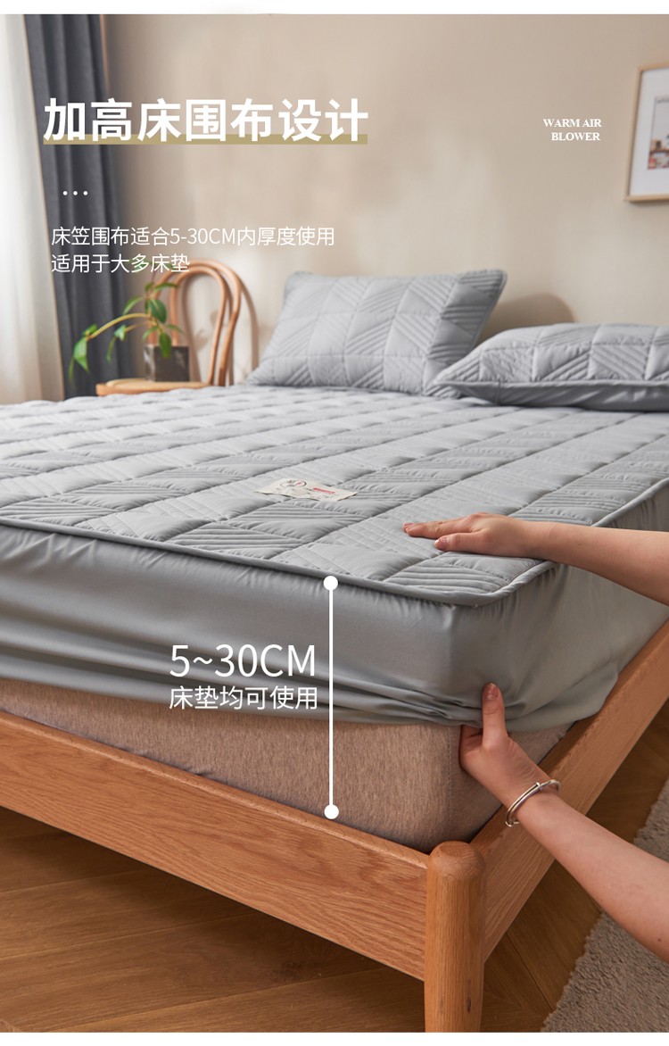 (总)卡伦 2025新款原棉抗菌大豆纤维防水夹棉床笠,白色,淡粉,果绿,卡其,水蓝,星灰