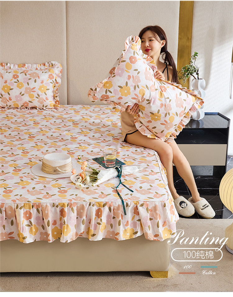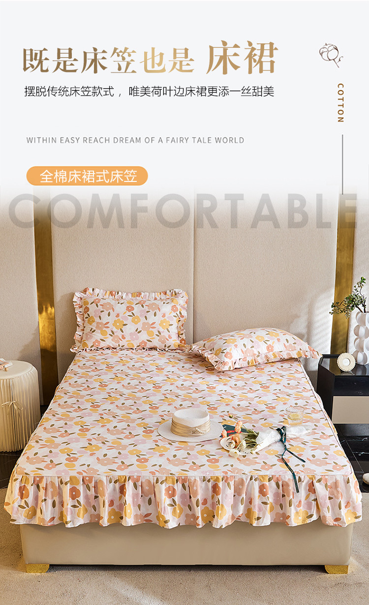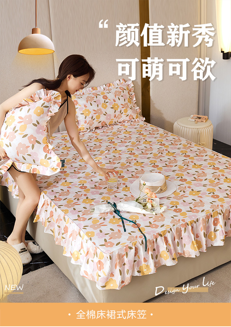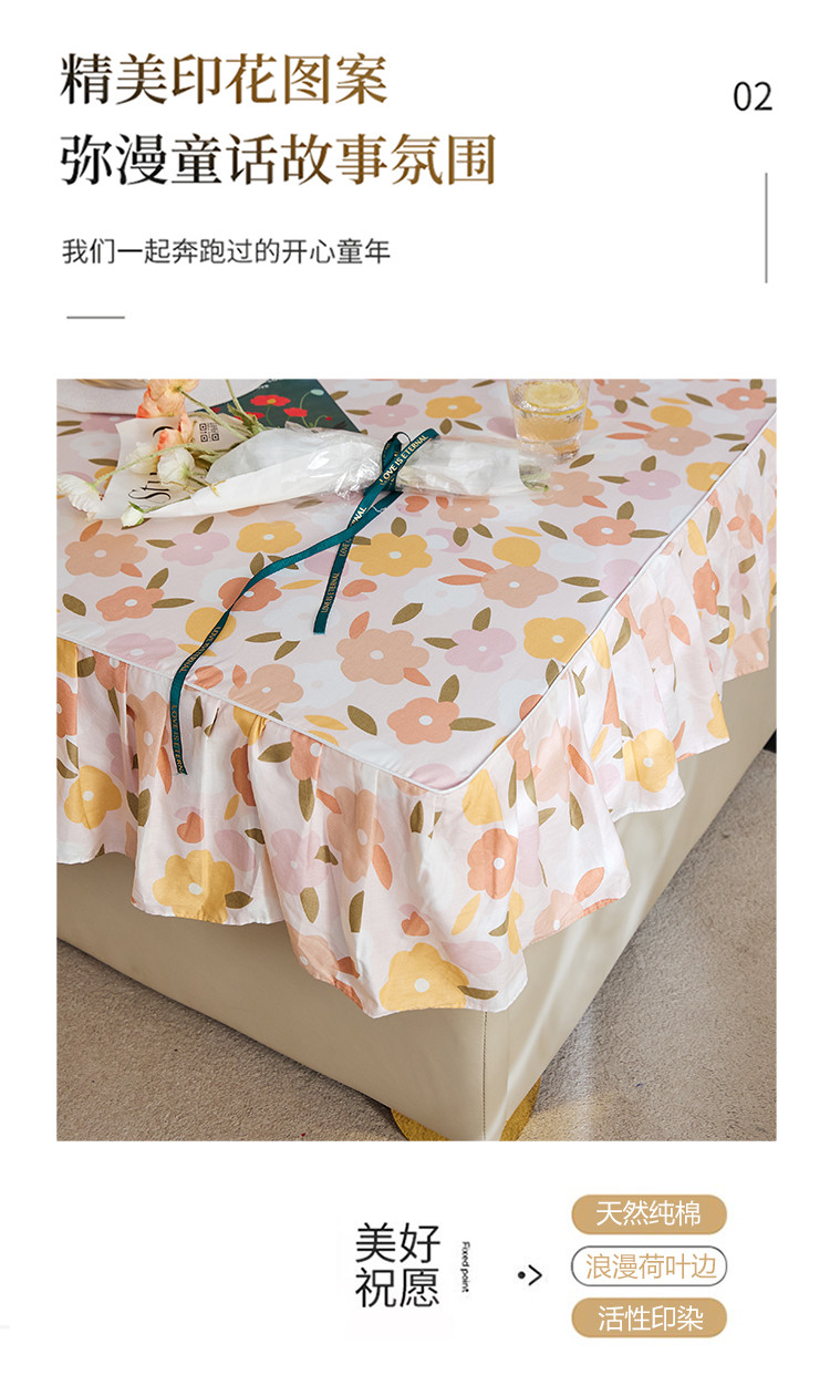 M2024新款花边印花全棉单床笠纯棉床裙田园公主风床垫保护套,初恋,花乐礼B,蕾娅,恋语,童心,小清新,心愿,星星点点