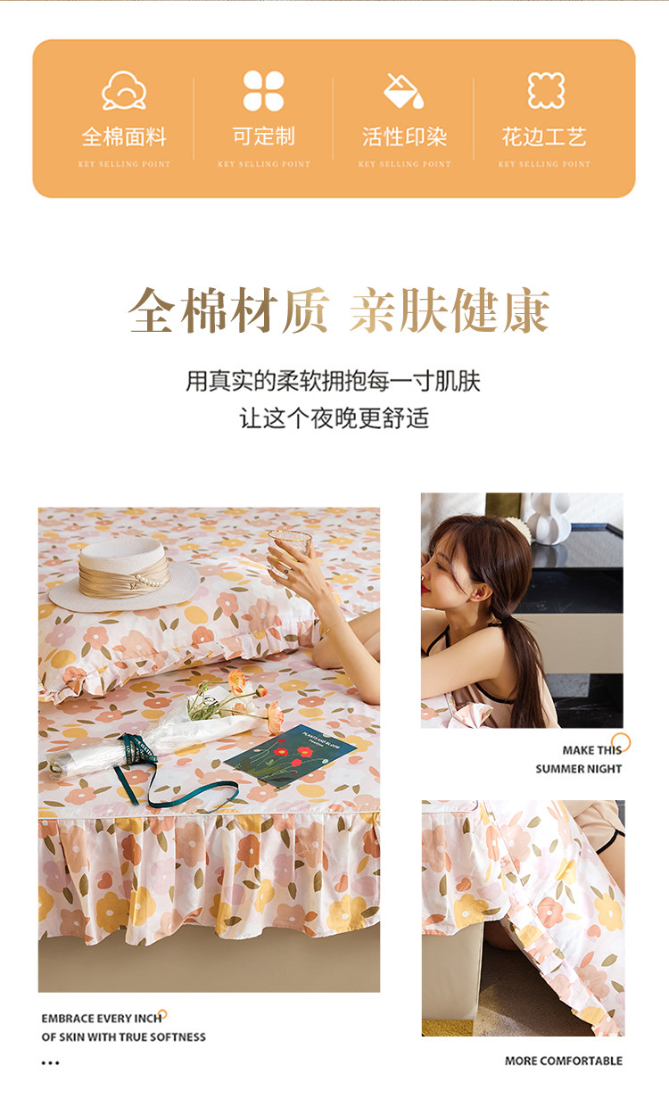 铭动家纺 2023新款纯棉单层花边床笠 蕾娅