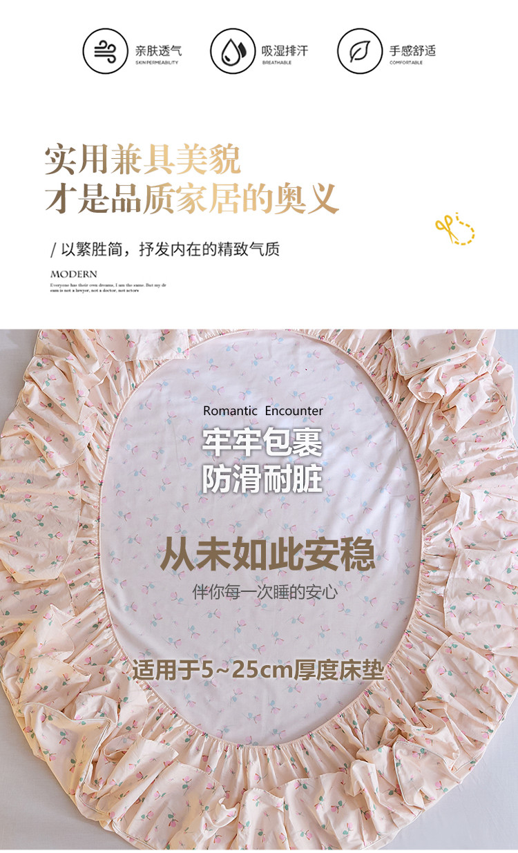 商品名称:铭动家纺 2023新款纯棉单层花边床笠 蕾娅