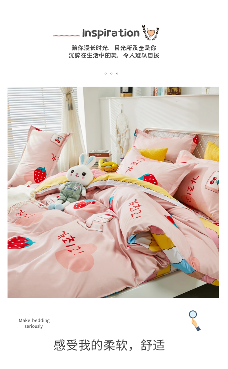 曼璐家纺 2025新款芦荟棉床单款四件套 草莓心