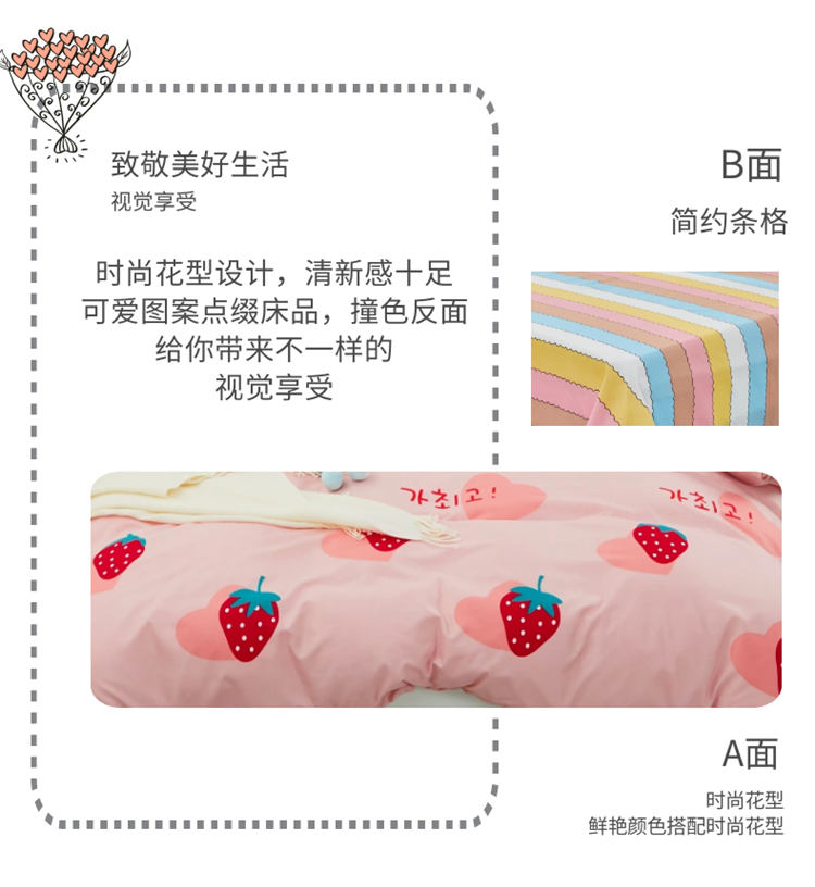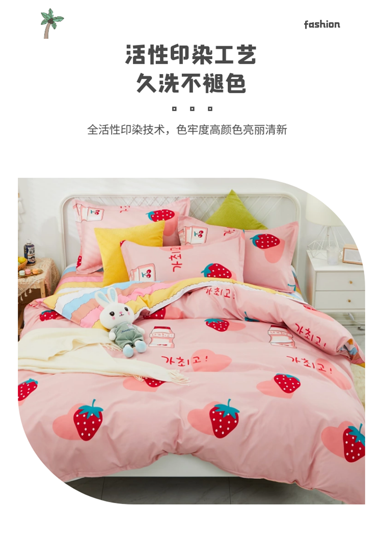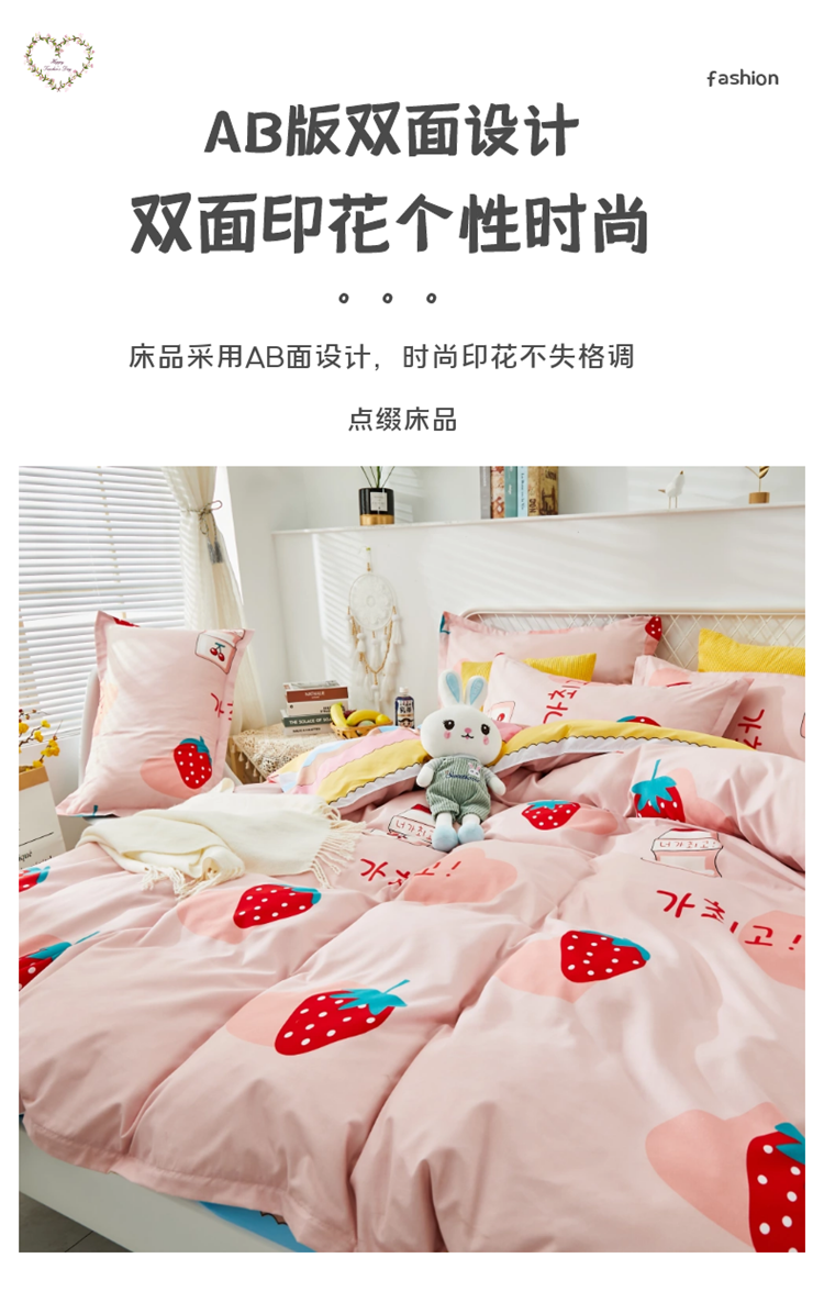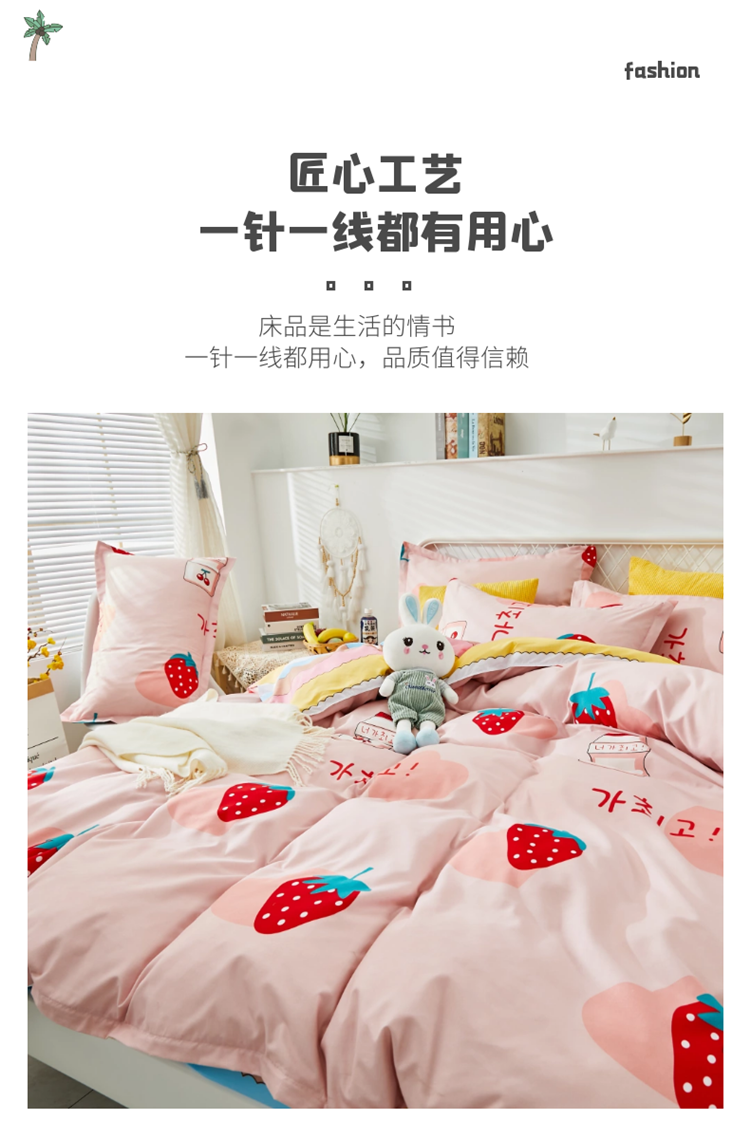 商品名称:曼璐家纺 2025新款芦荟棉床单款四件套 草莓心