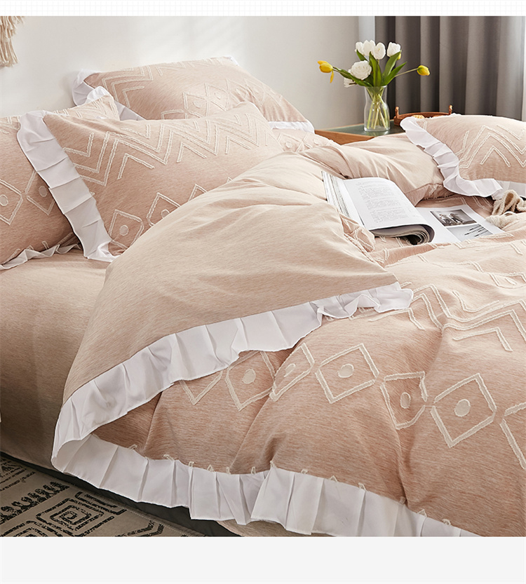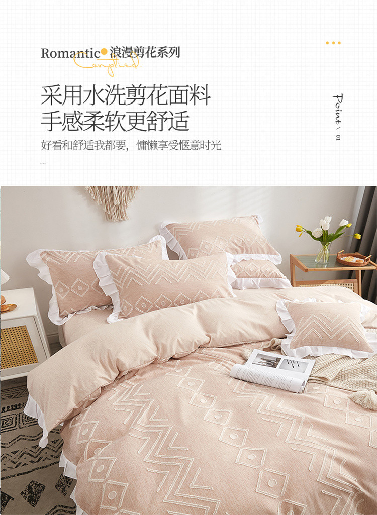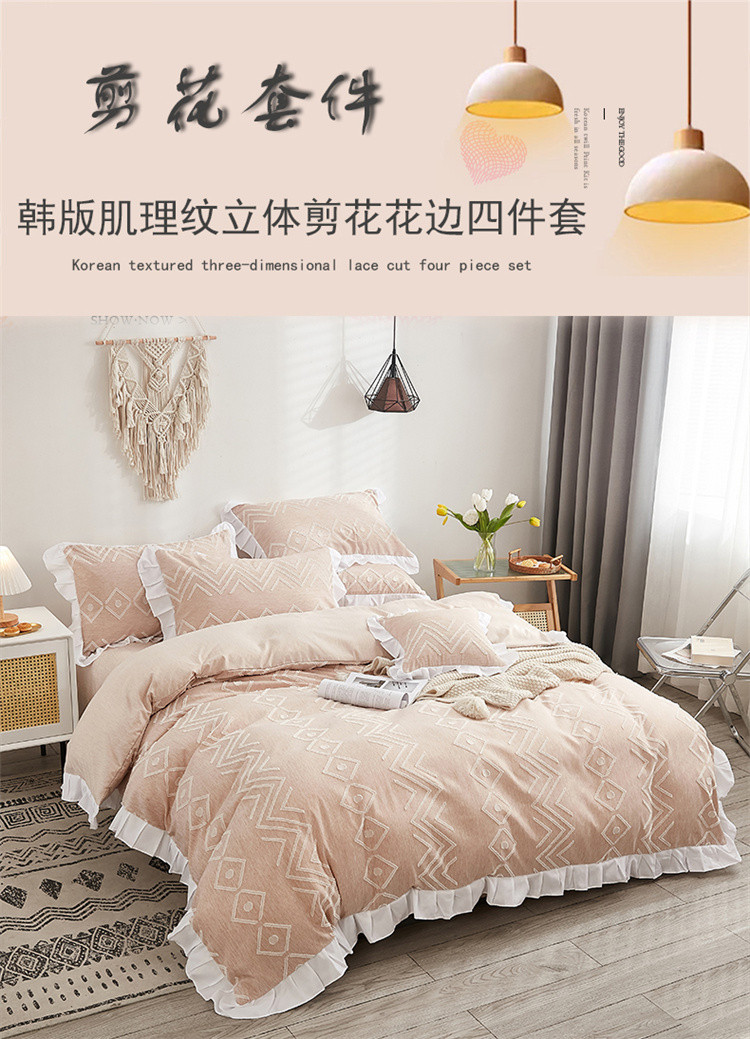 商品名称:啊雅家居2025新款韩版肌理纹立体剪花花边四件套 肌理玉