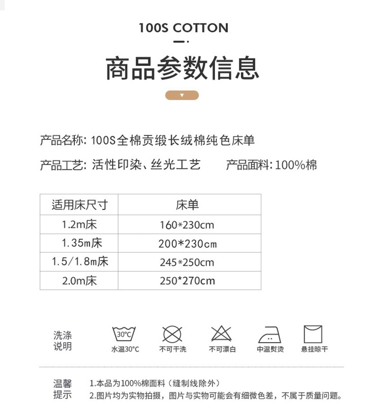 【品 名】纯棉100支贡缎长绒棉纯色多规格四件套和单品被套、床单、床笠、枕套
