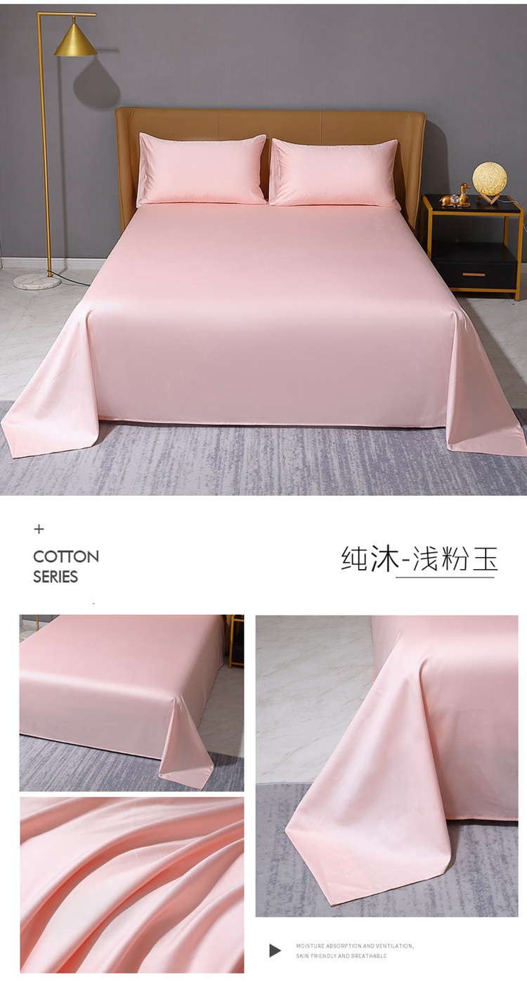 商品名称:2022全棉纯棉50支双股S贡缎长绒棉纯色单品床单纯沐-浅粉玉