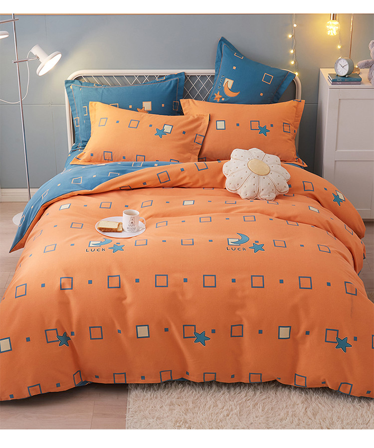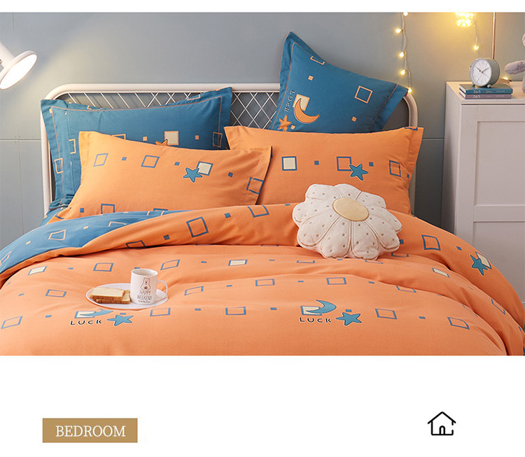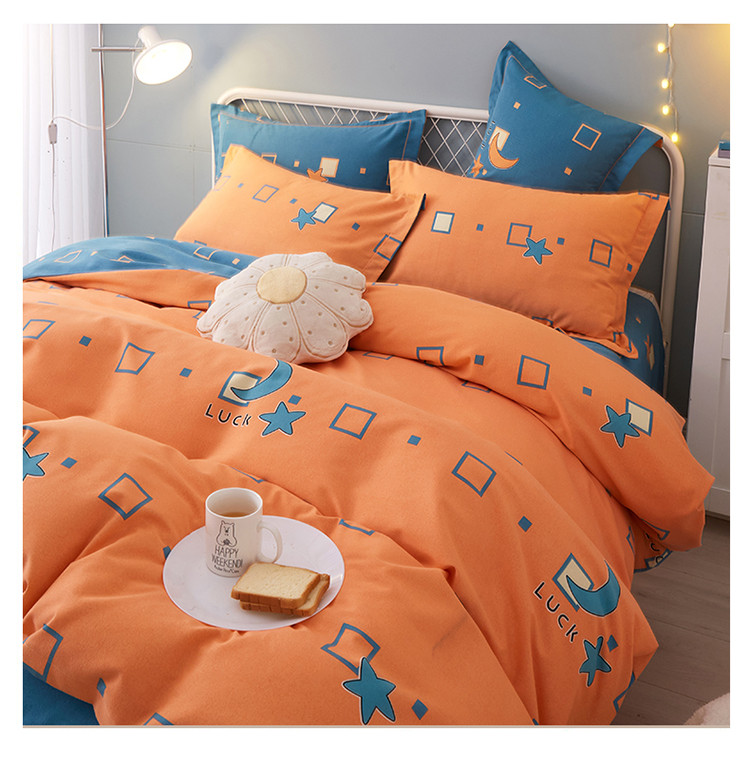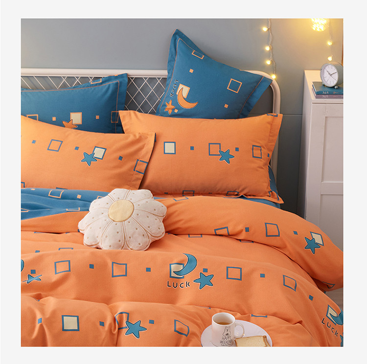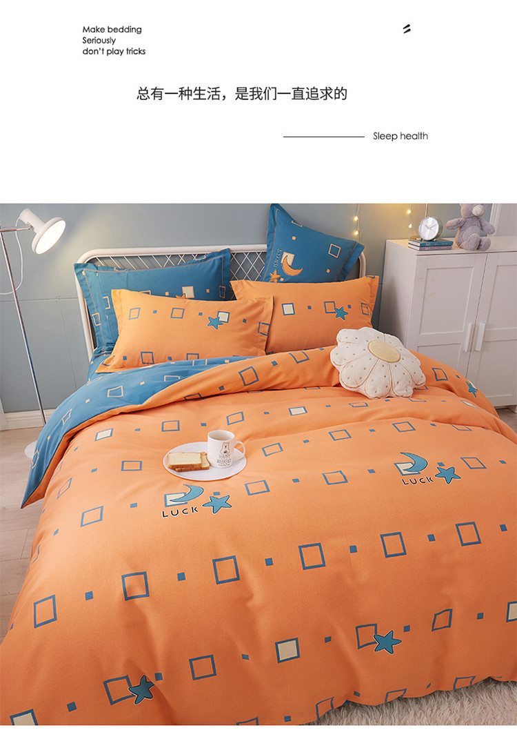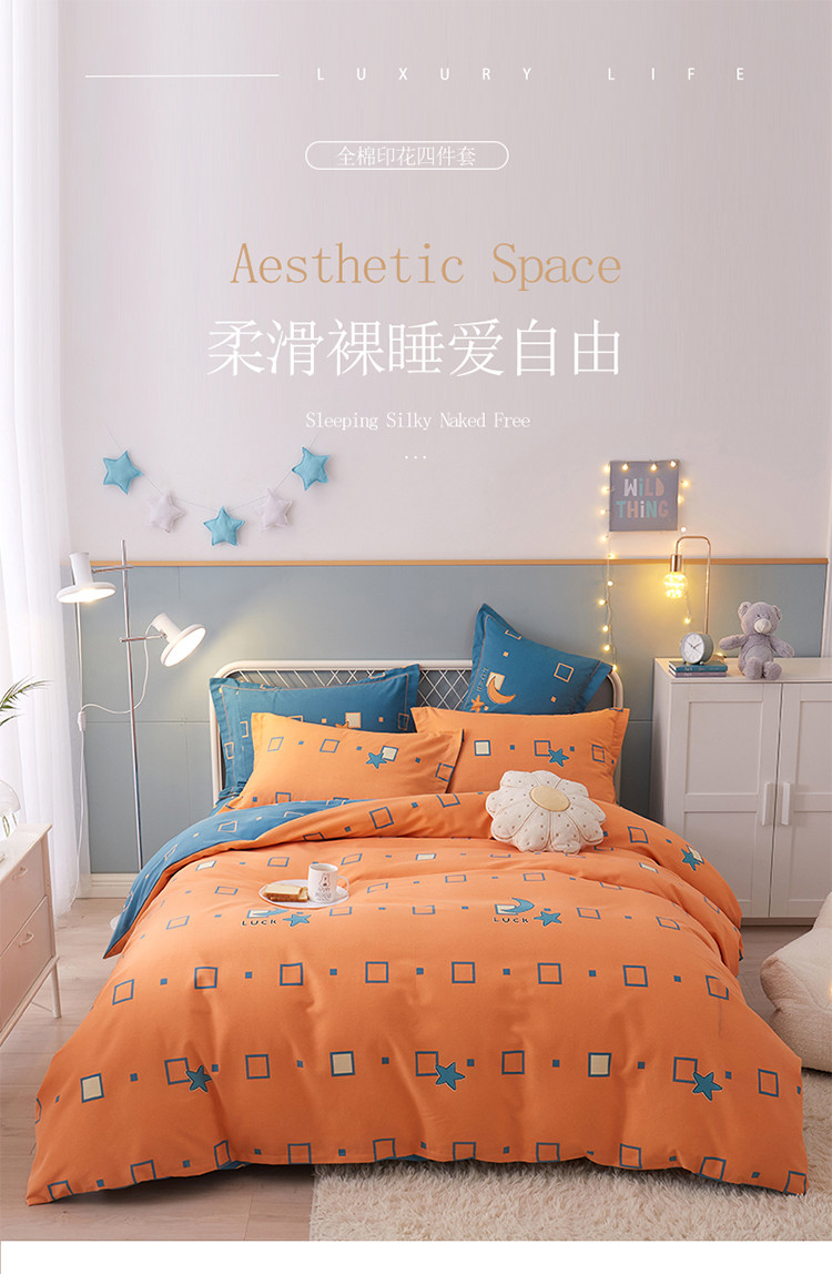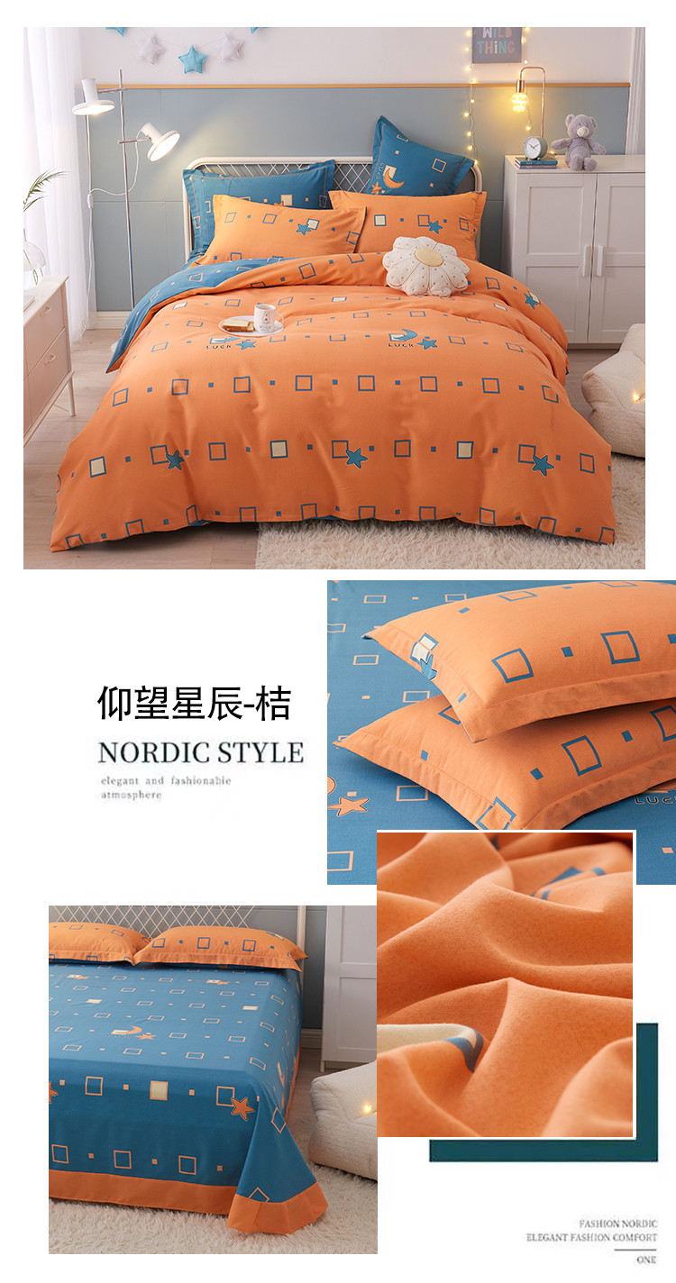 商品名称:金纱玉纺 2022新款全棉印花加厚磨毛四件套 仰望星辰-桔