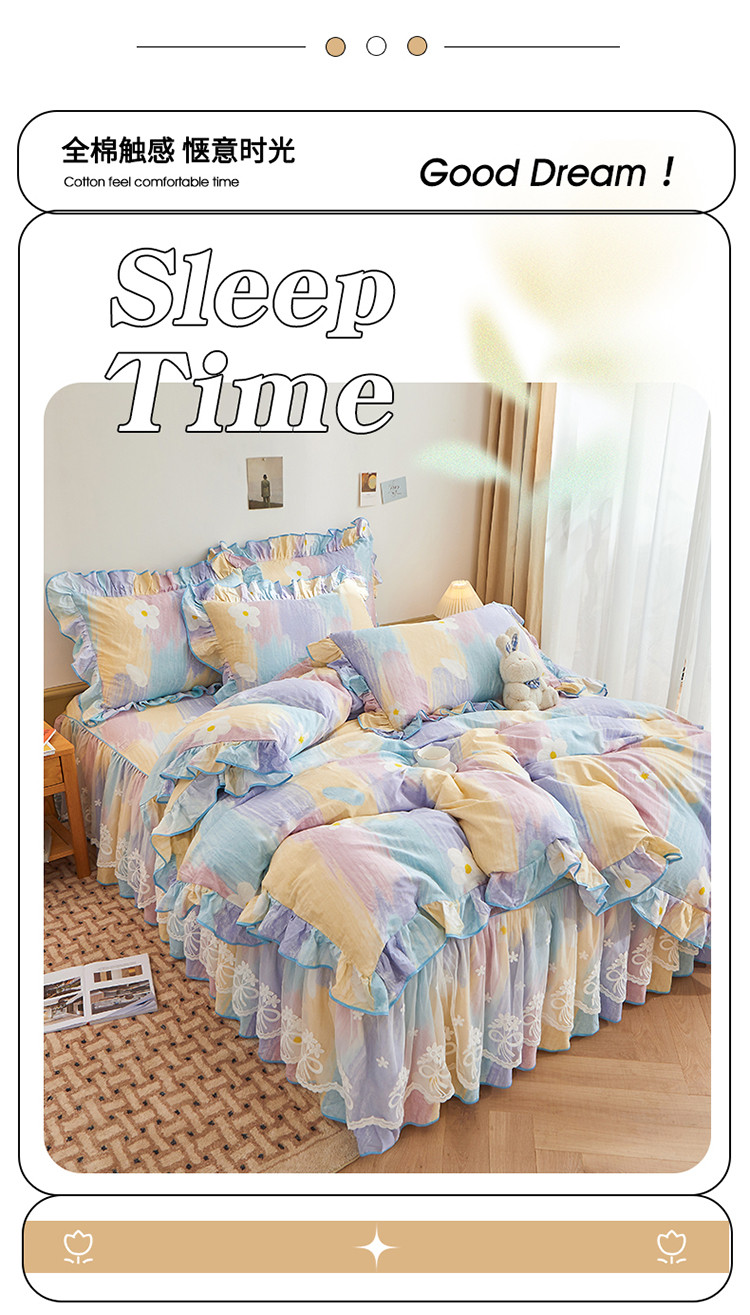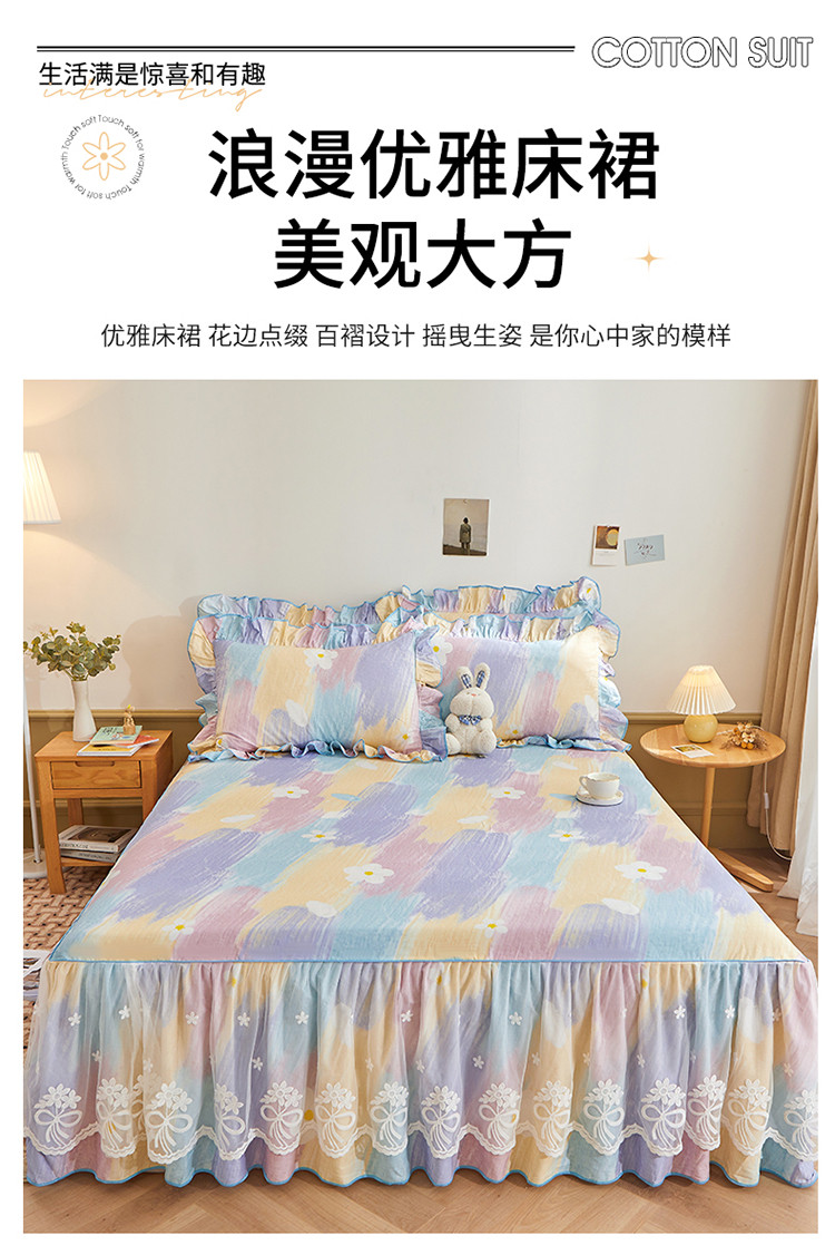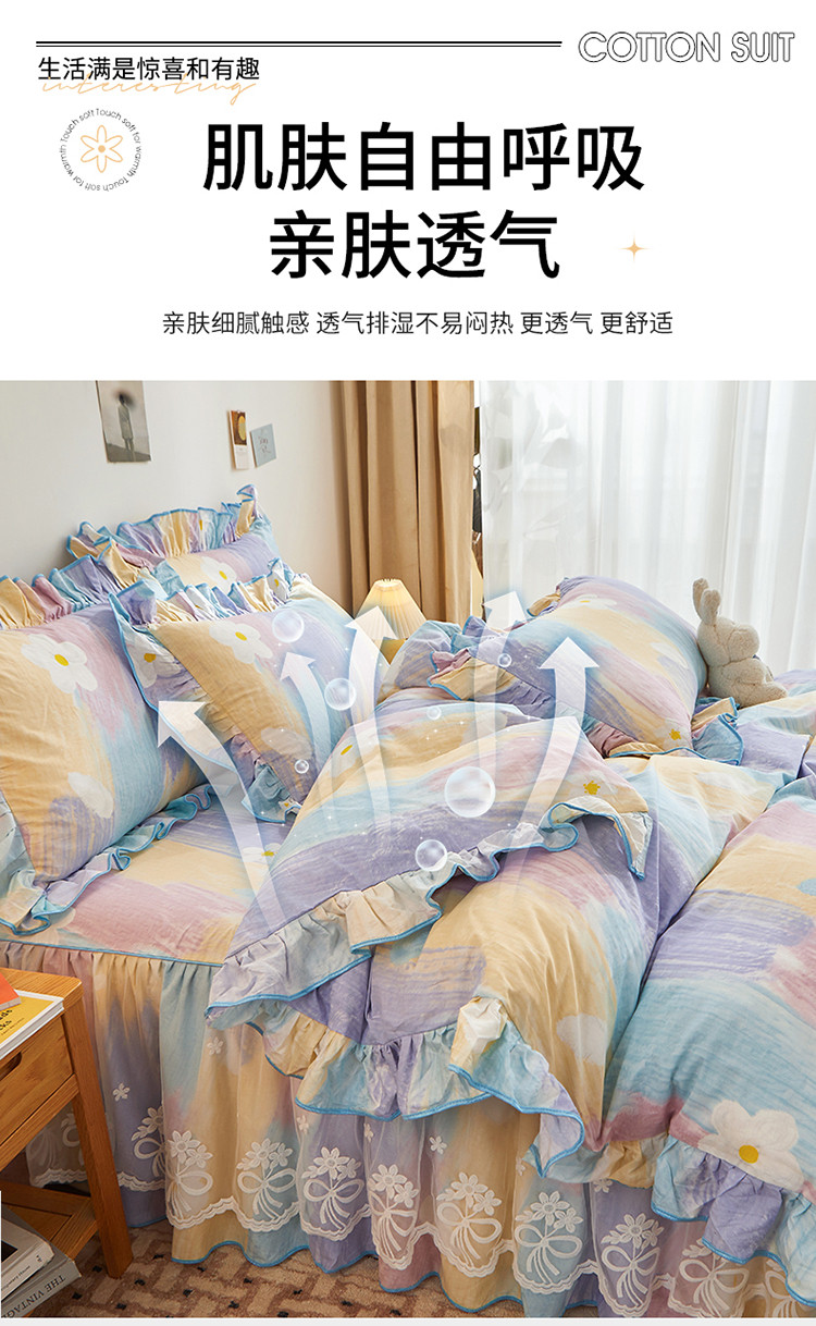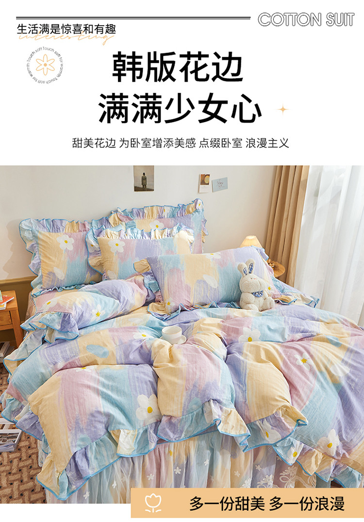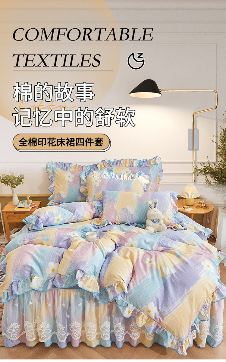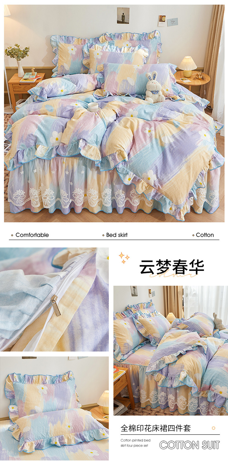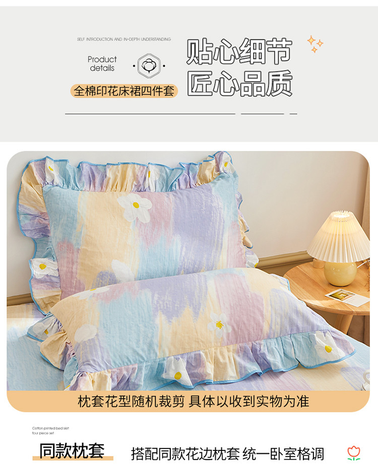 当前位置: 91家纺网 > 商品网购 > 床品套件 > 四件套 > 全棉普通四件套 > 宜凡 2023新款全棉印花单层裙边系列-床裙四件套 云梦春华