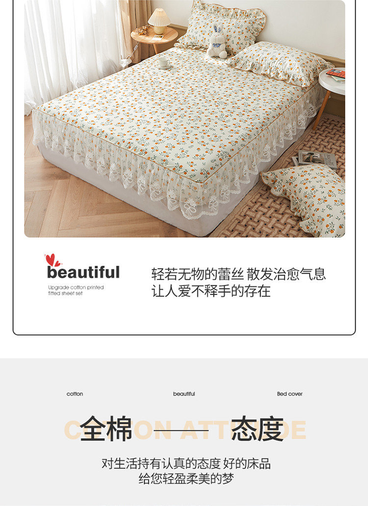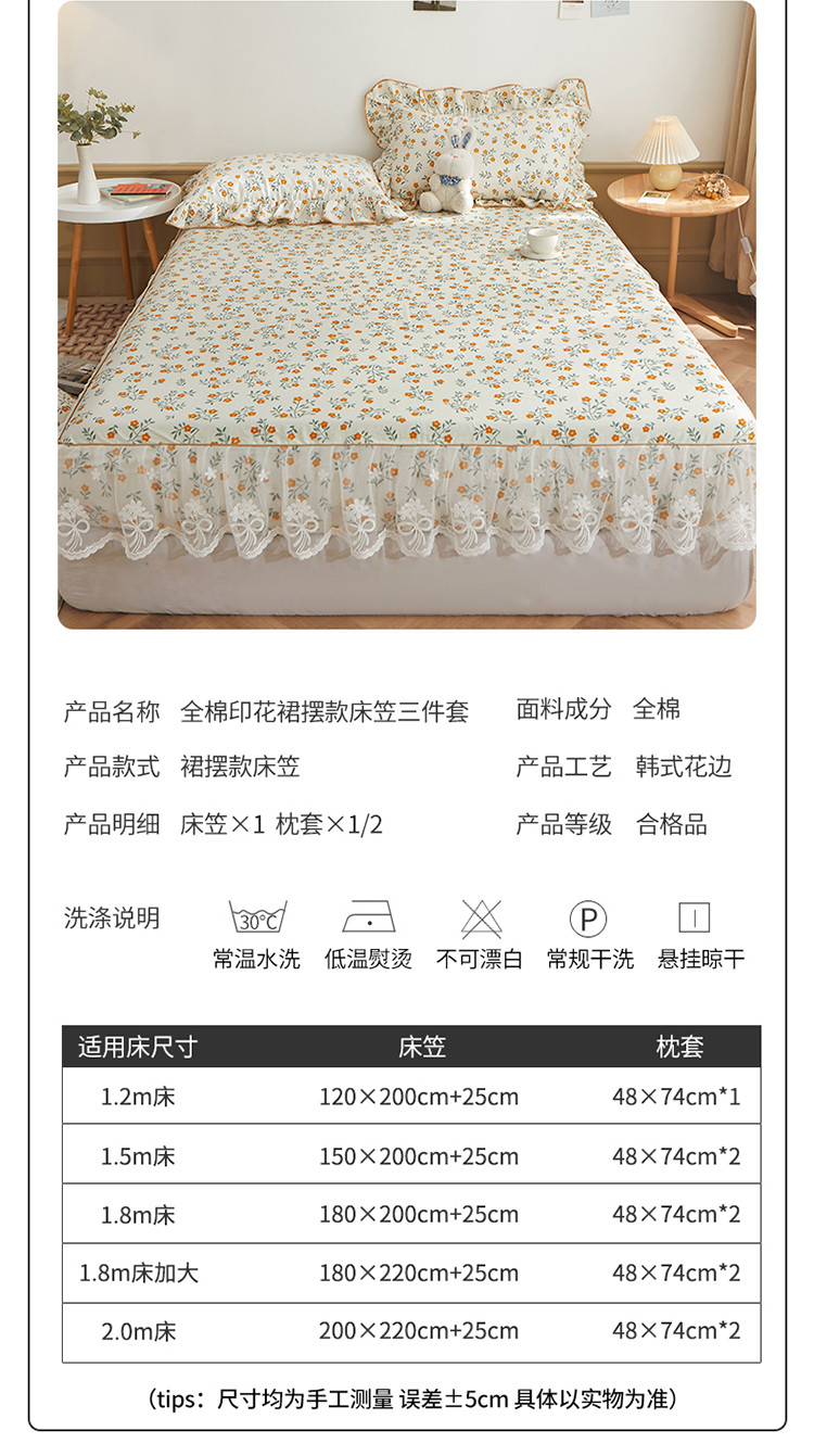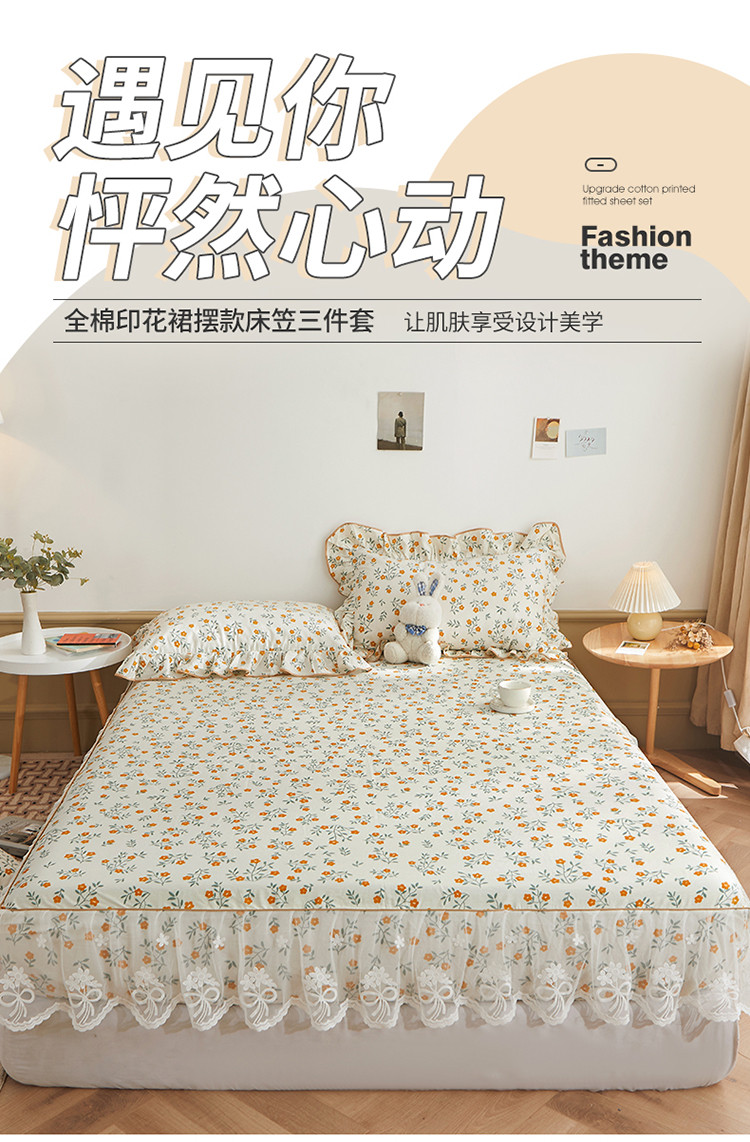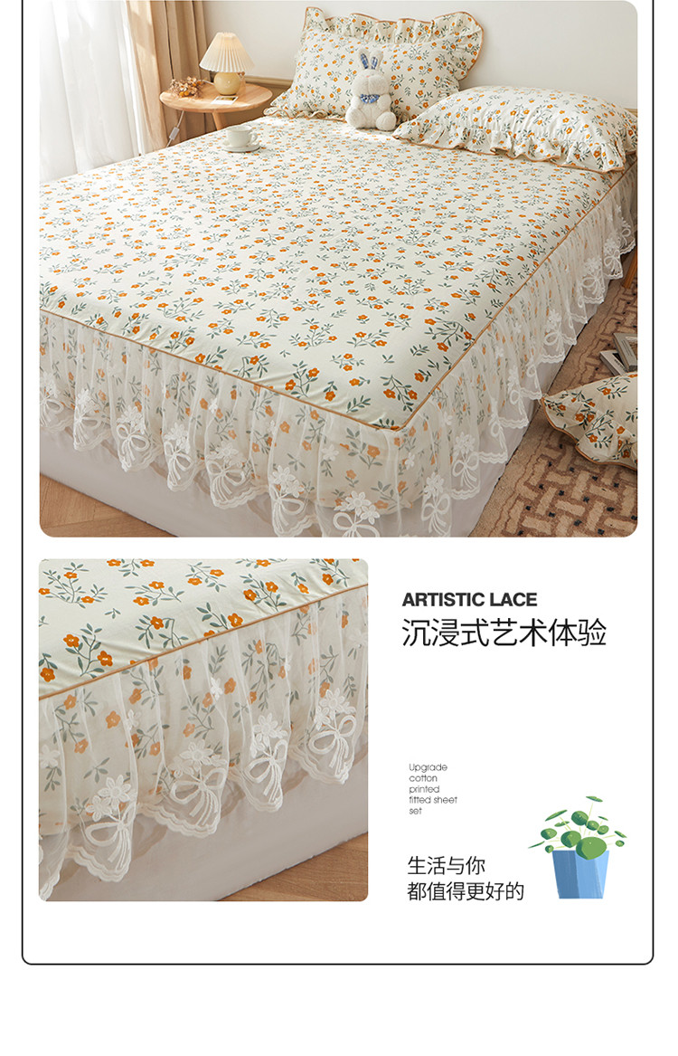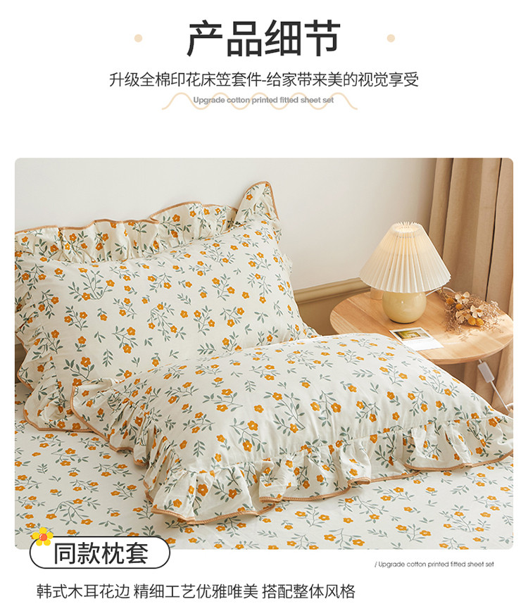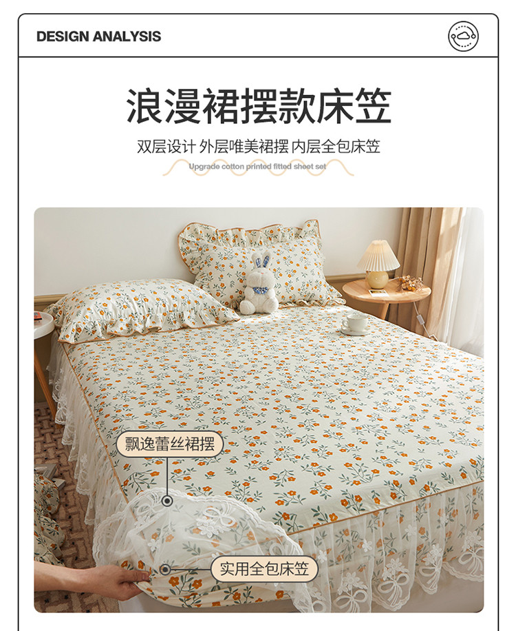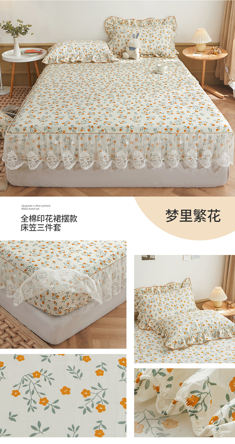当前位置: 91家纺网 > 商品网购 > 床品套件 > 三件套 > 宜凡 2023新款全棉印花单层裙边系列-床笠三件套 梦里繁花