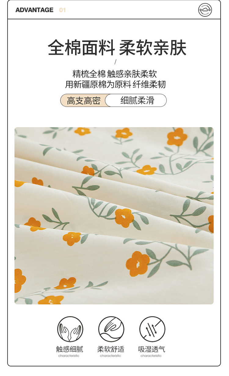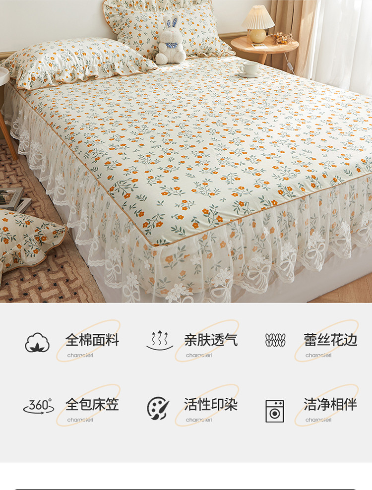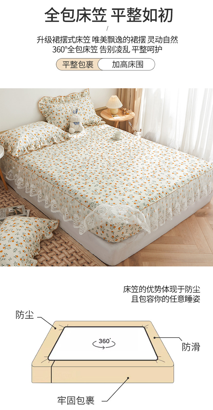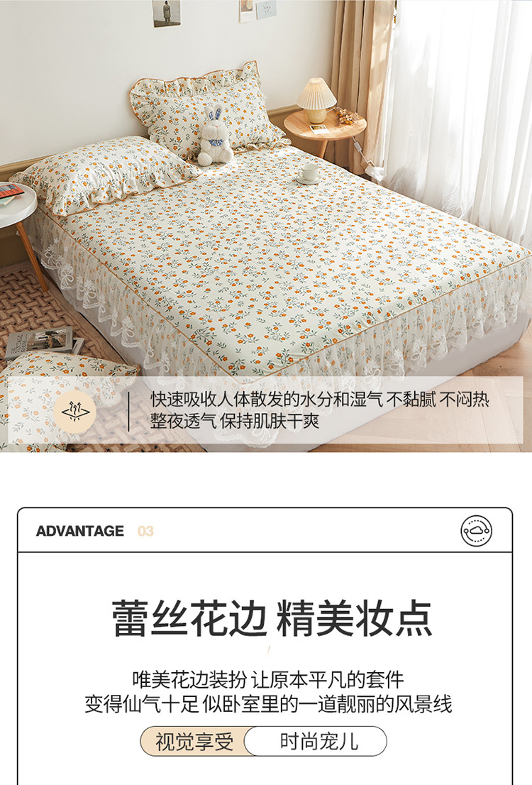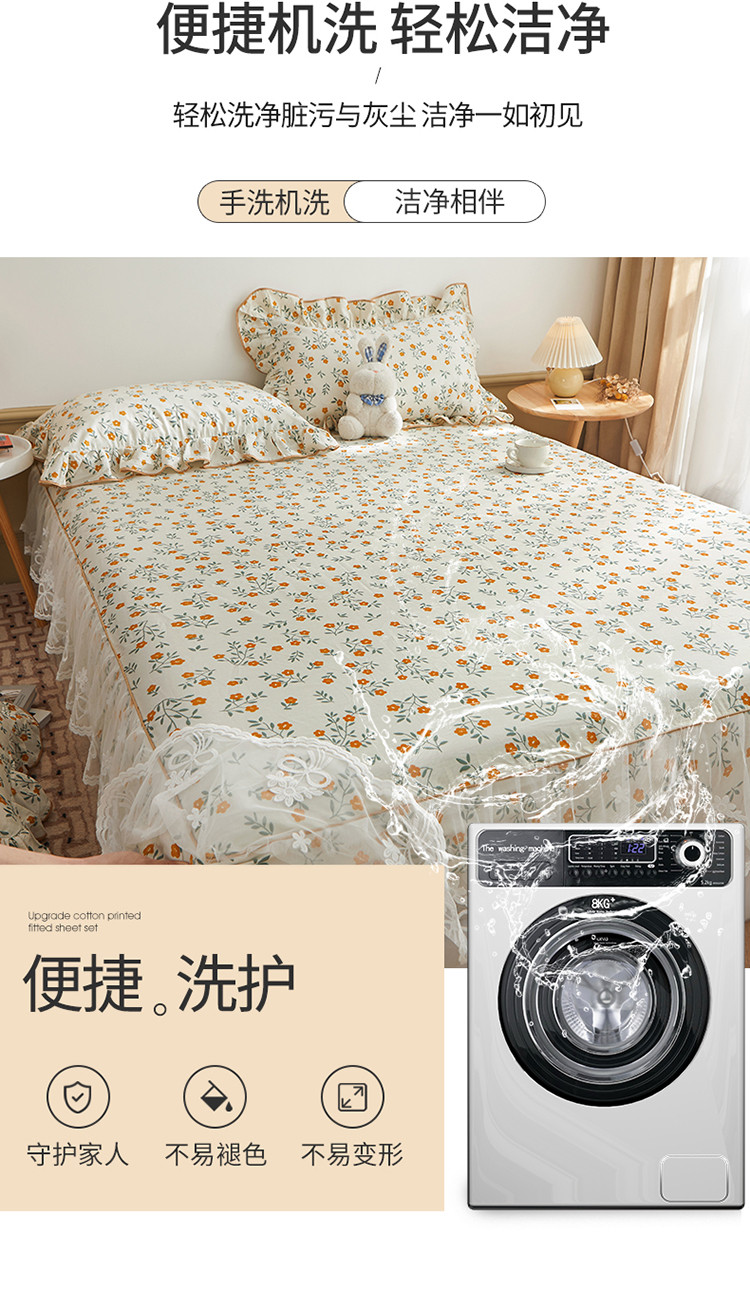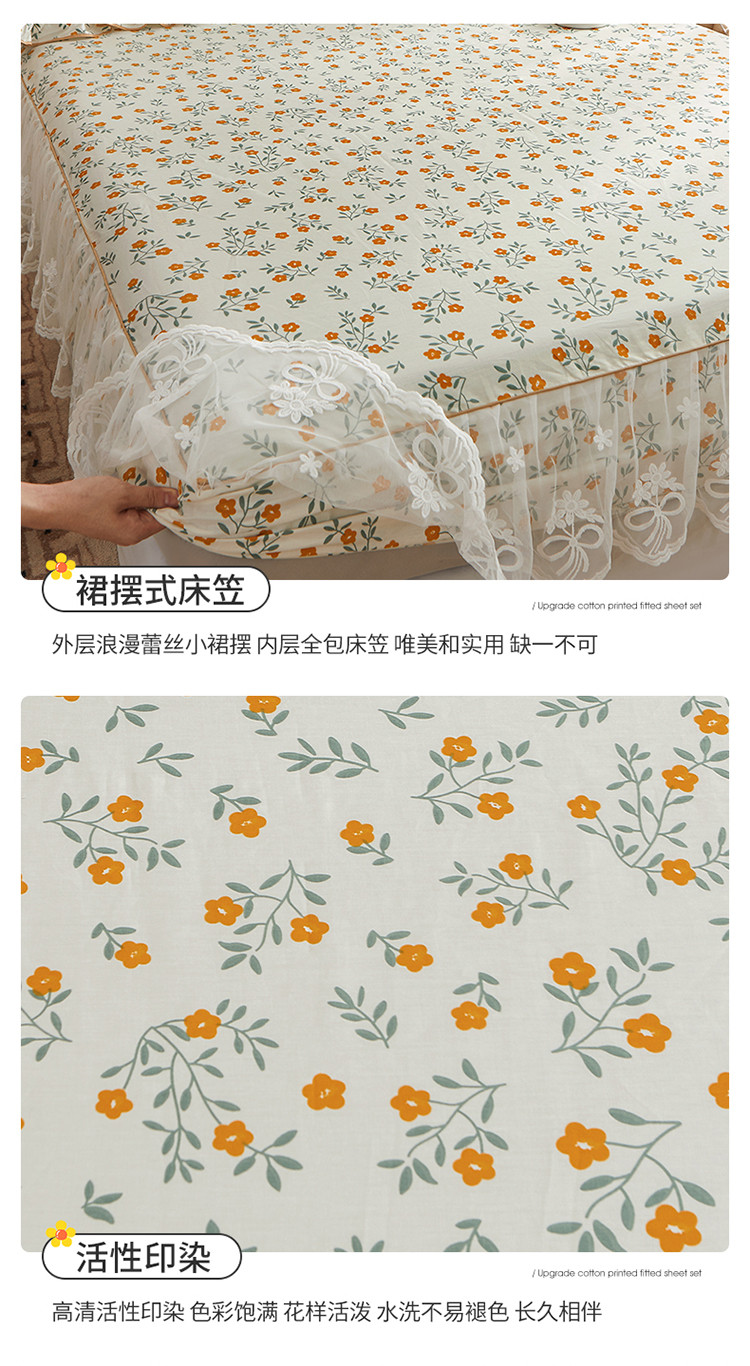 当前位置: 91家纺网 > 商品网购 > 床品套件 > 三件套 > 宜凡 2023新款全棉印花单层裙边系列-床笠三件套 梦里繁花
