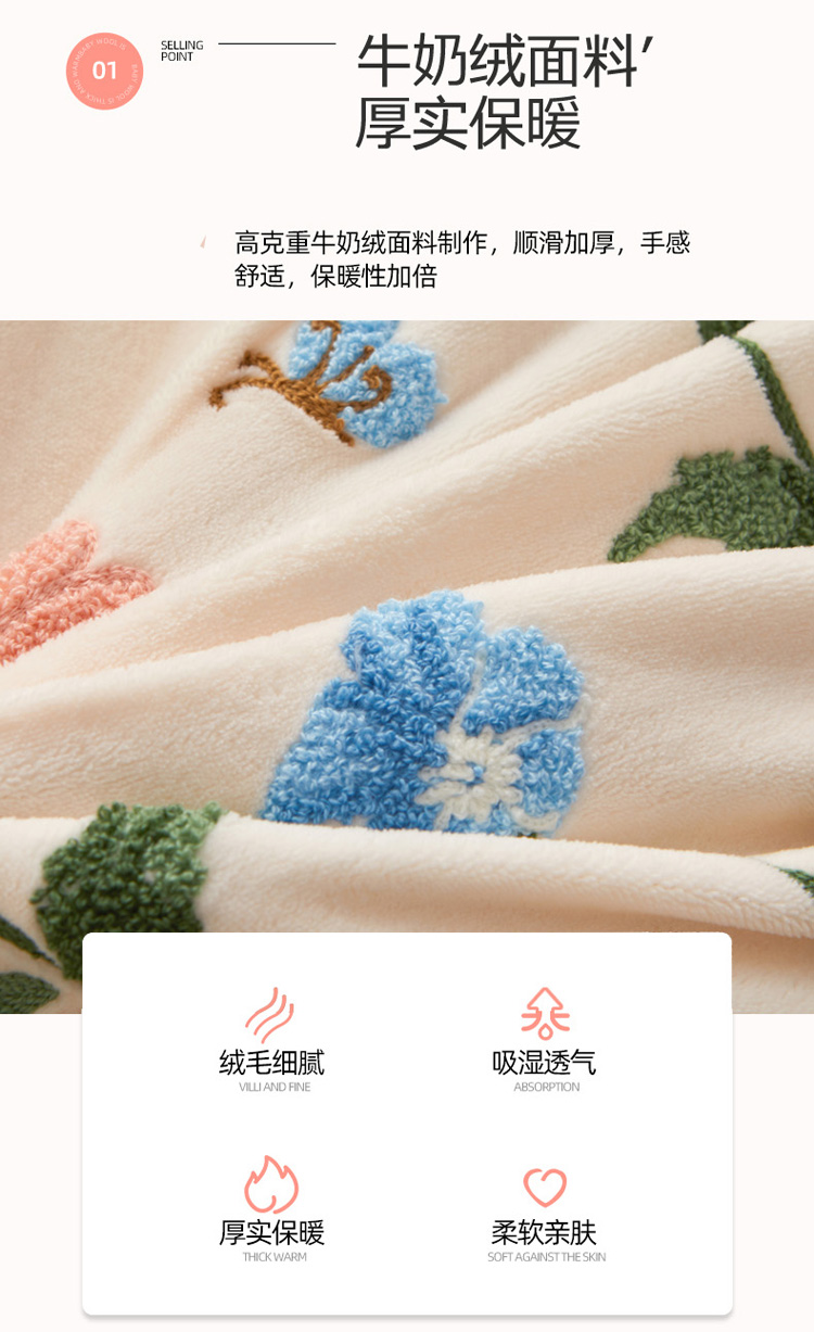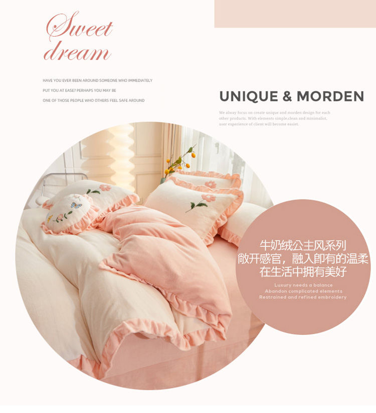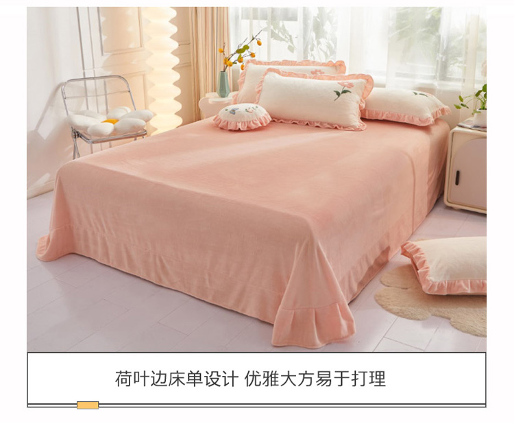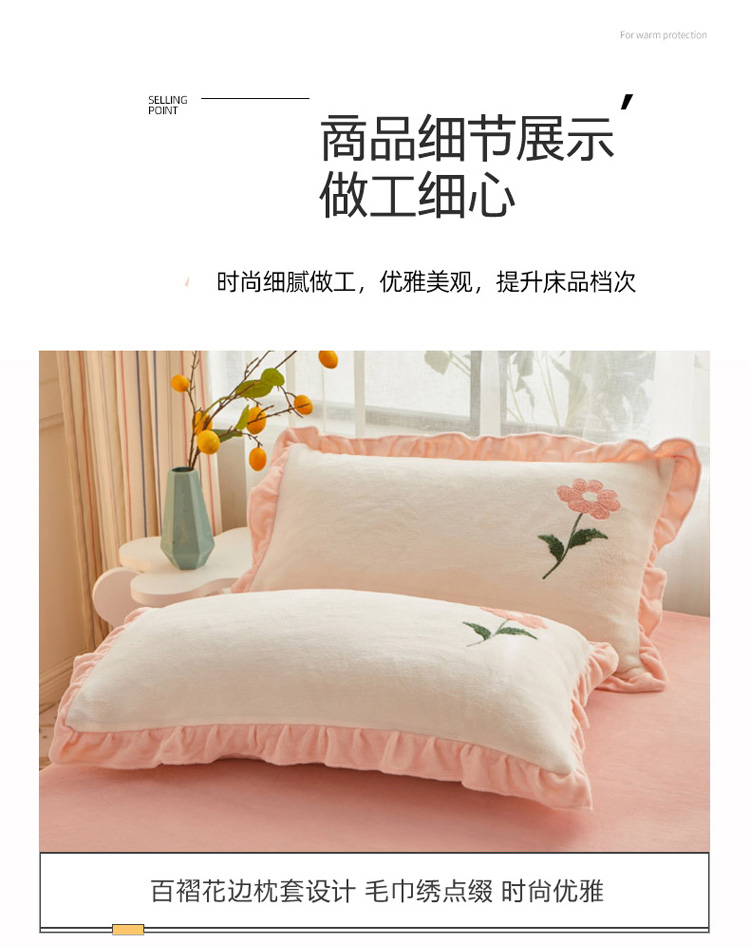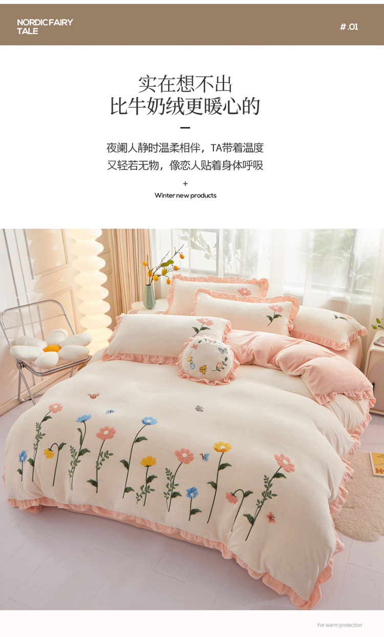 商品名称:恋佳 2023新款加厚牛奶绒荷叶边毛巾绣四件套 如花似锦米色