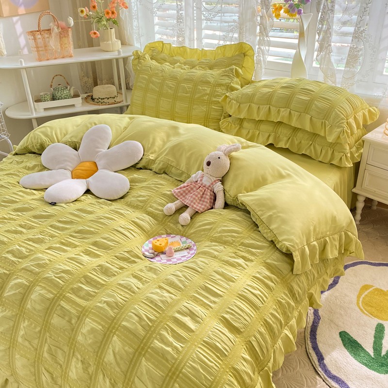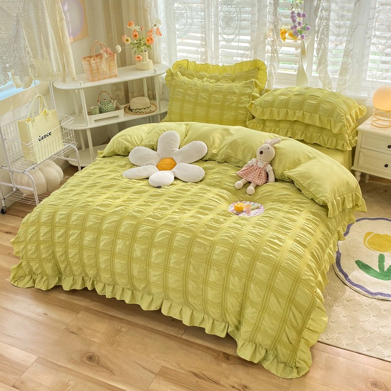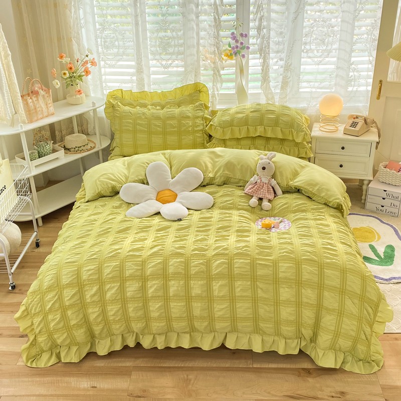 当前位置: 91家纺网 > 商品网购 > 床品套件 > 四件套 > 普通磨毛四件套 > 秋艳家纺 2023新款韩式泡泡纱花边四件套 大泡泡-芥末绿