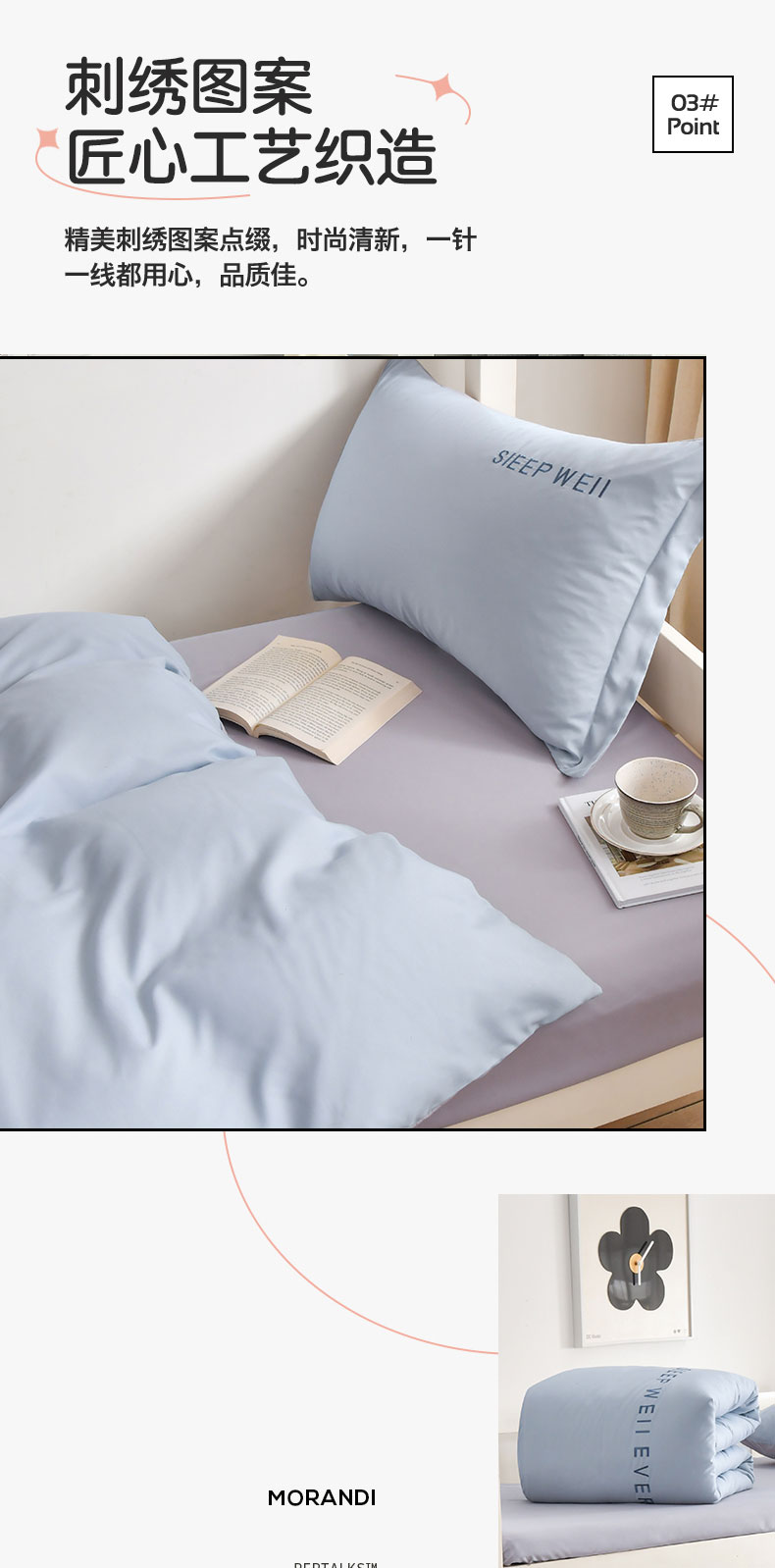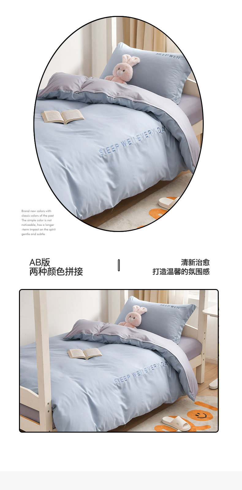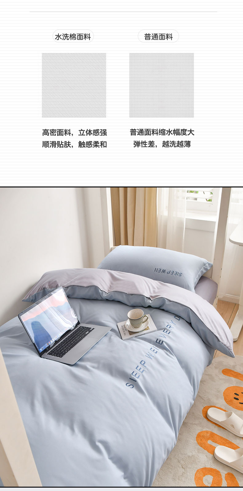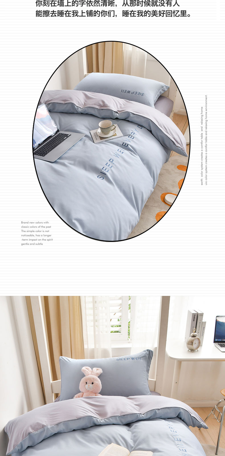 商品名称:啊雅家居纯色水洗磨毛亲肤绣花床单床笠学生三套件奶兰灰加奶浅灰