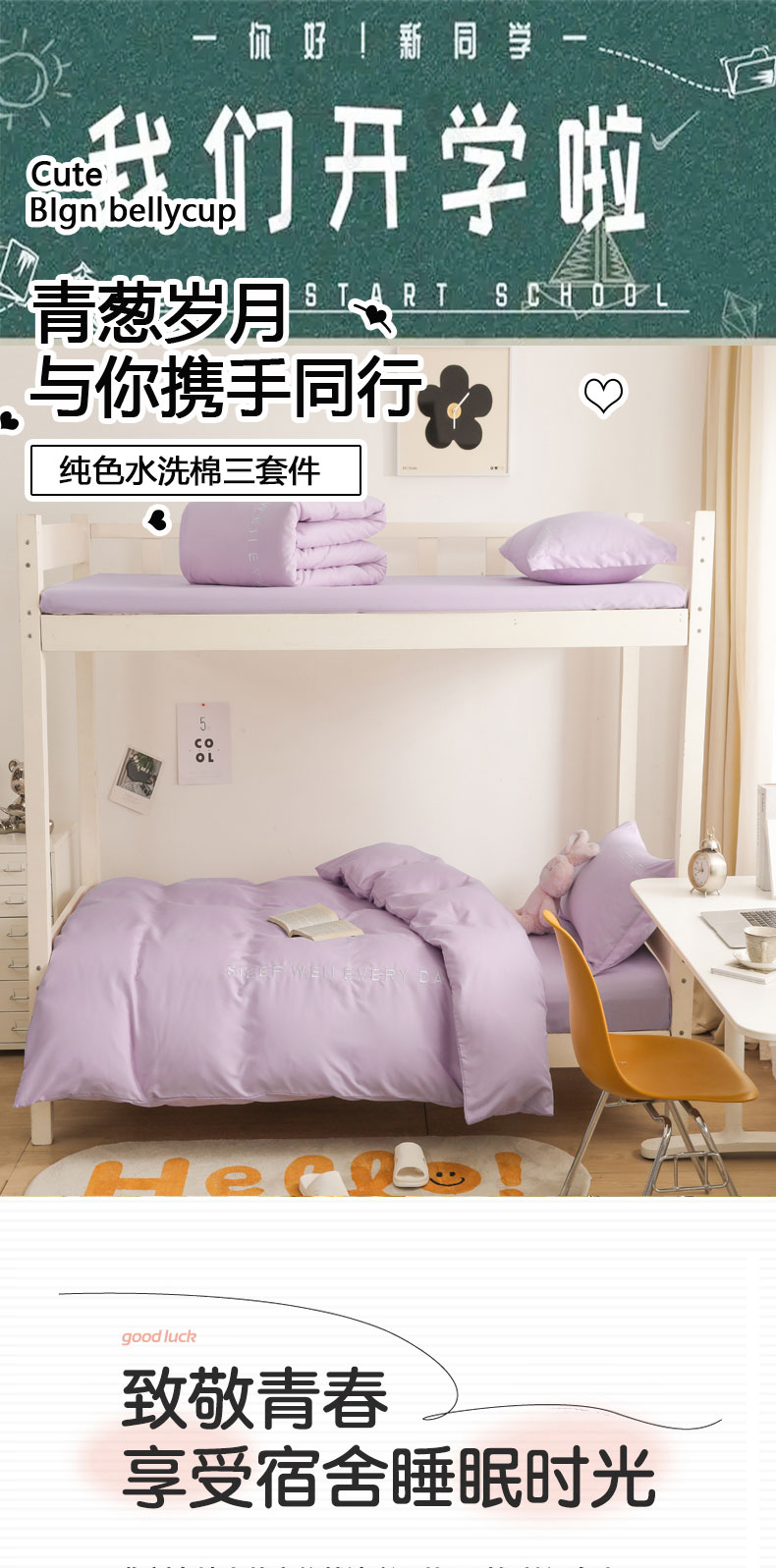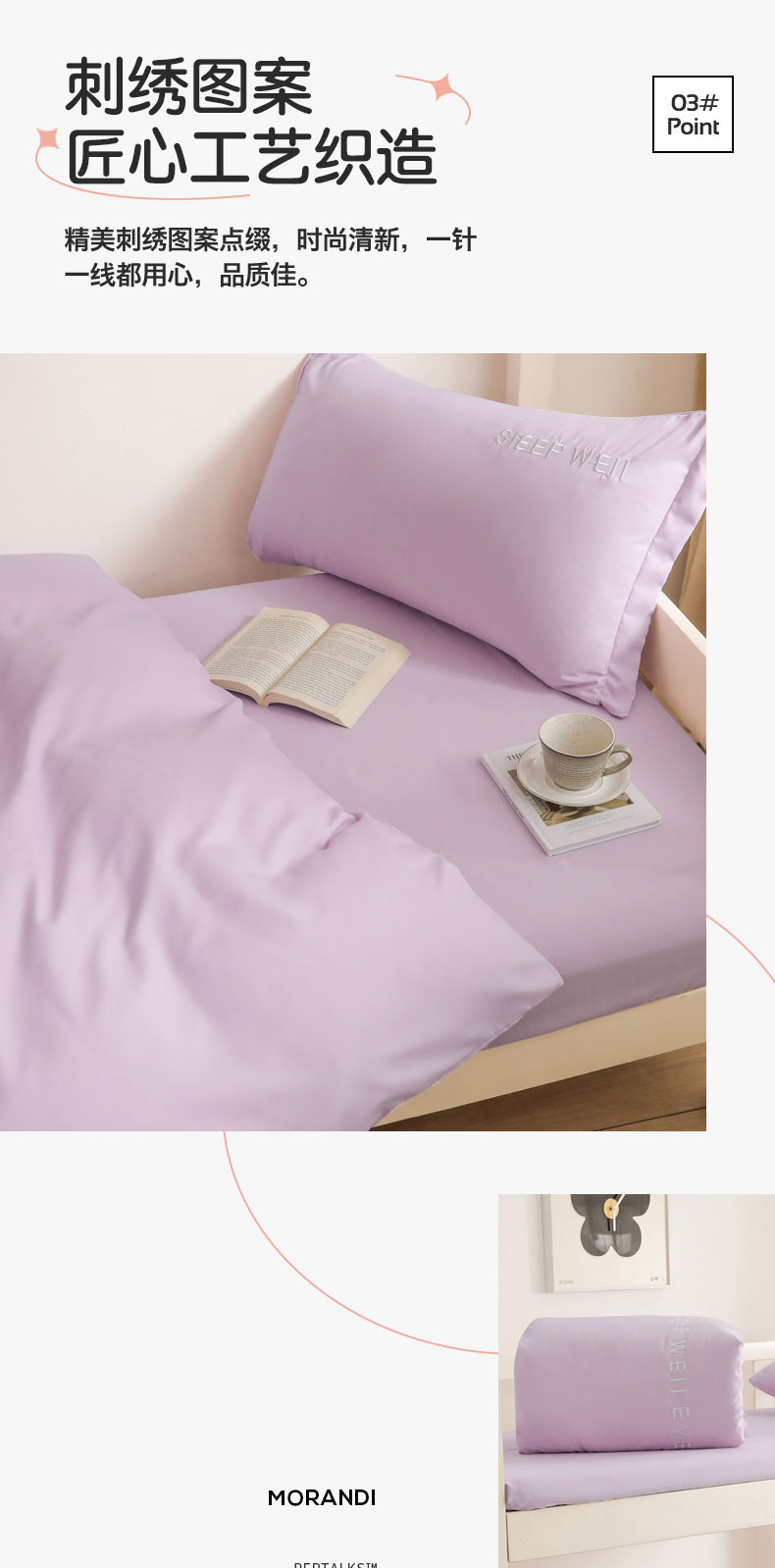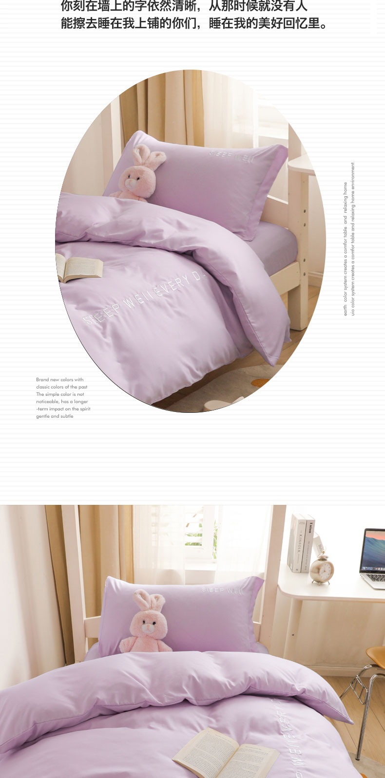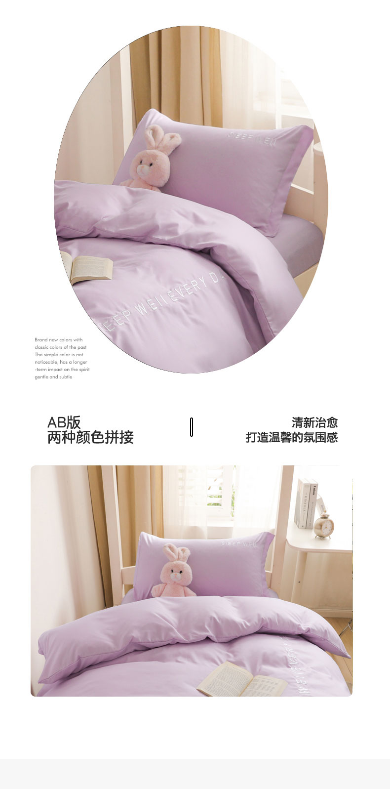 商品名称:啊雅家居纯色水洗磨毛亲肤绣花床单款床笠款学生三套件 奶紫