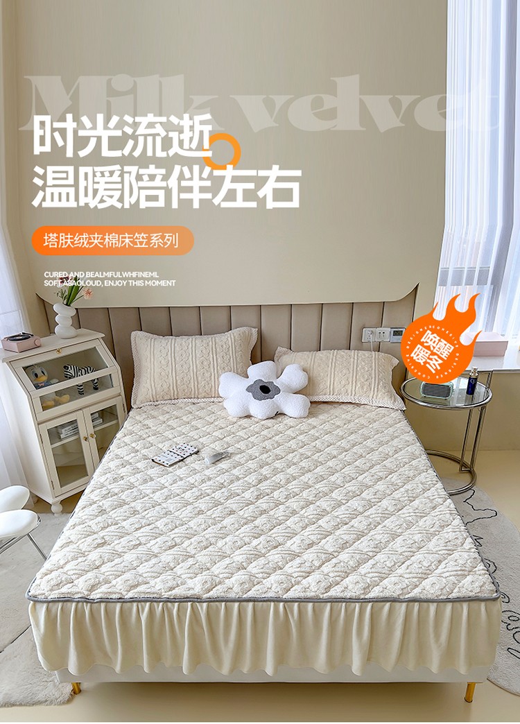 (总)摩妮卡2025新款加厚塔肤绒提花夹棉床裙床笠