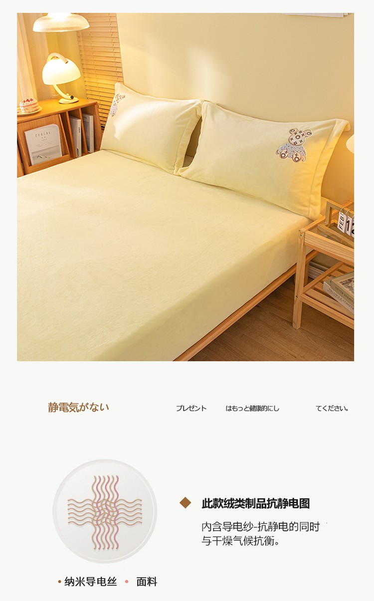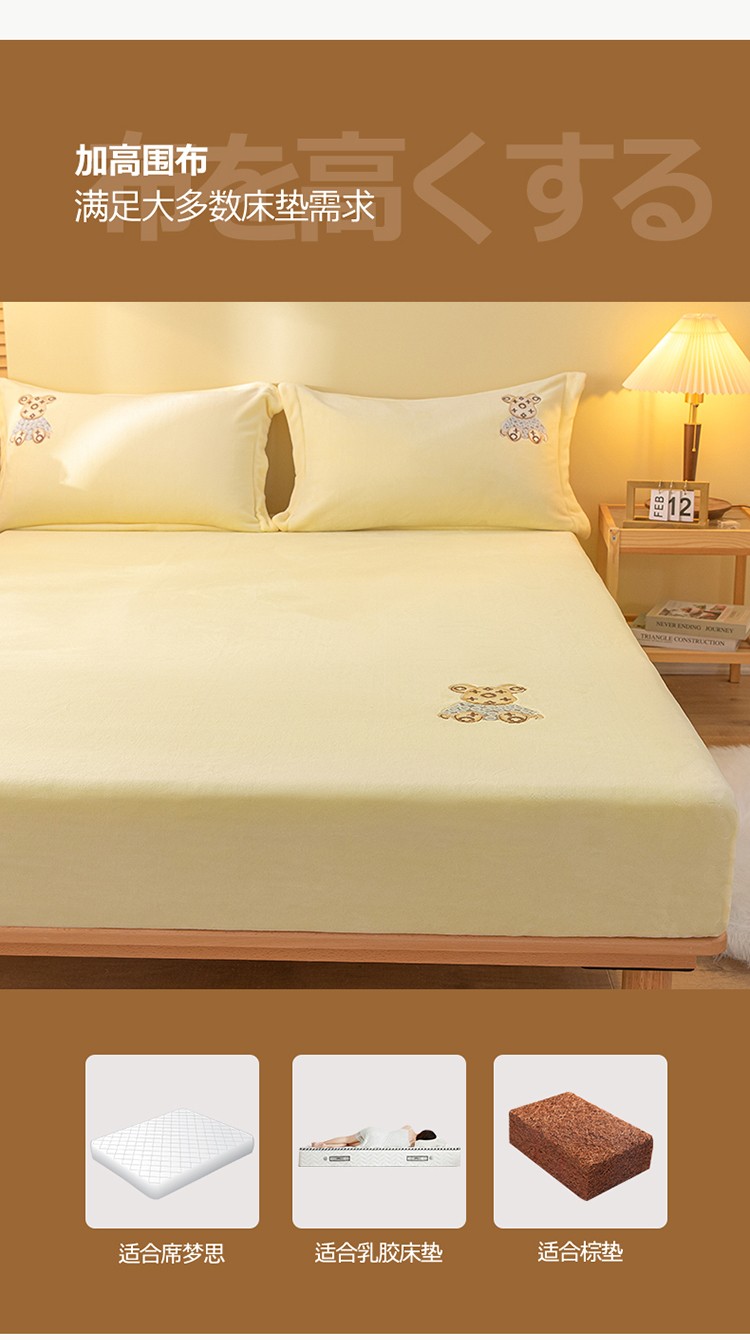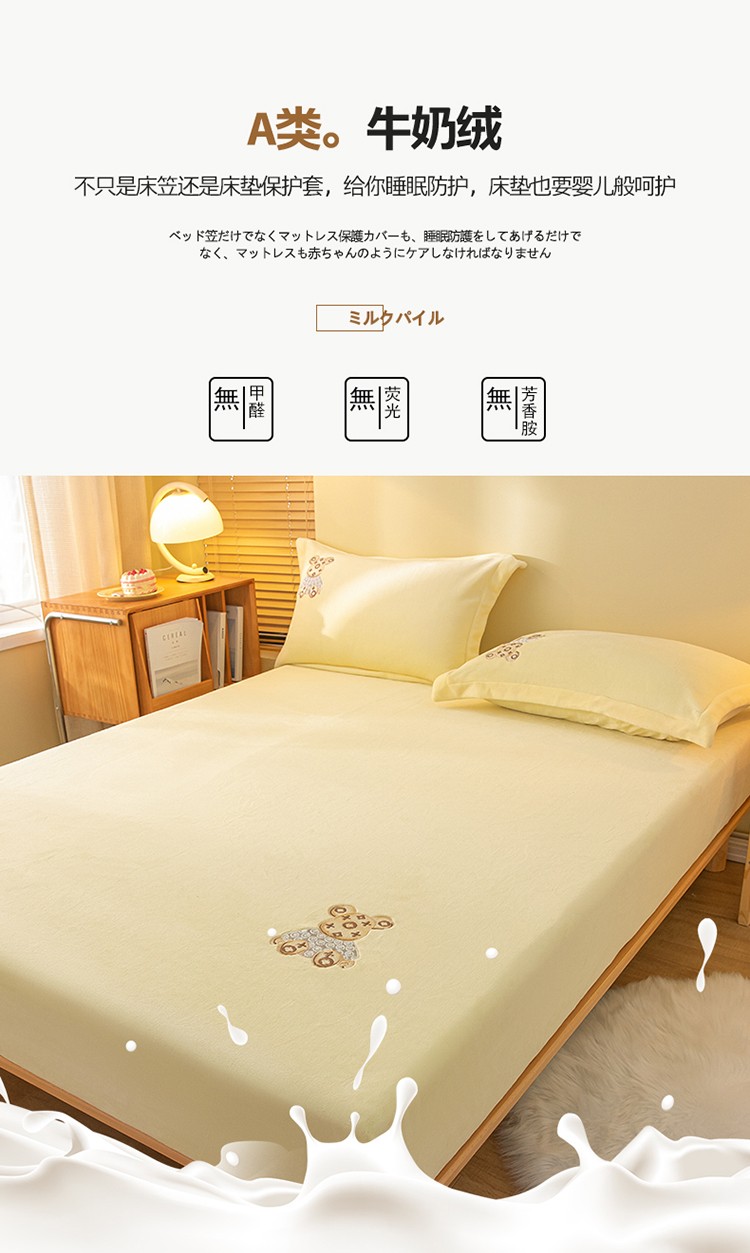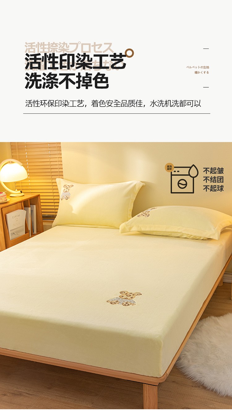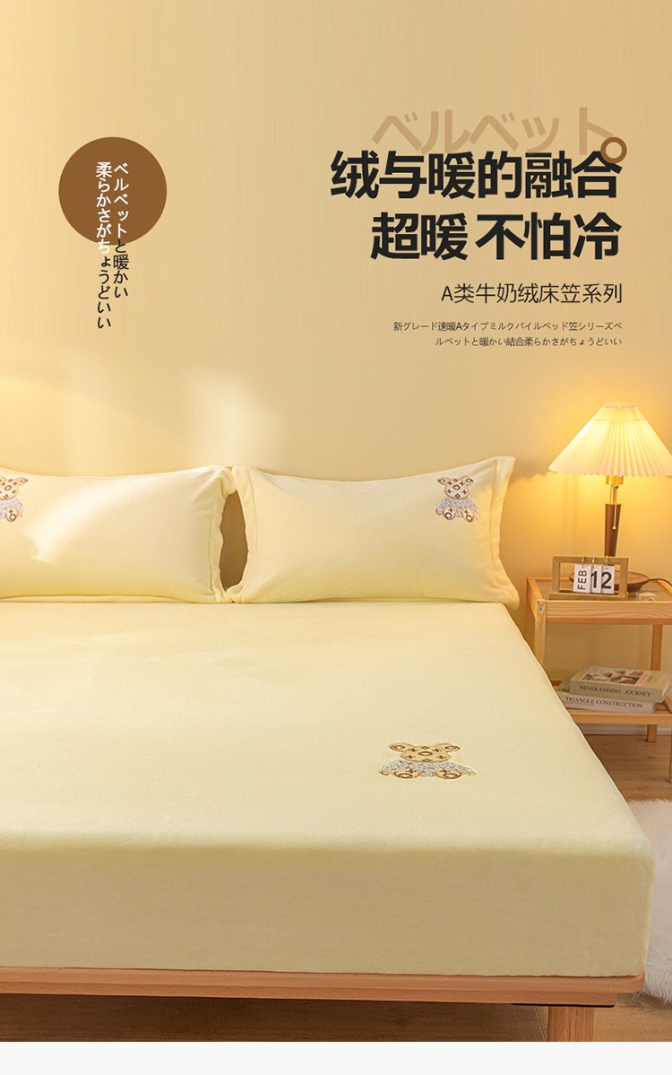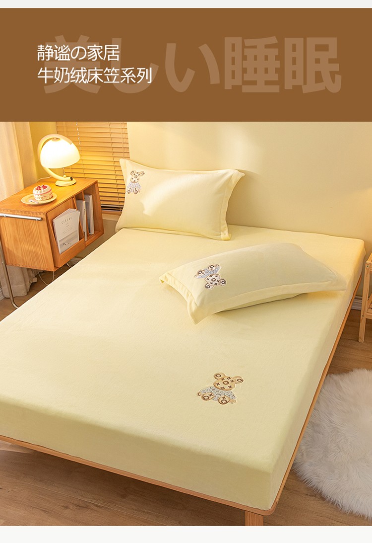 商品名称:蓝米卡夫 2024新款暴力熊A类牛奶绒保暖单床笠 奶油黄
