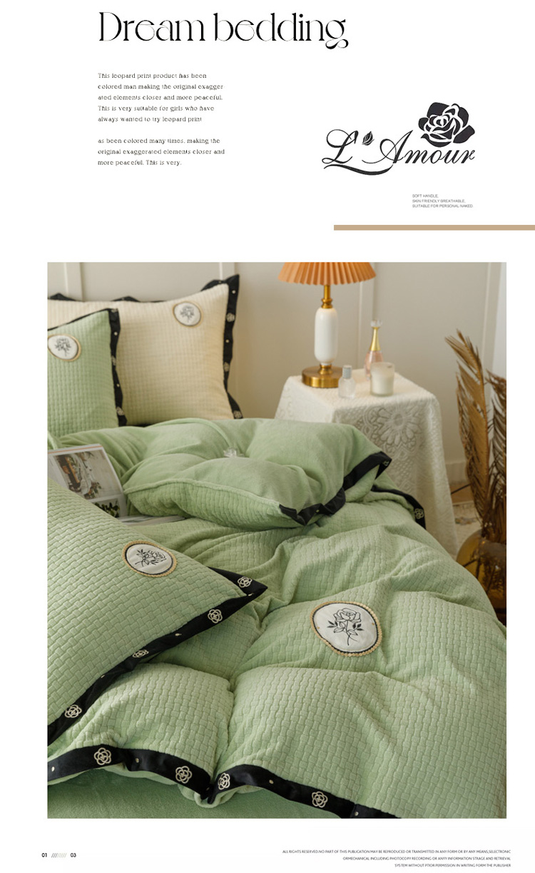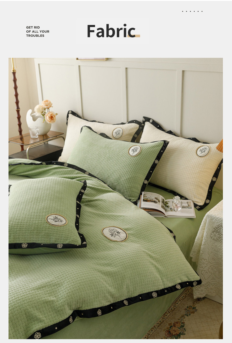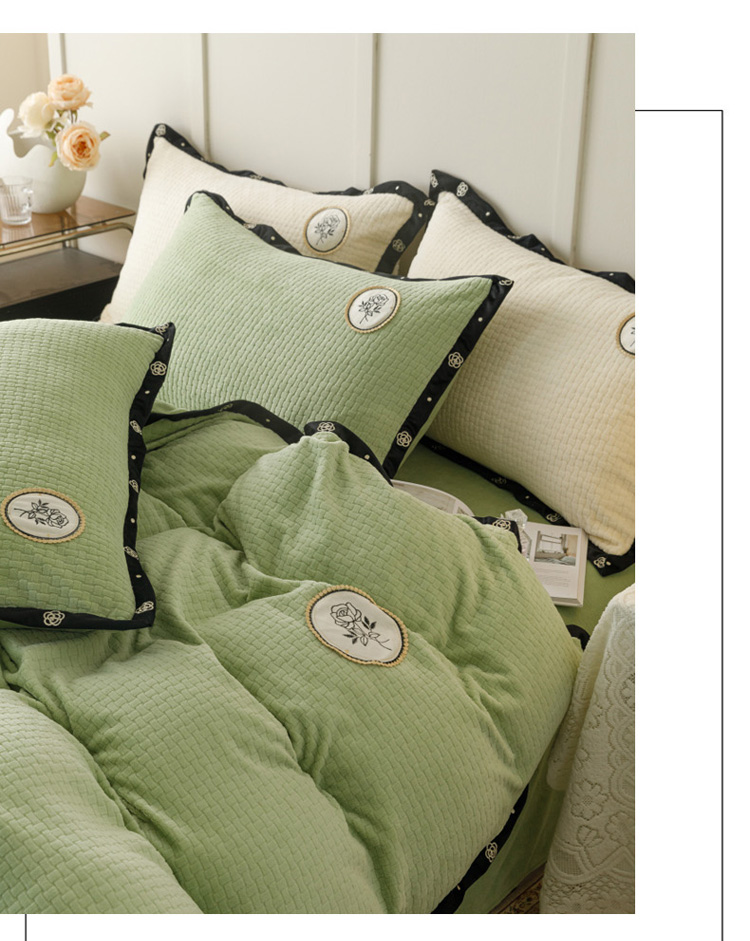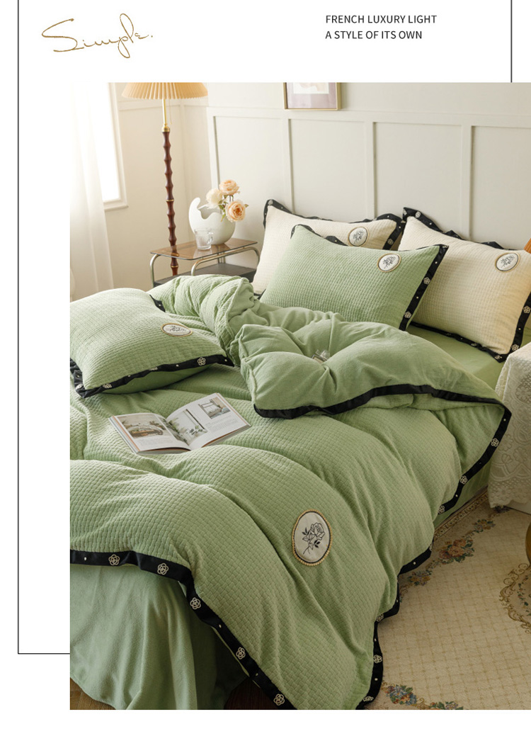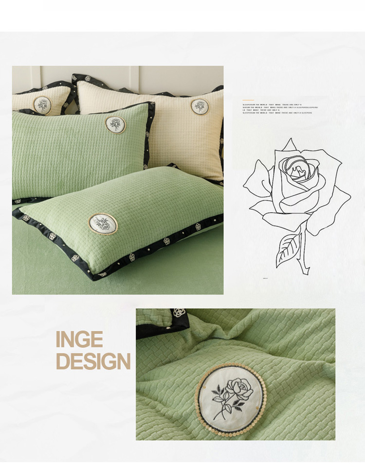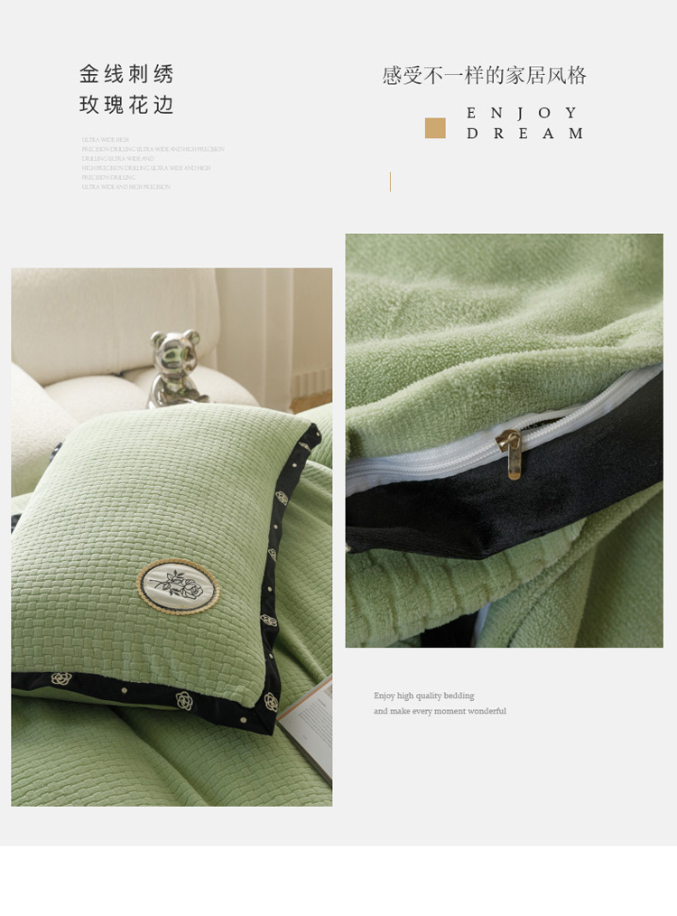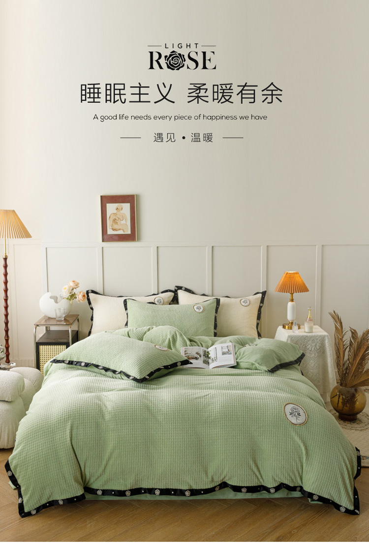 菊上家纺 2022新款高端刺绣牛奶绒四件套小香玫瑰系列 小香绿