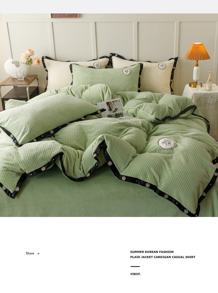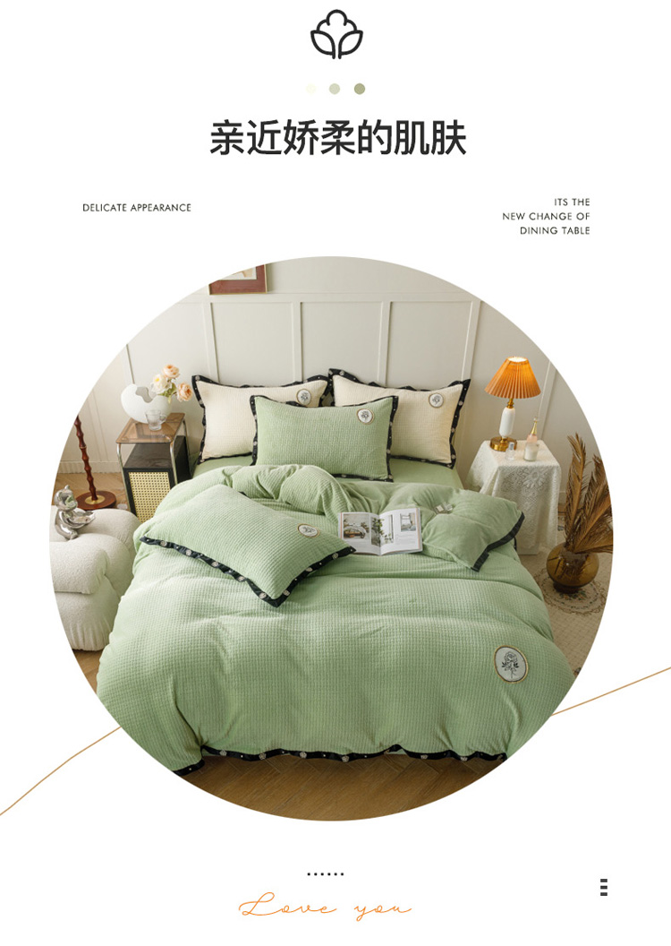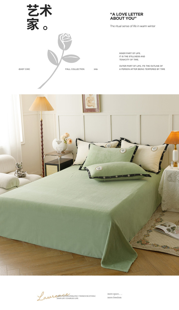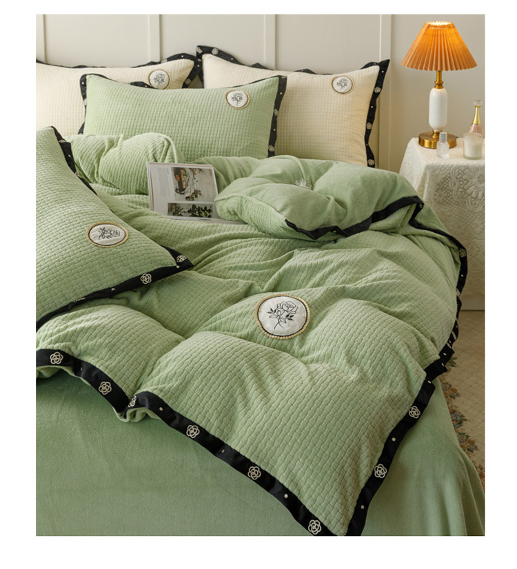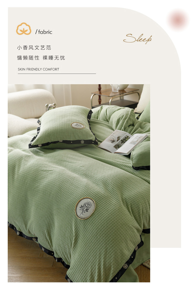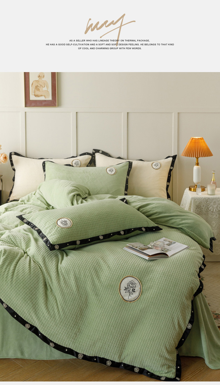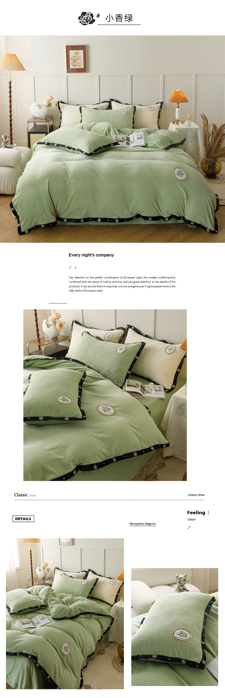 菊上家纺 2022新款高端刺绣牛奶绒四件套小香玫瑰系列 小香绿