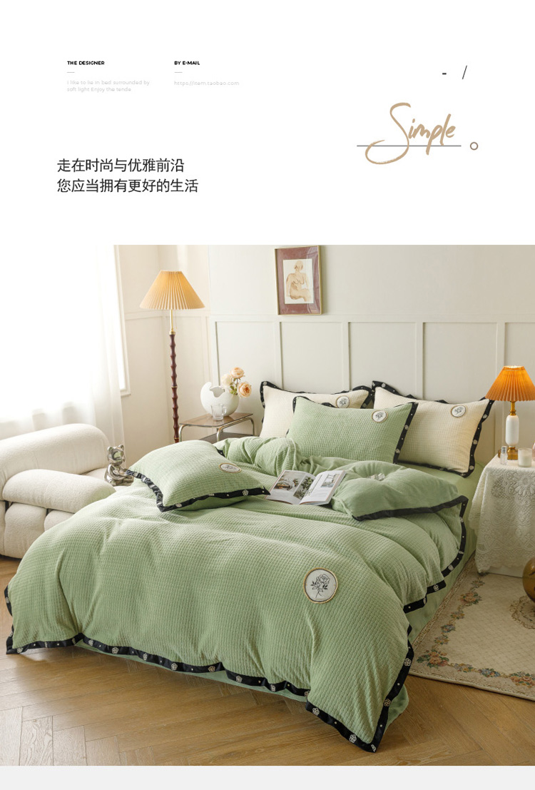 商品名称:菊上家纺 2022新款高端刺绣牛奶绒四件套小香玫瑰系列 小香绿
