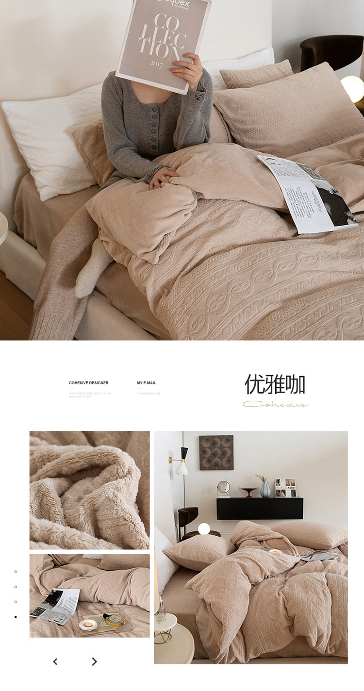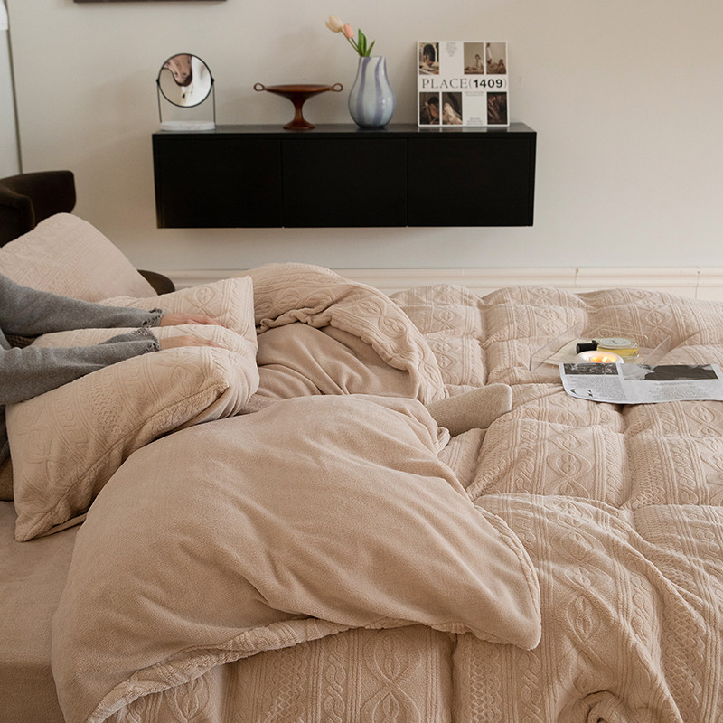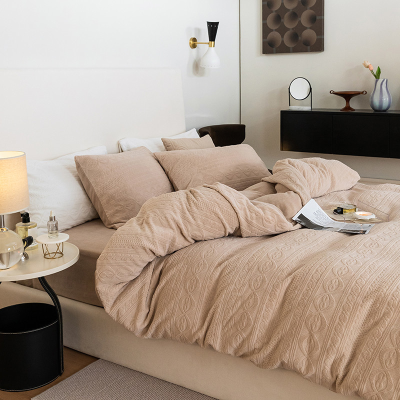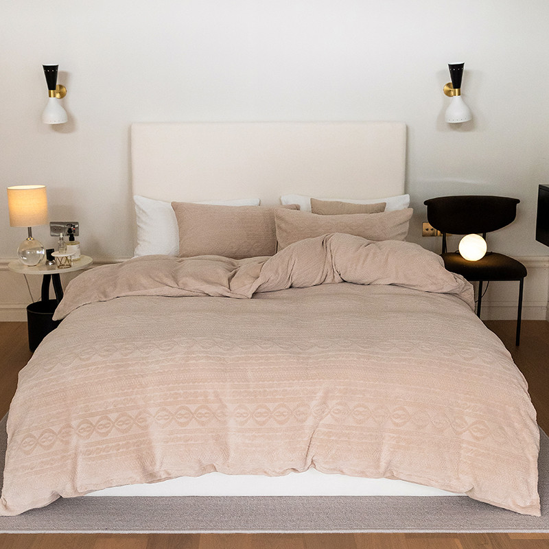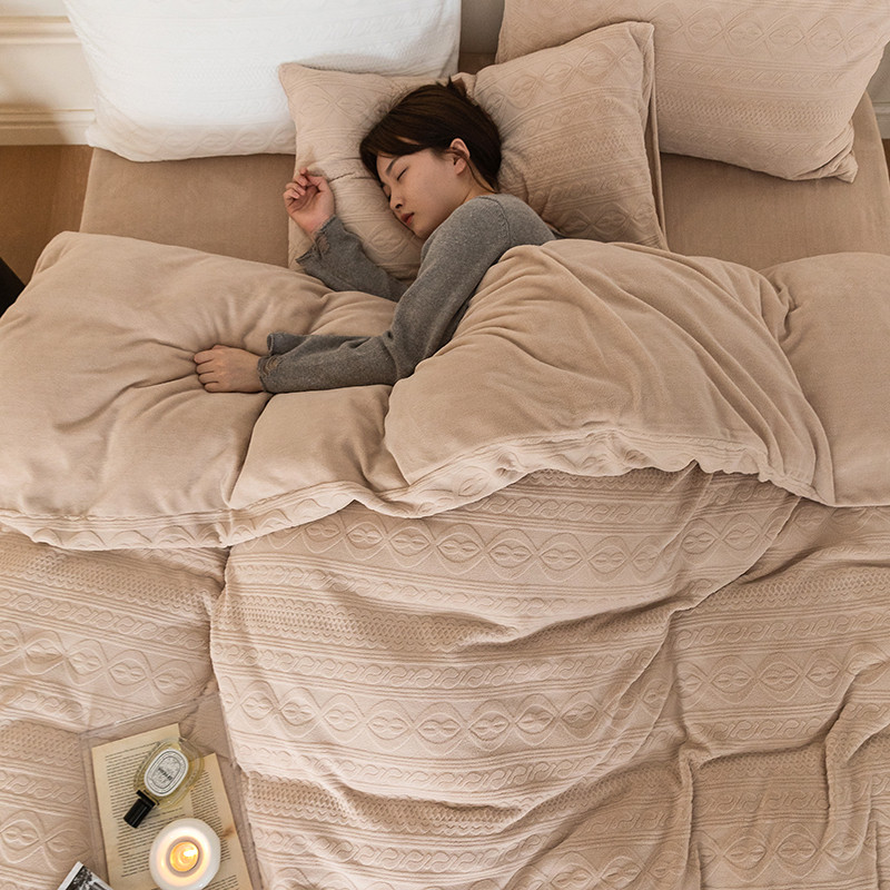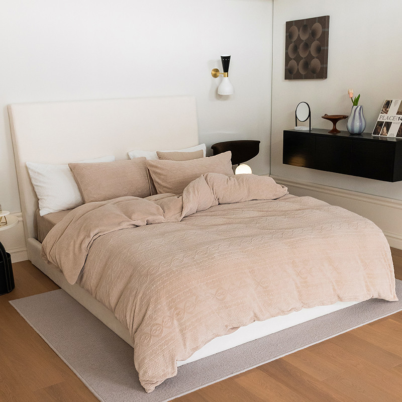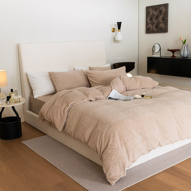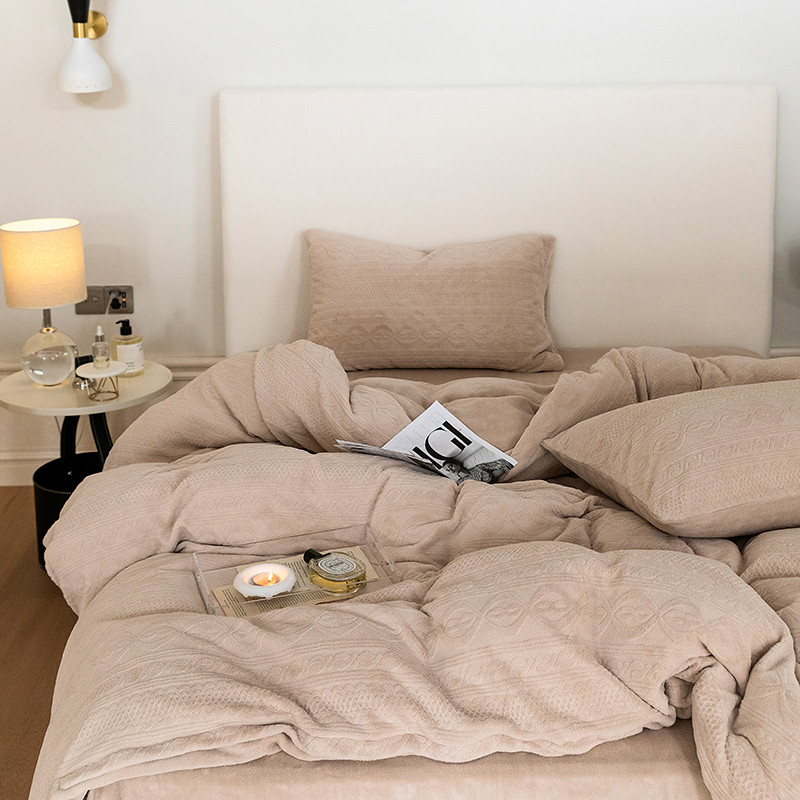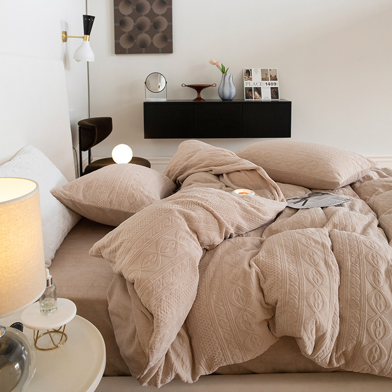 当前位置: 91家纺网 > 商品网购 > 床品套件 > 四件套 > 牛奶绒四件套 > 寐眠 2022新款牛奶绒剪花四件套 优雅咖
