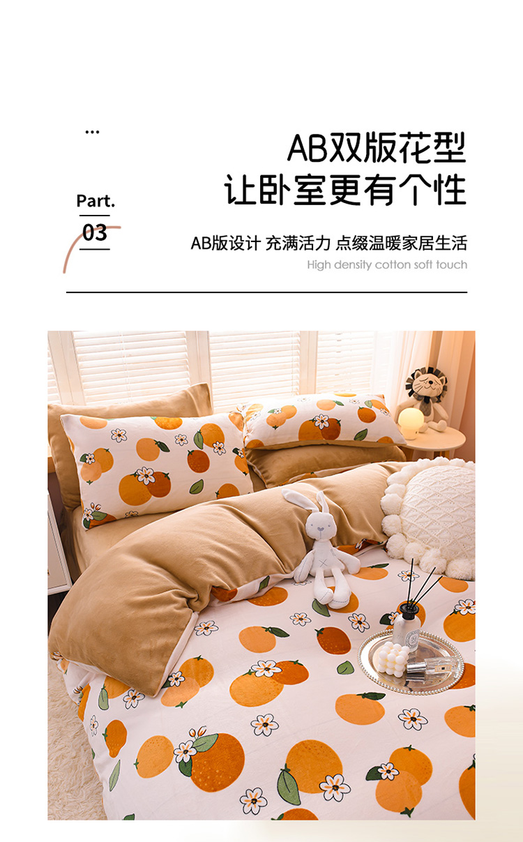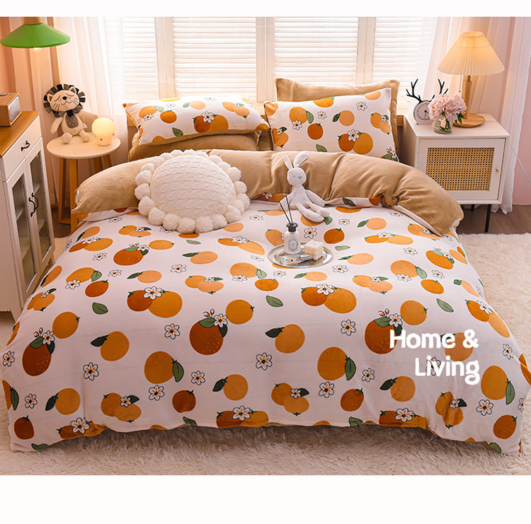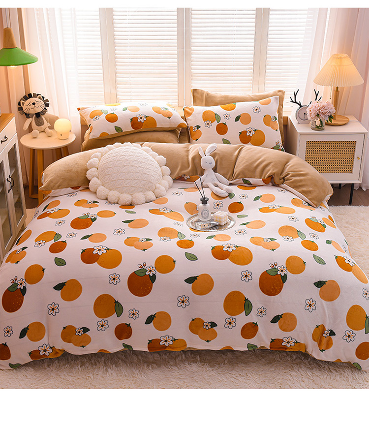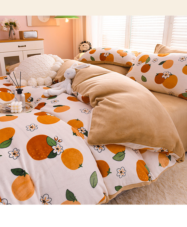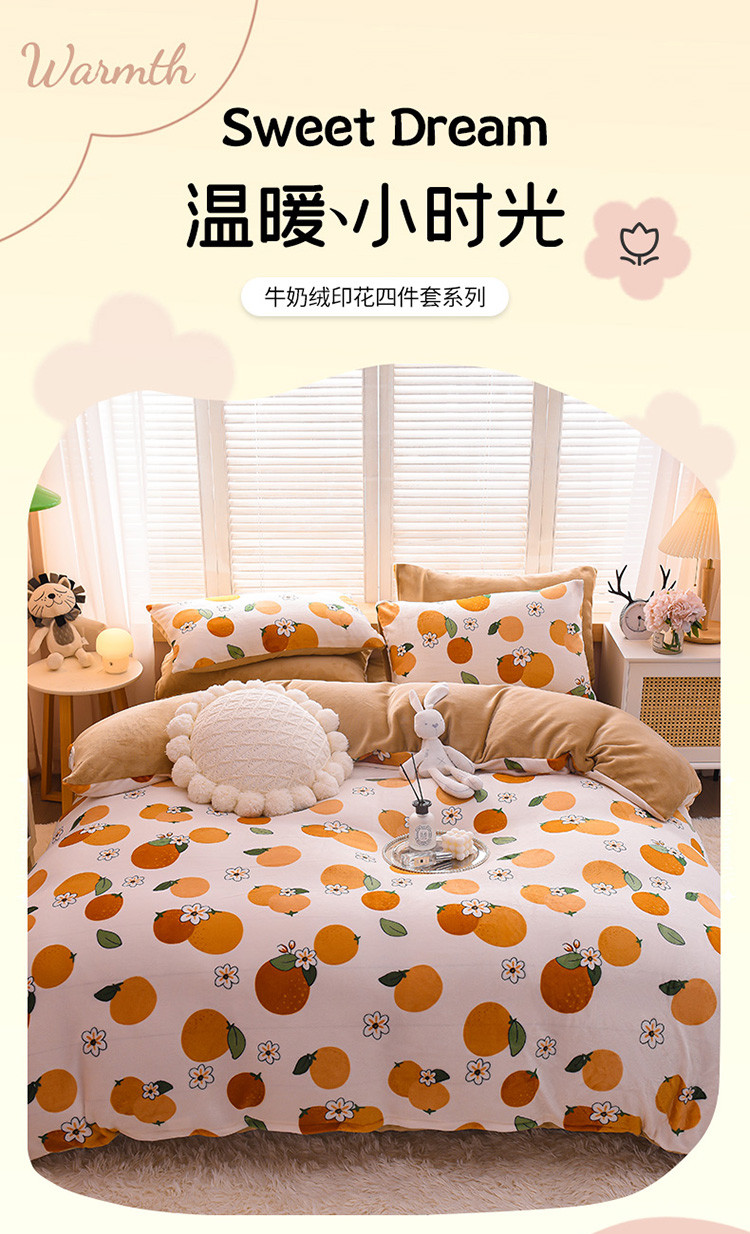 芃成 2022新款加厚双面牛奶绒印花床品系列-四件套 心想事橙