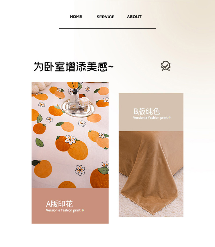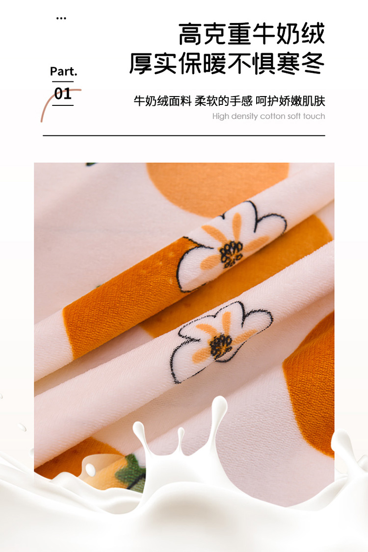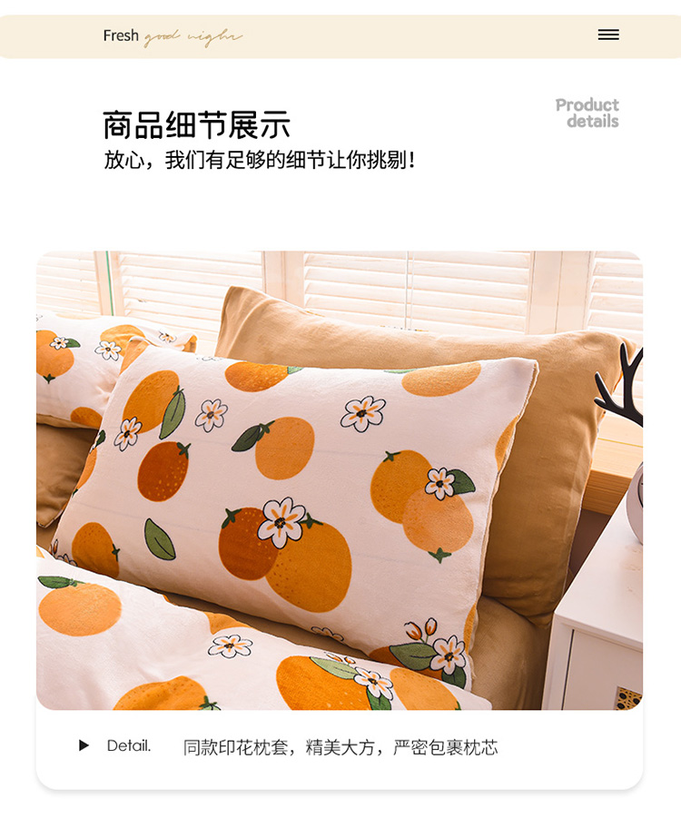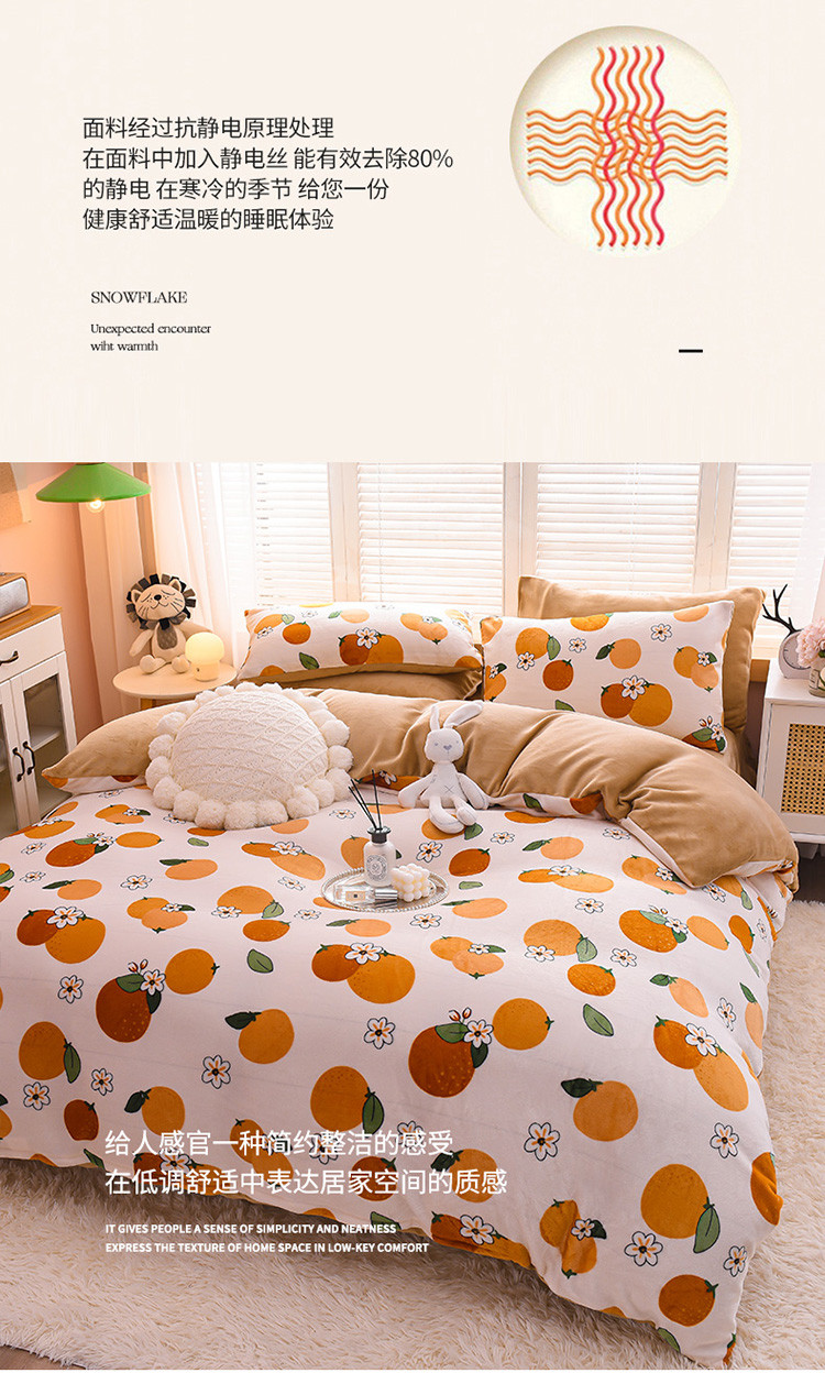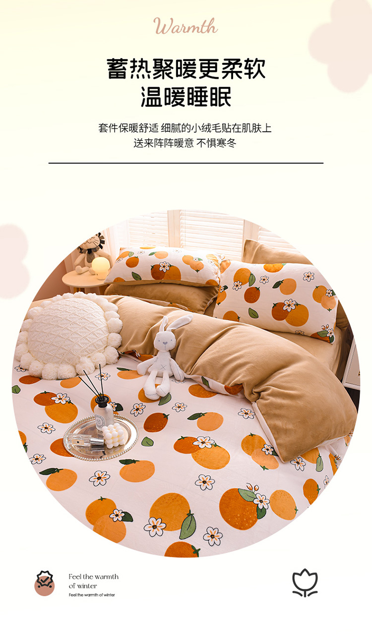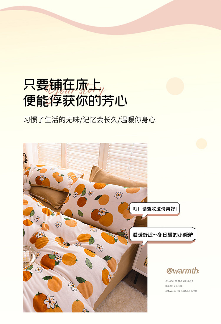 商品名称:芃成 2022新款加厚双面牛奶绒印花床品系列-四件套 心想事橙