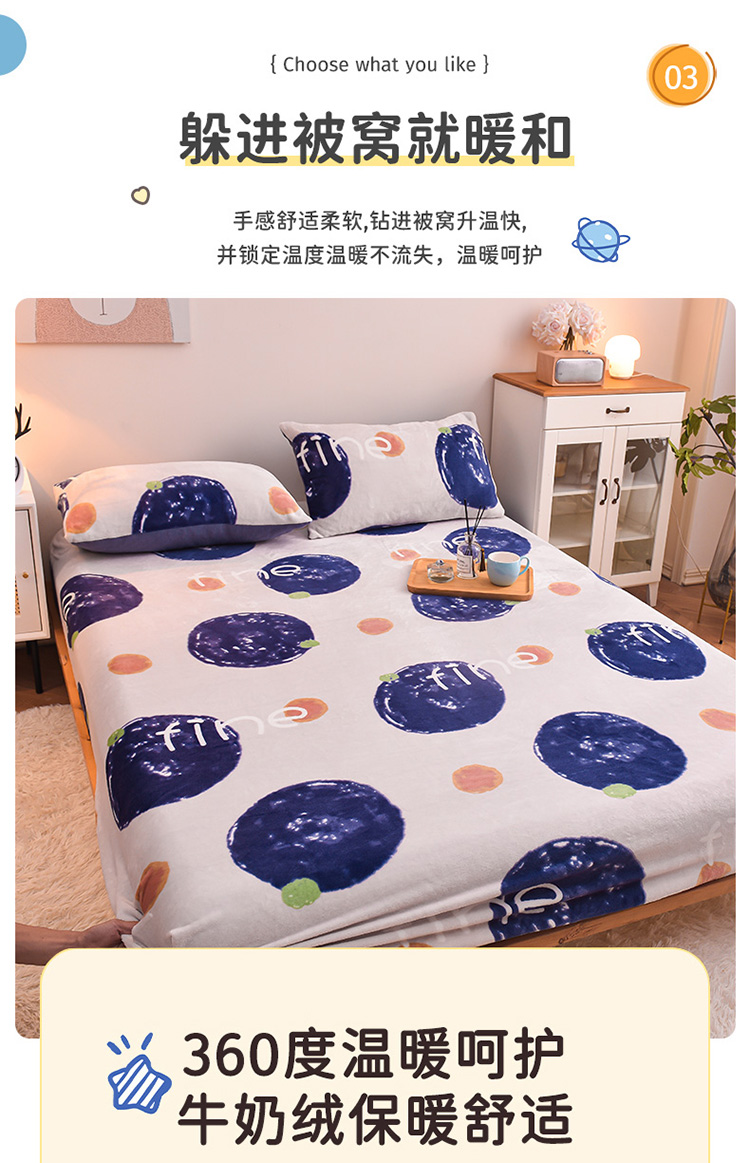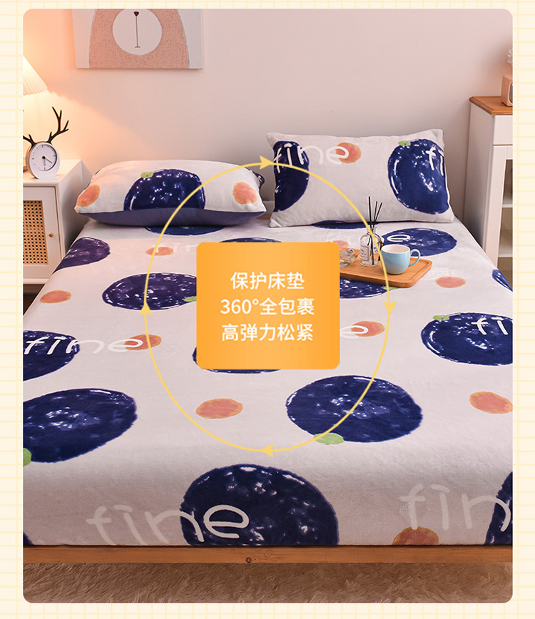 芃成 2022新款加厚双面牛奶绒印花床品系列-单床笠 安纳瑞