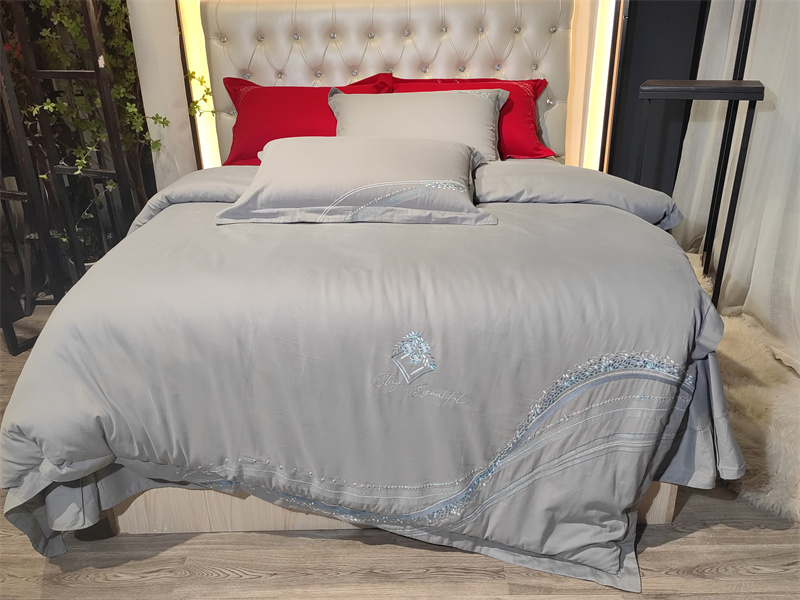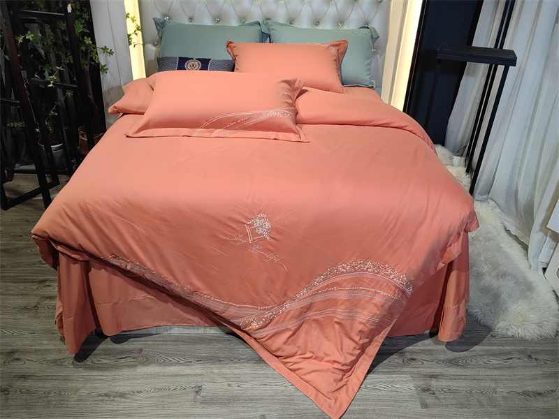 (总)玖玖爱家纺 2023新款120支贡缎长绒棉刺绣梦柔系列四件套,梦柔-香槟金,梦柔-香橙桔,梦柔-高级灰,梦柔-水蓝,梦柔-芙蓉玉