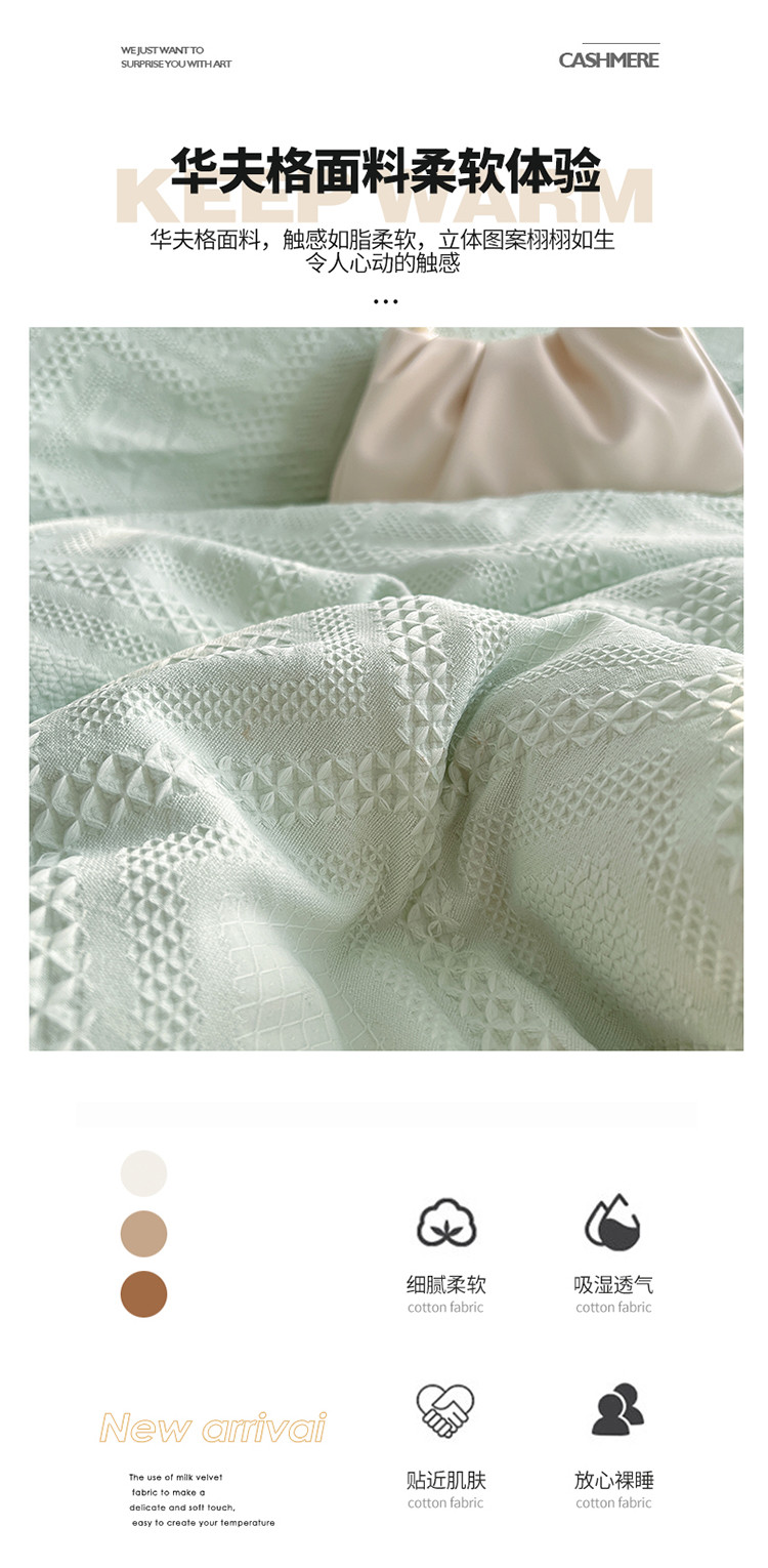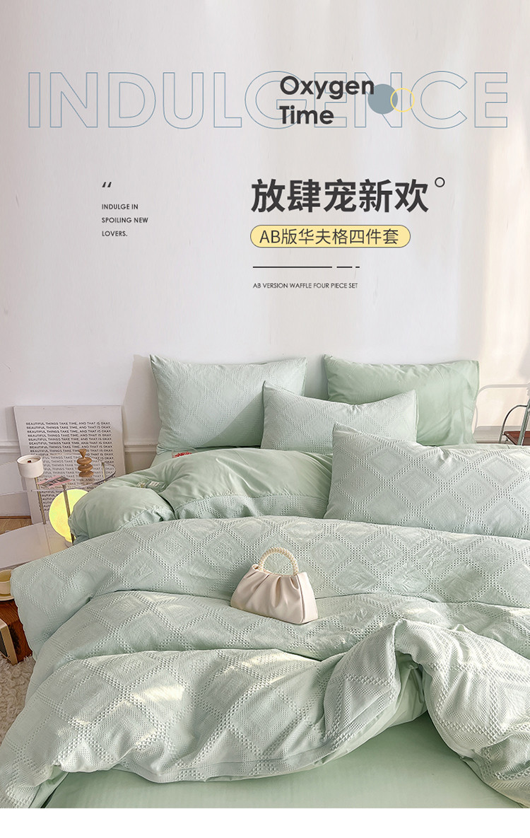 米粒 2022直播爆款纯色AB版华夫格四件套磨毛水洗棉 水绿