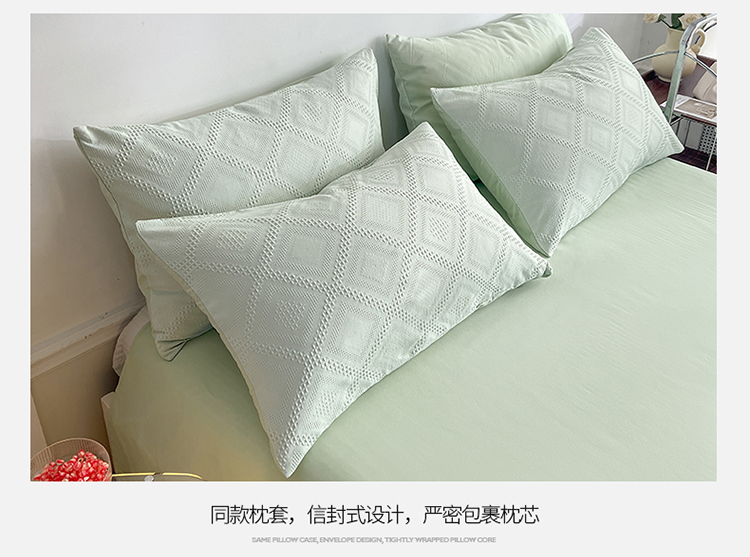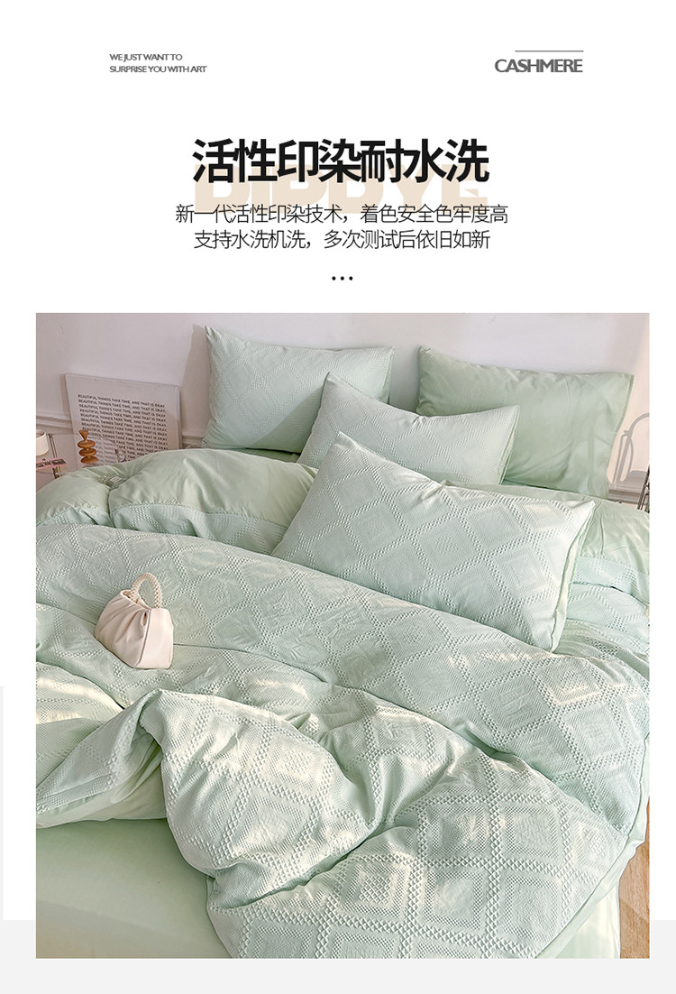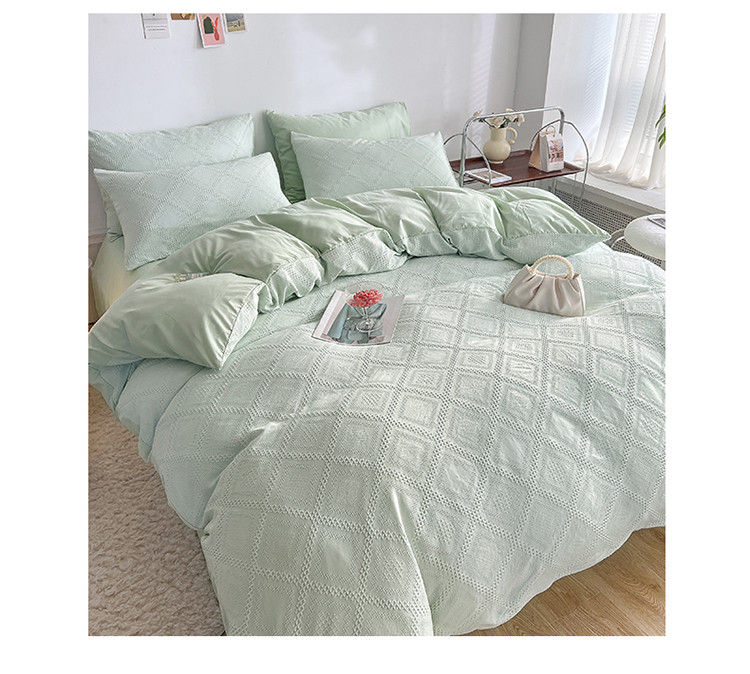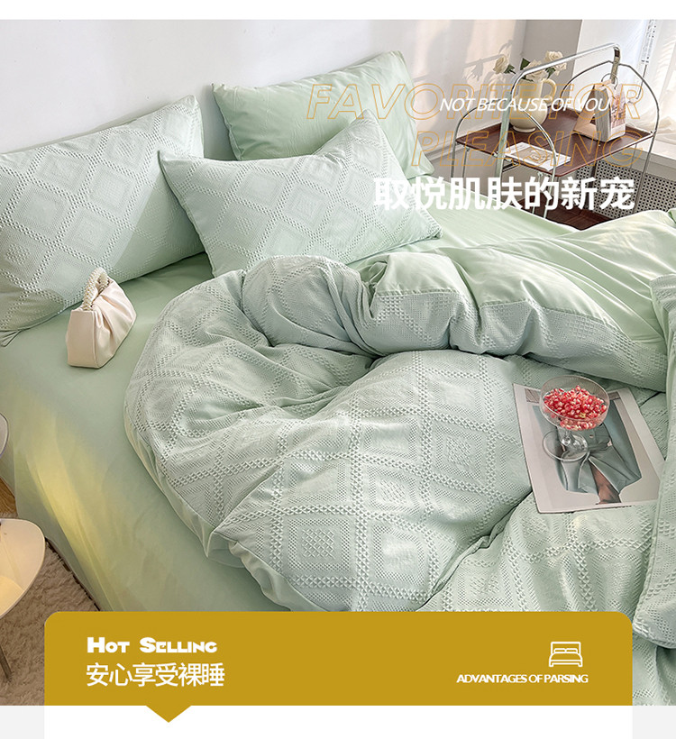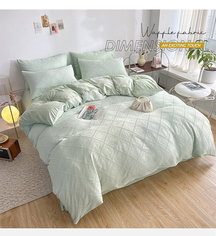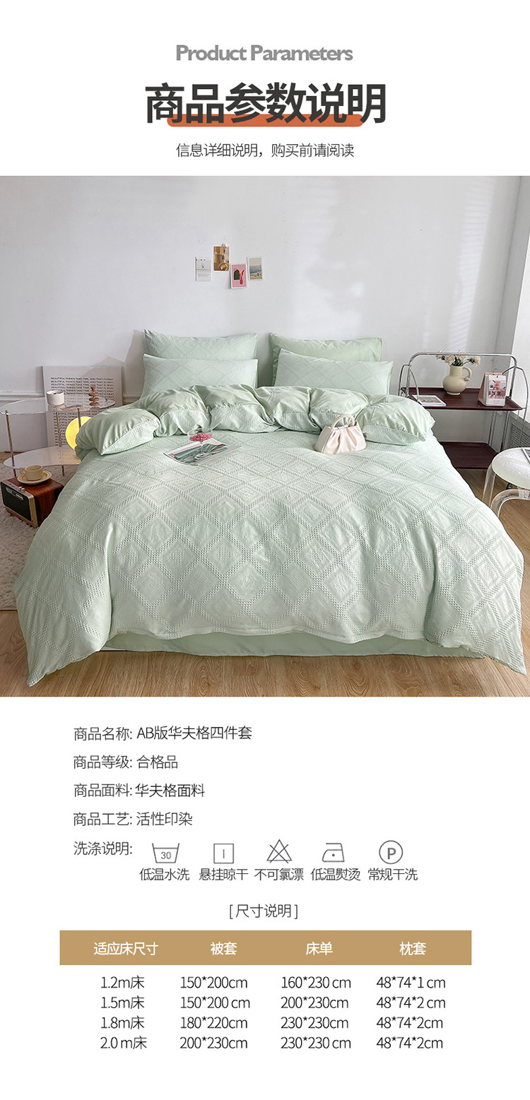 商品名称:米粒 2022直播爆款纯色AB版华夫格四件套磨毛水洗棉 水绿