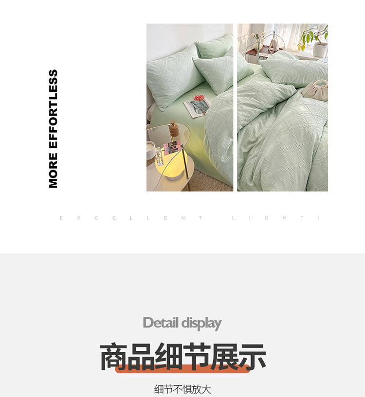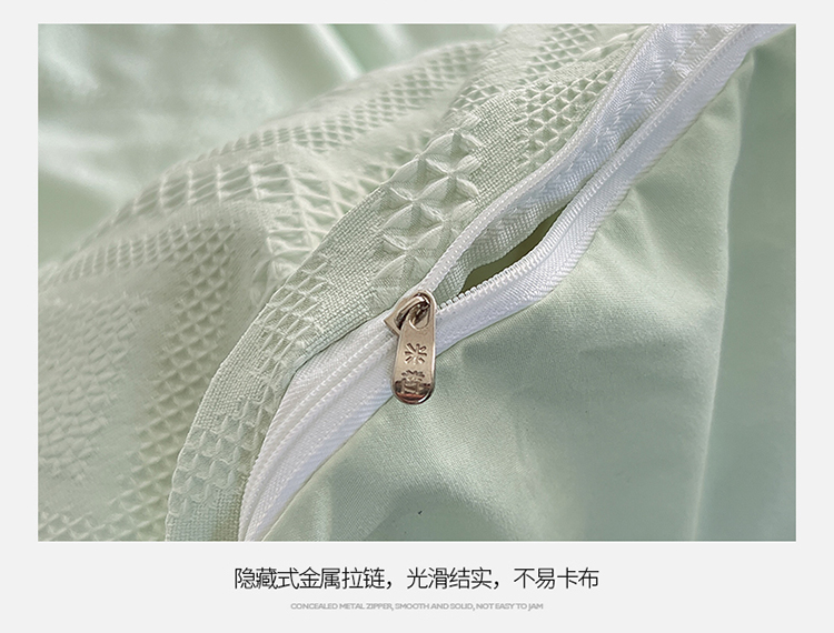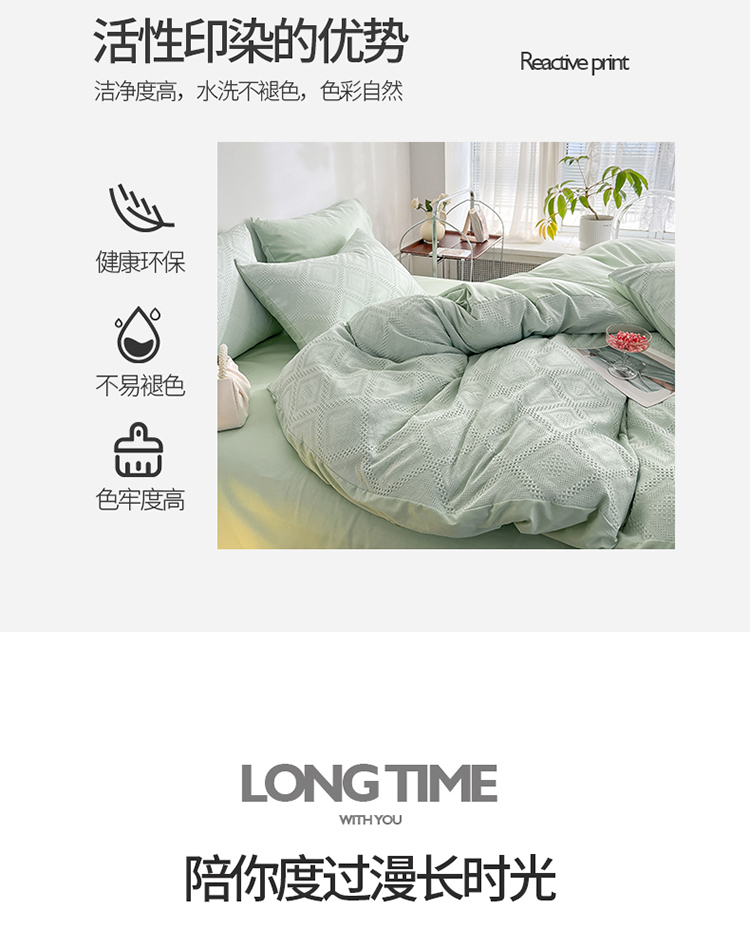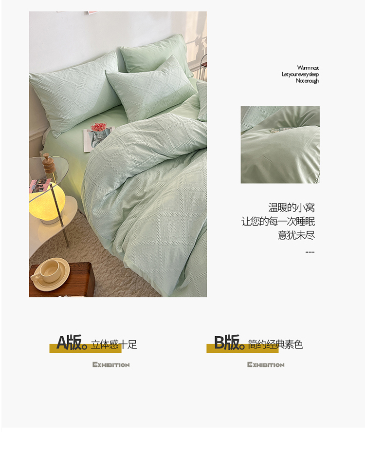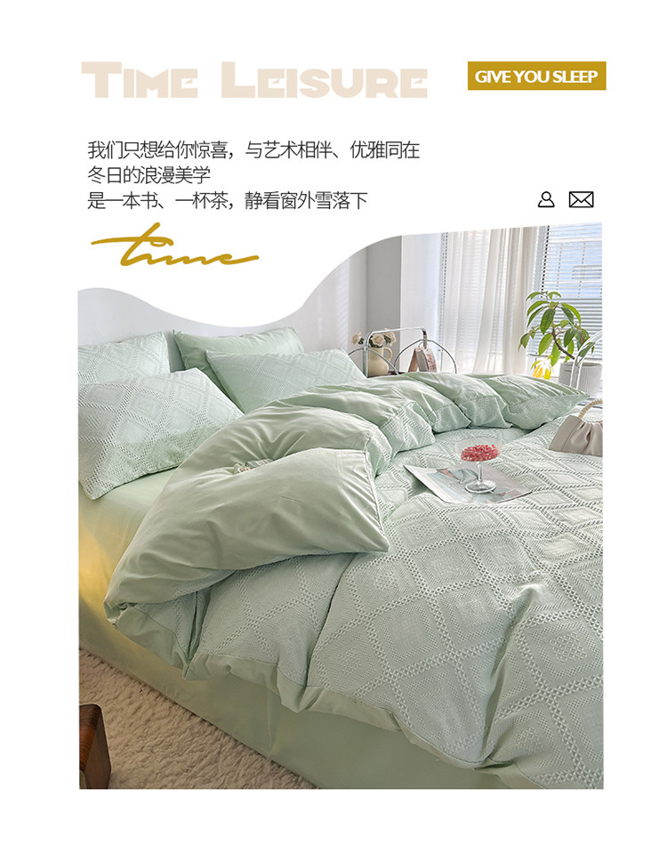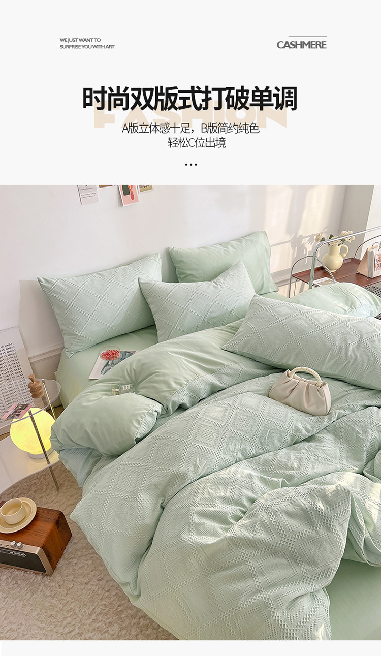 商品名称:米粒 2022直播爆款纯色AB版华夫格四件套磨毛水洗棉 水绿