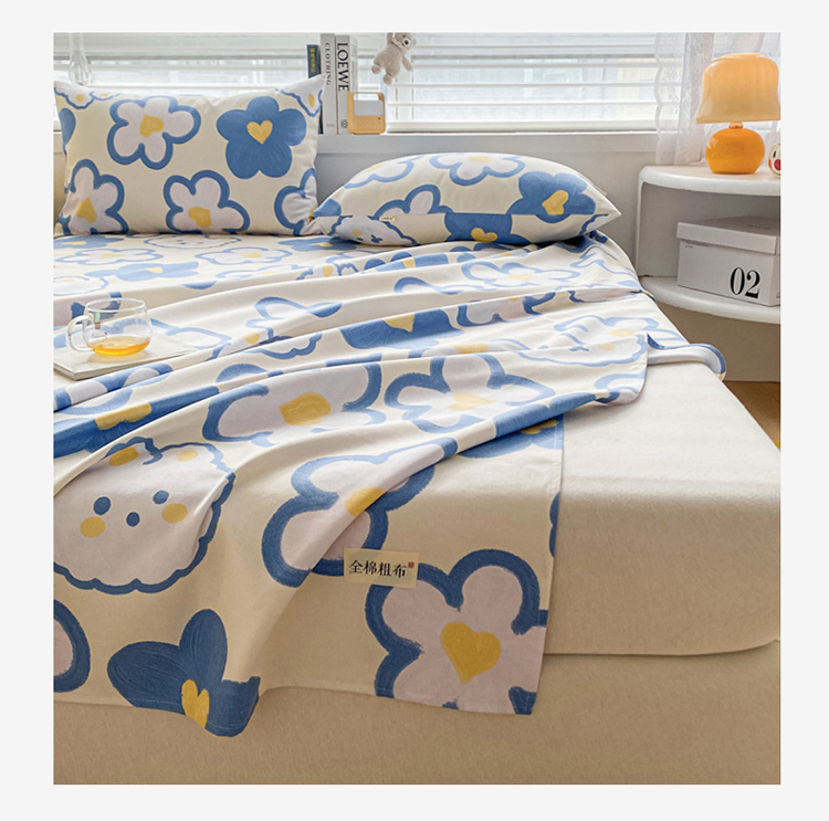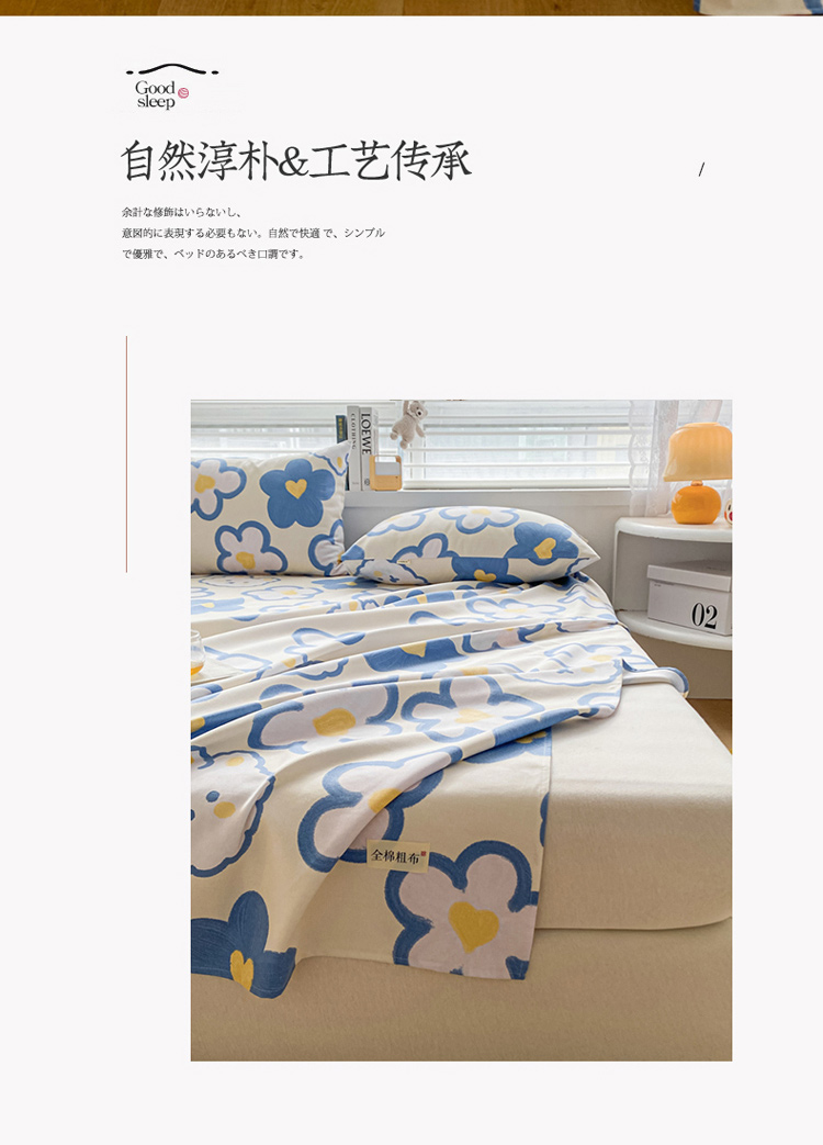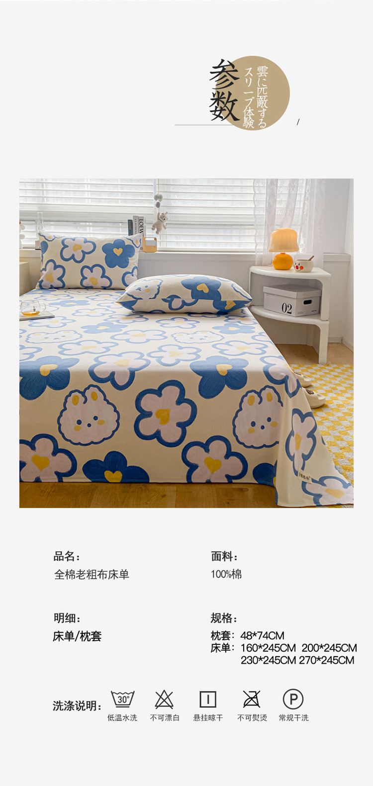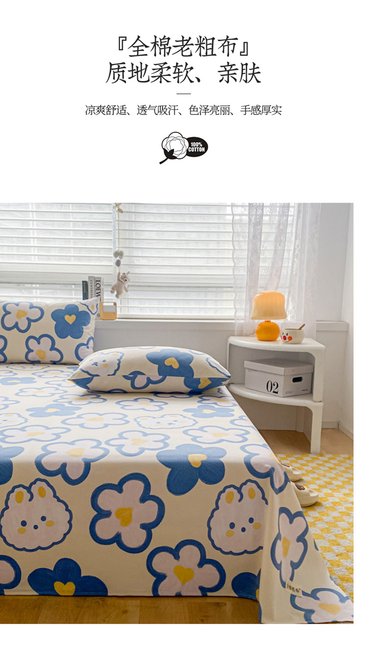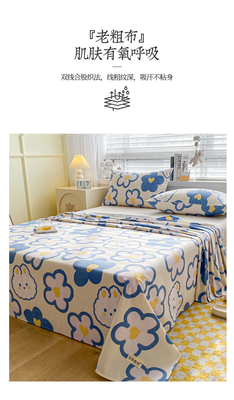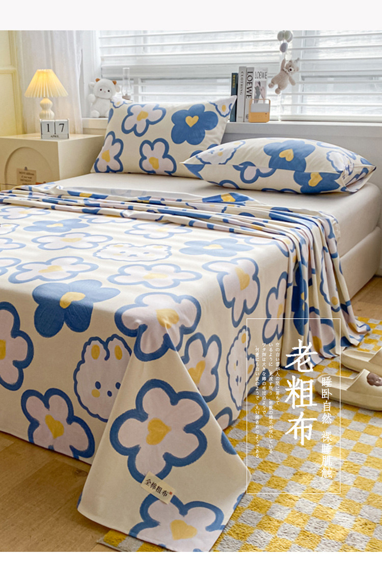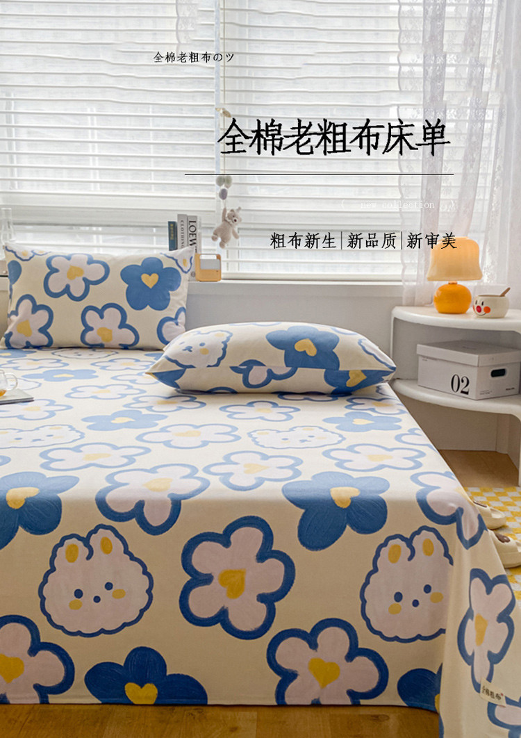 卧趣家纺 2023新款全棉老粗布单品系列单床单 奶油