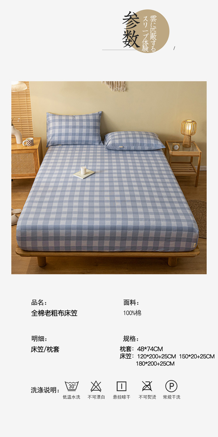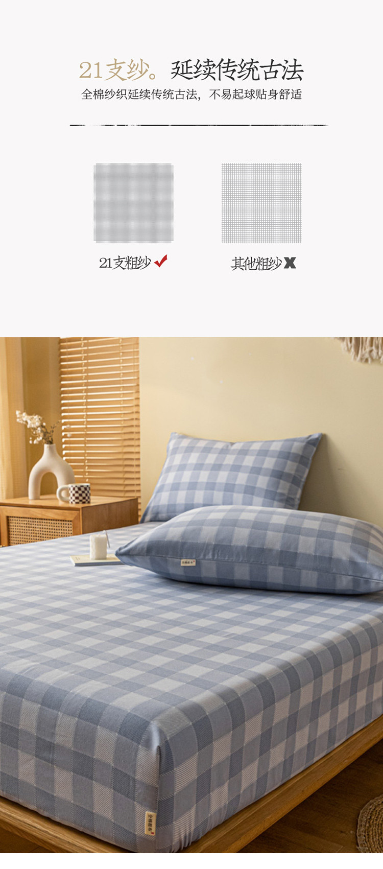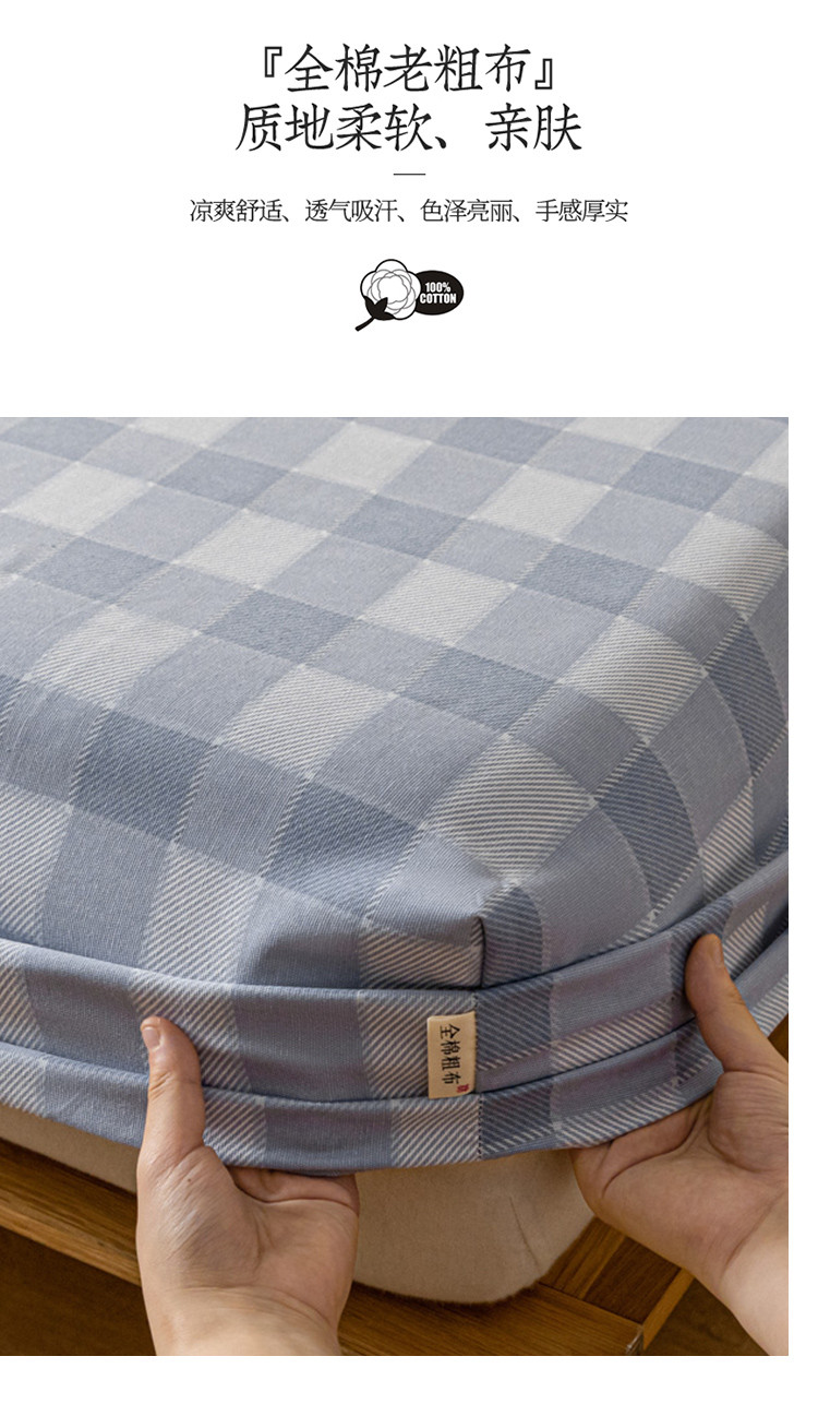 卧趣家纺 2023新款全棉老粗布单品系列单床笠 锦格-兰